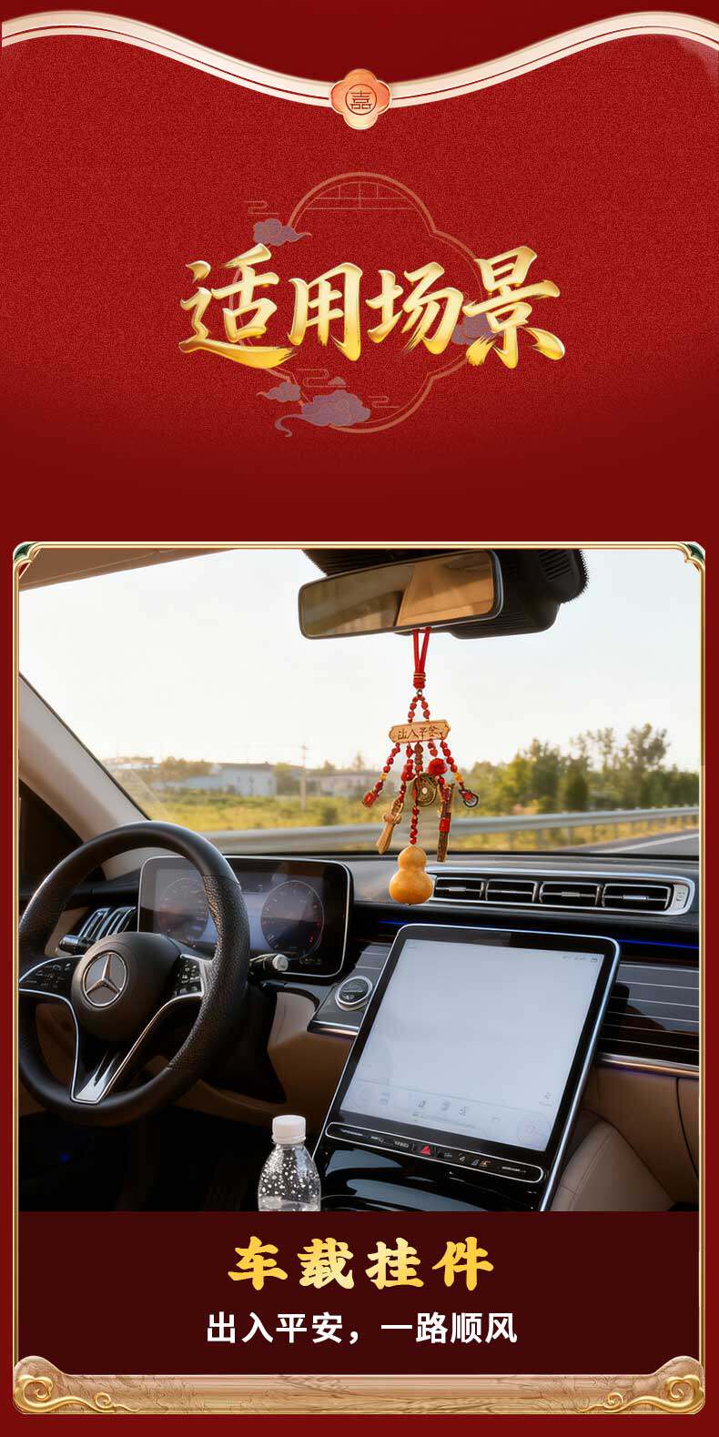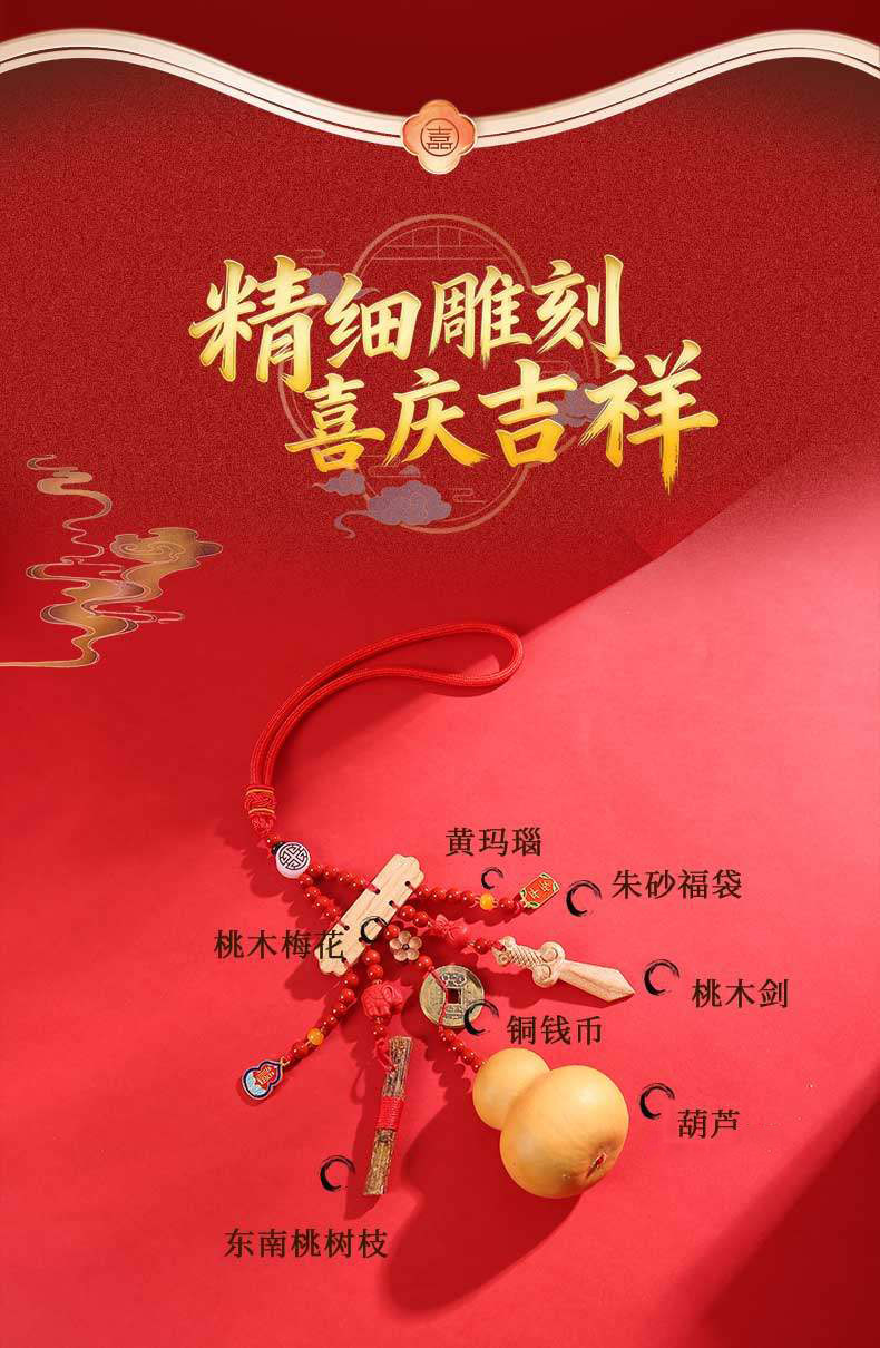 【祈愿吉品】马年出入平安桃木车载挂件马牛鼠兔幸运物挂饰