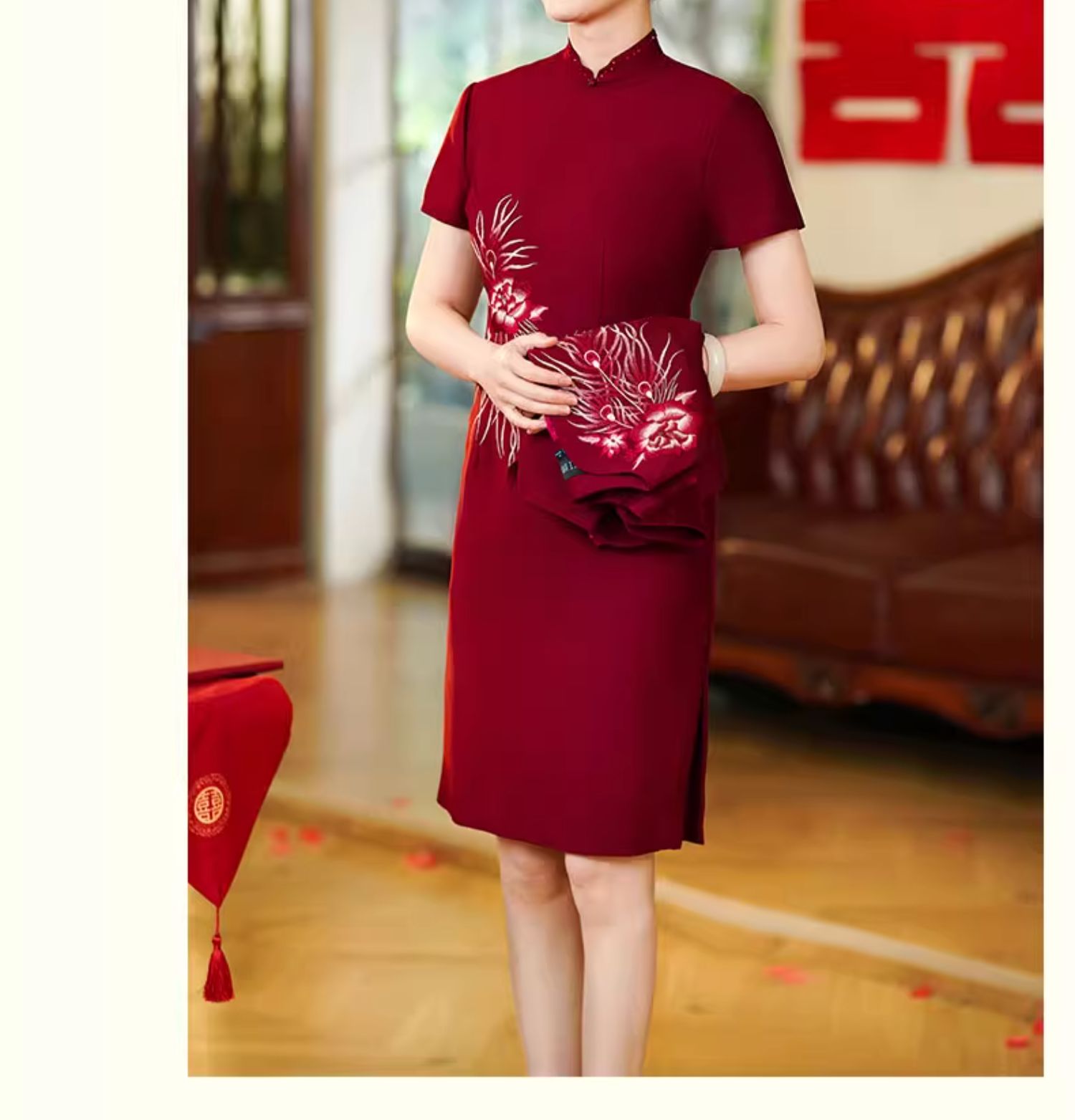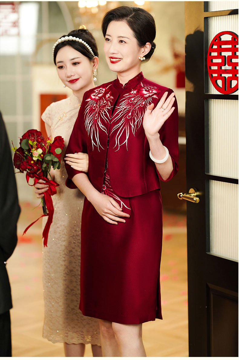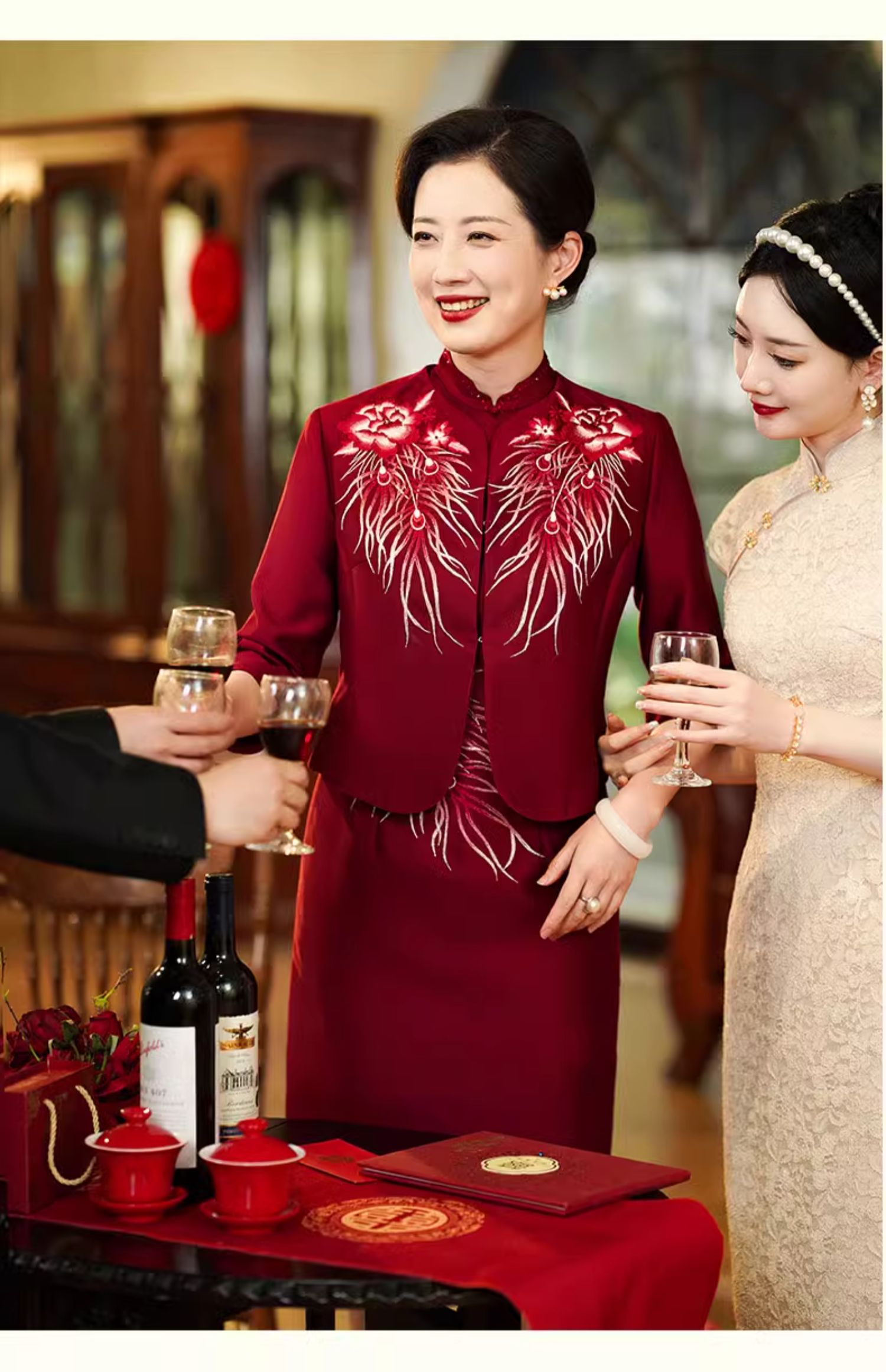 逸红颜 艳容 2025秋装新品敬酒服红色改良旗袍连衣裙礼服套装