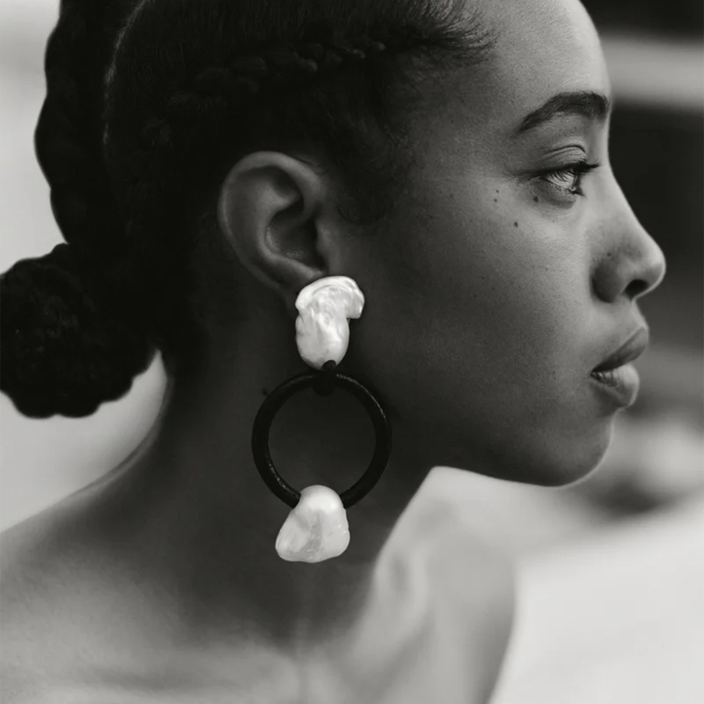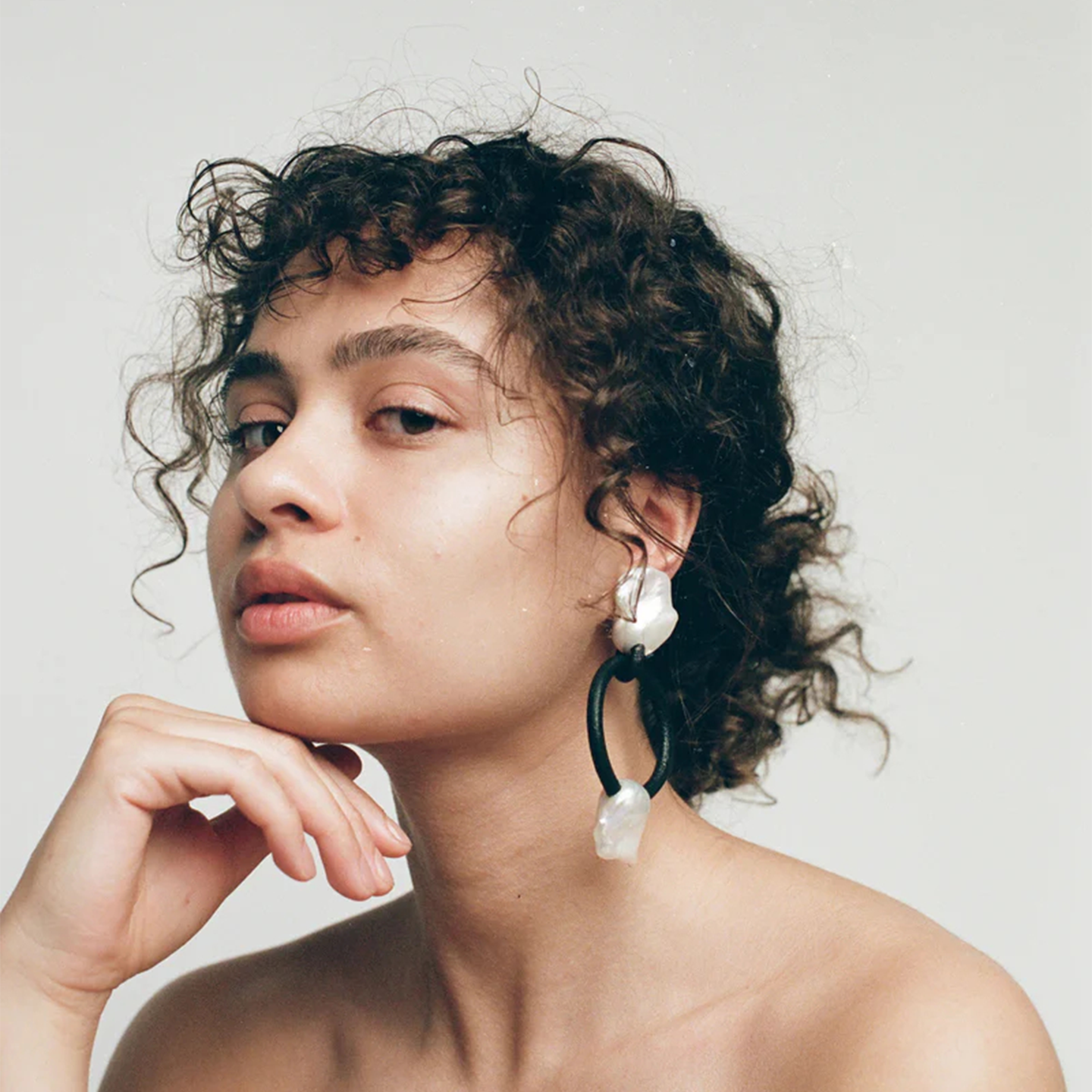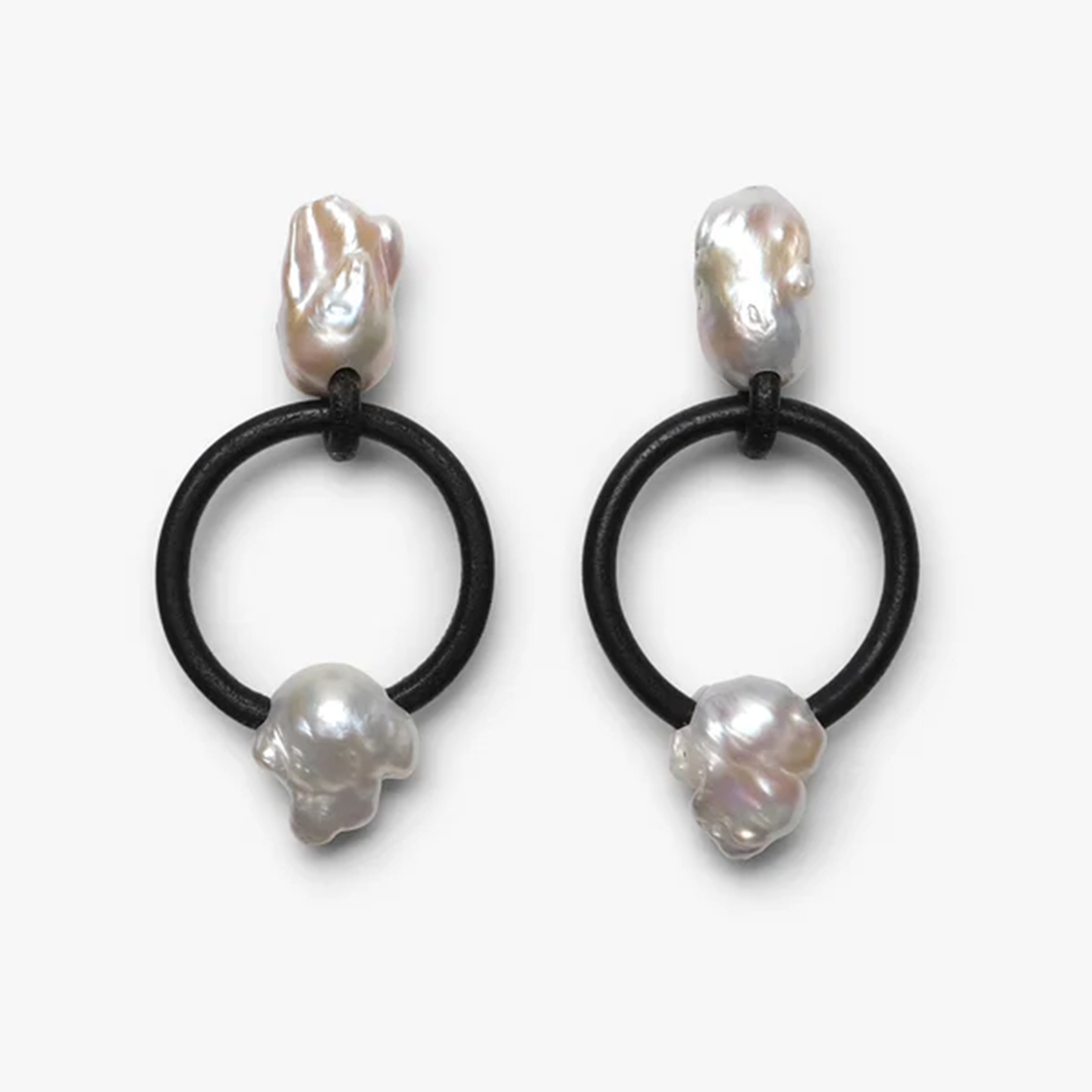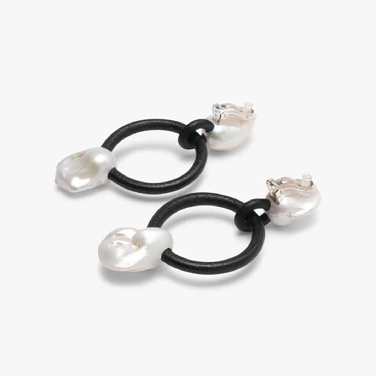 订购8周到|MONIES-Mint-巴洛克珍珠 皮革 珠宝级合金镀银 耳夹(无需耳洞)[丹麦设计师]