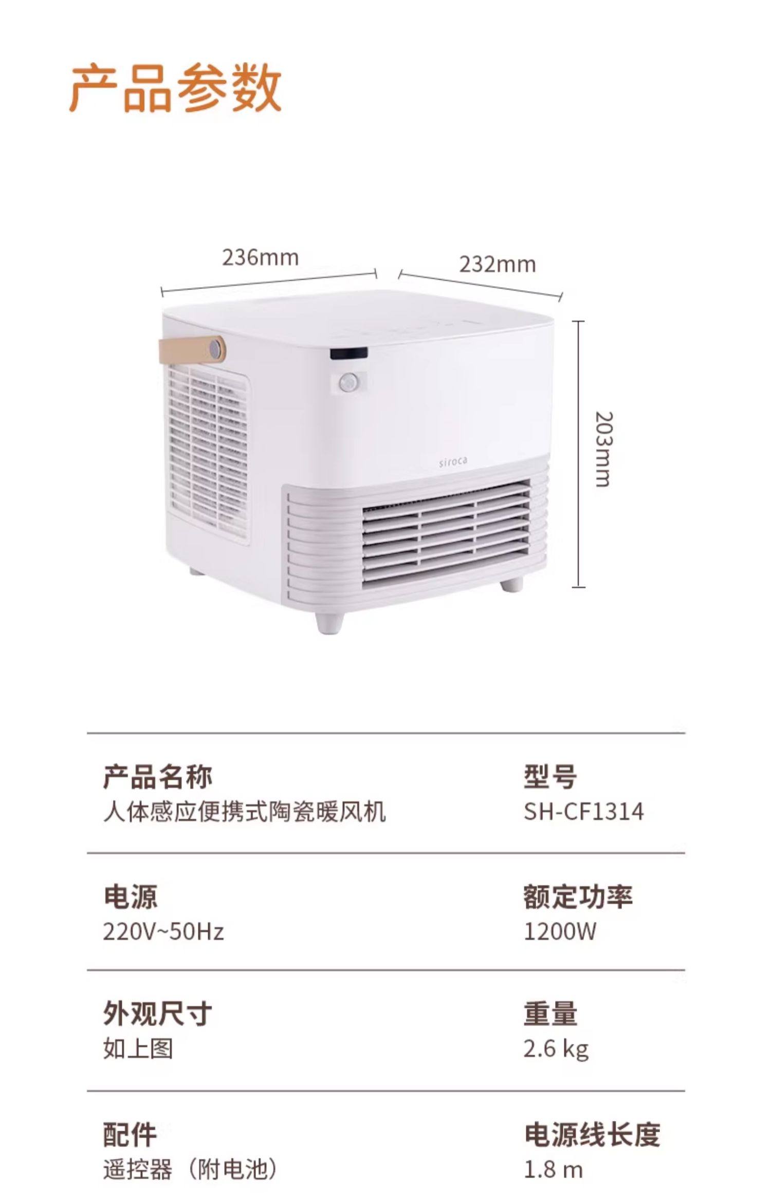 西罗卡siroca人体感应便携式陶瓷暖风机