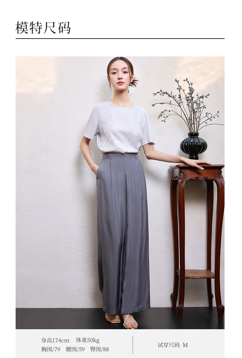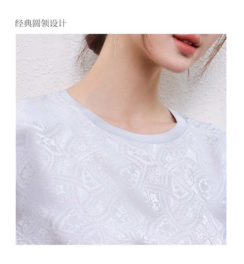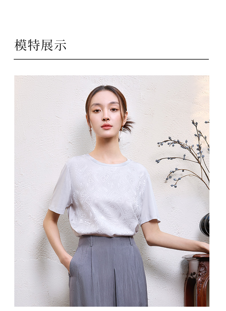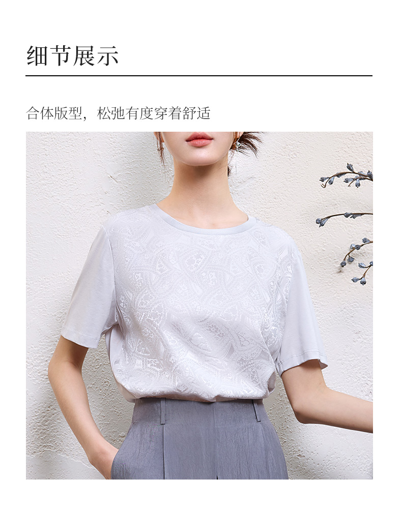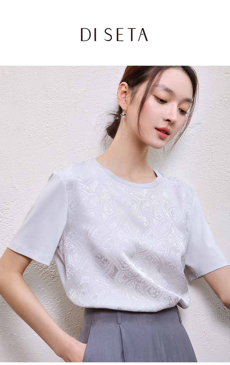 玳莎真丝提花T恤女2025年夏季新款时尚百搭拼接设计圆领短袖上衣 FB32105