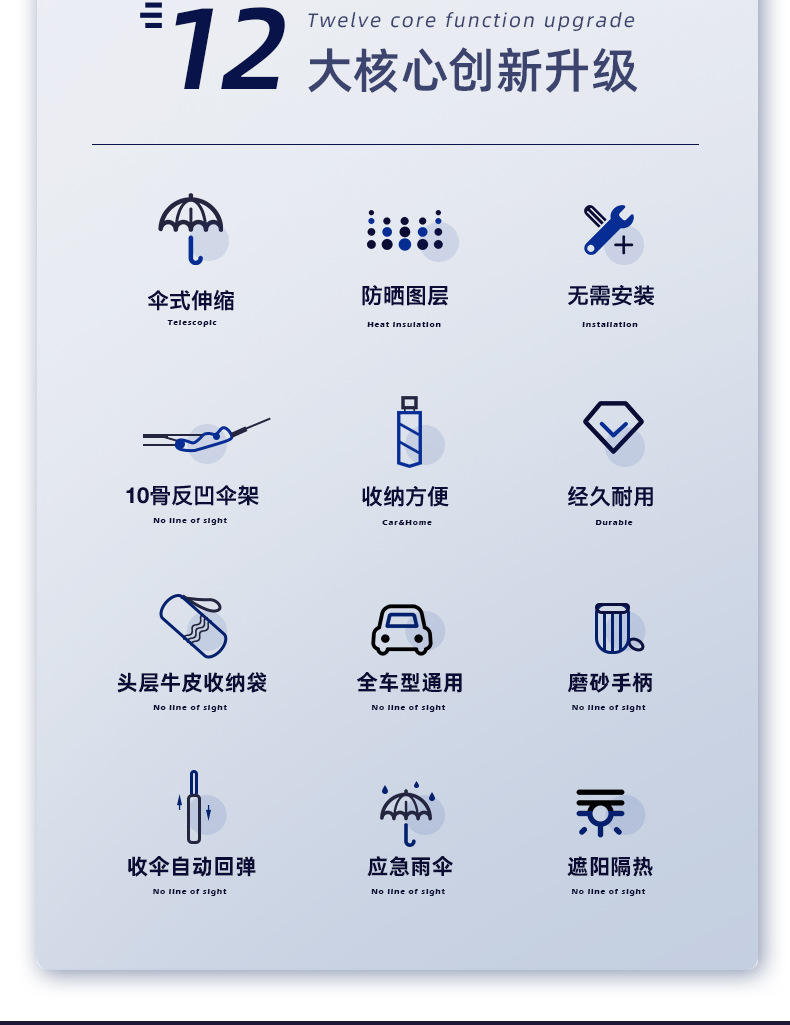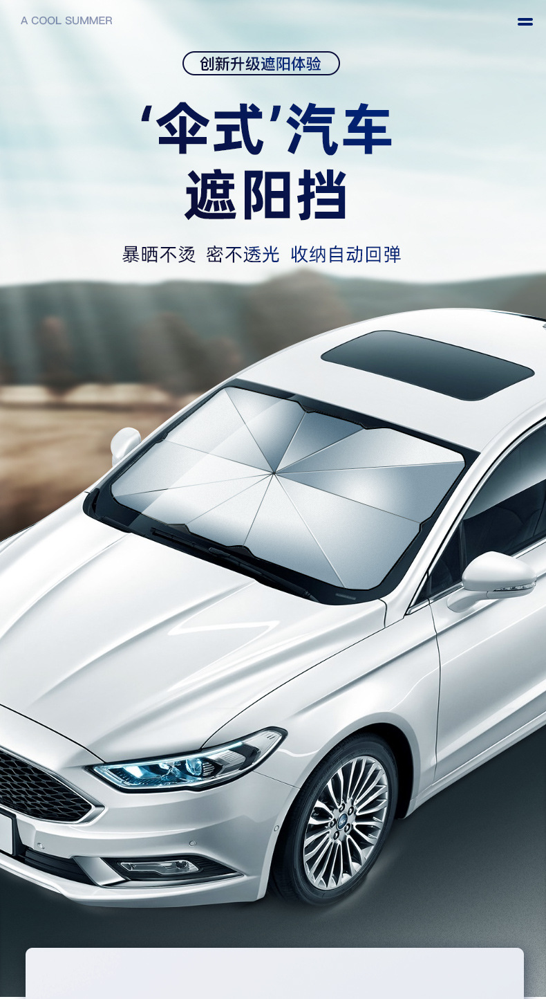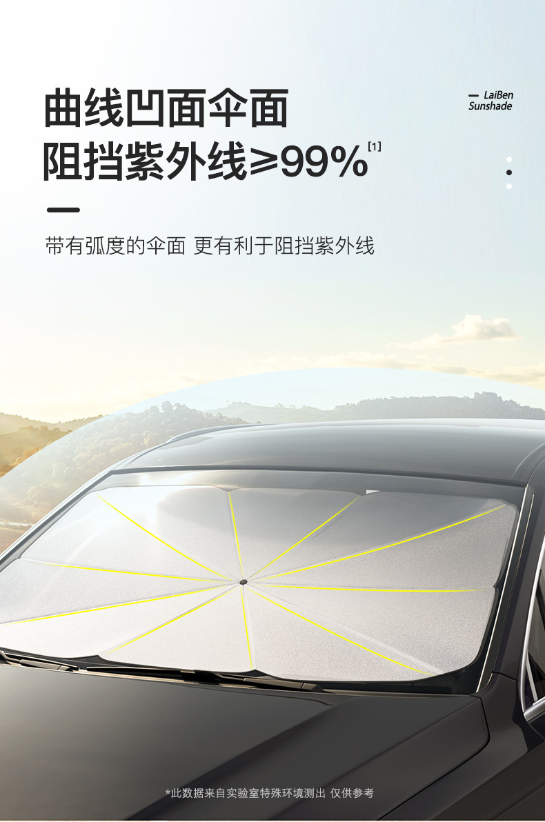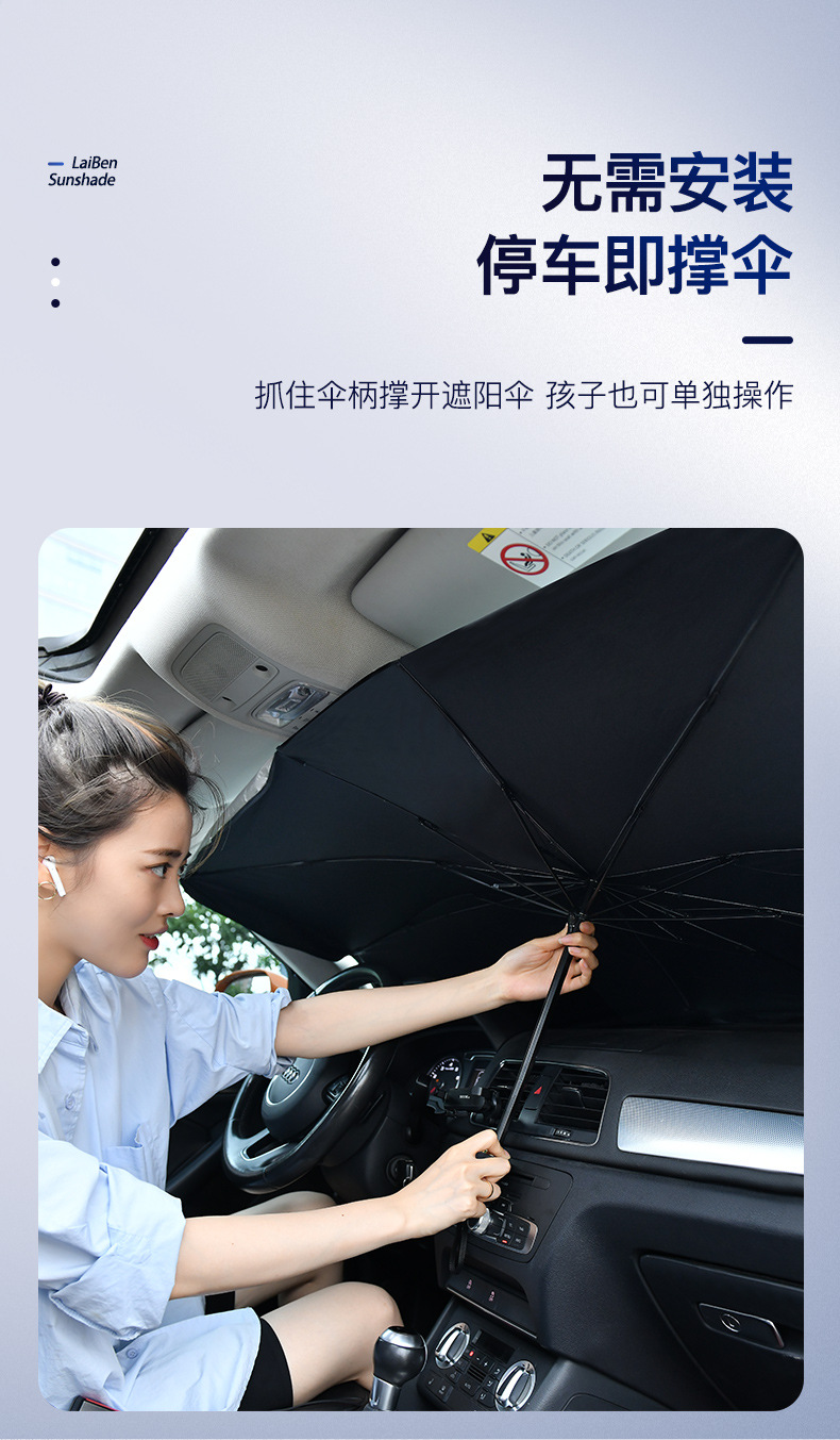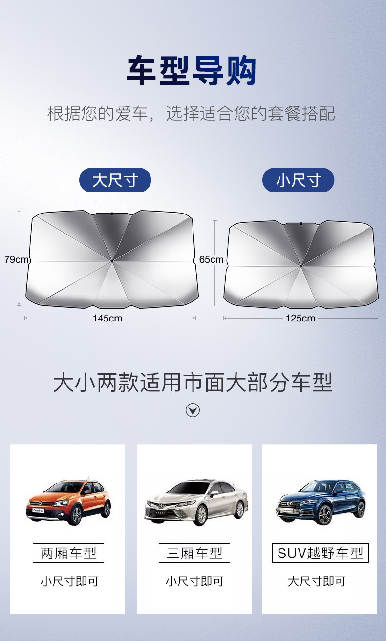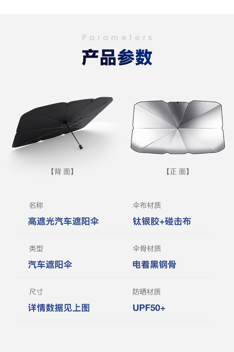 【防晒隔热免安装,零透光汽车遮阳伞】钛银防晒涂层,便携耐用,轻松开合,方便收纳,告别繁琐!大小可选适合大部分车型!
