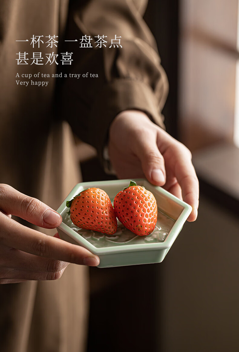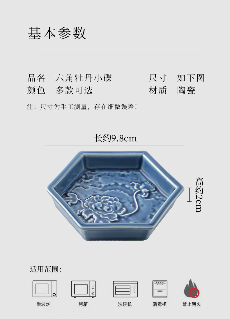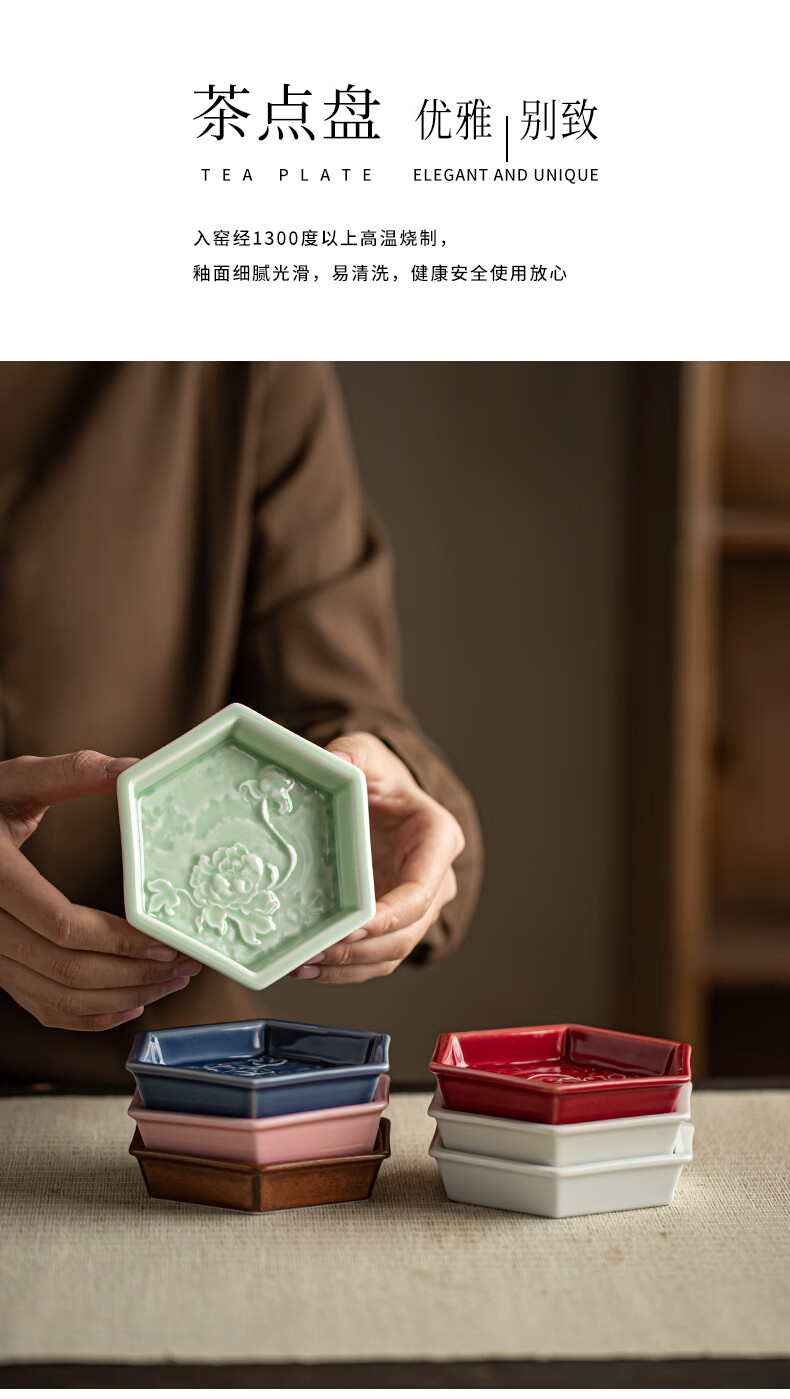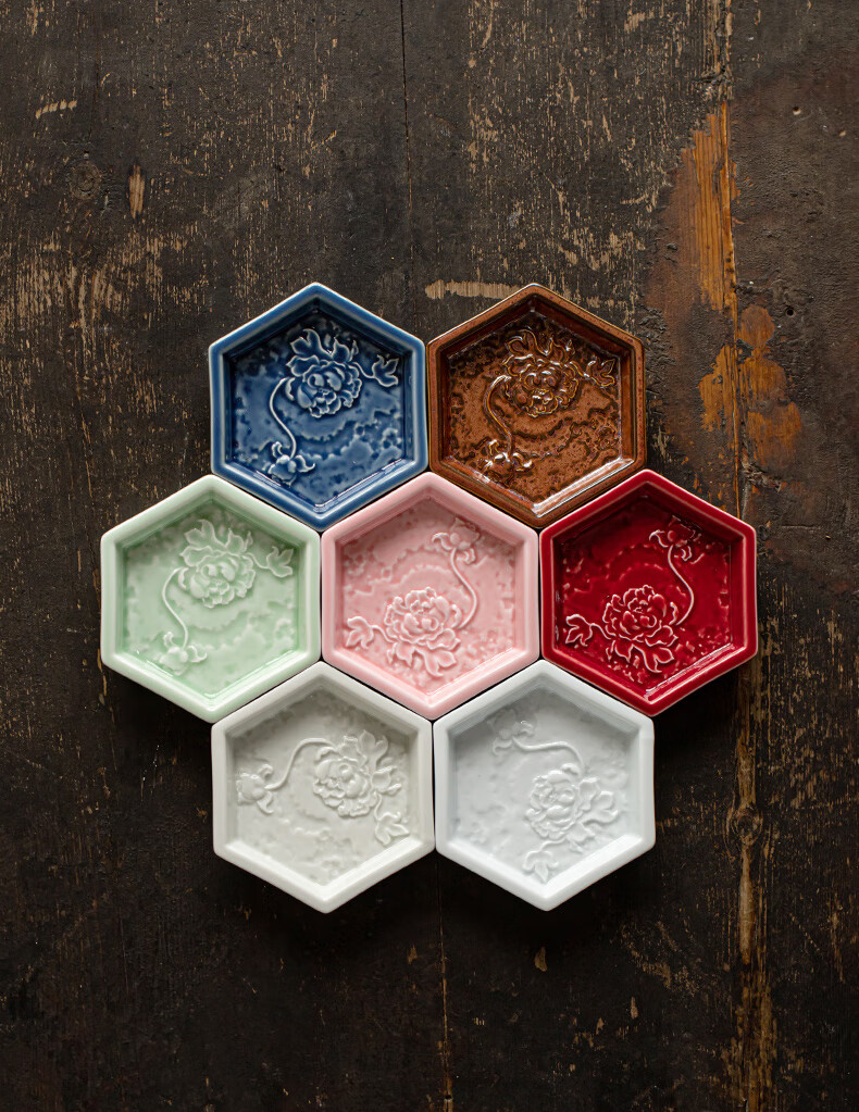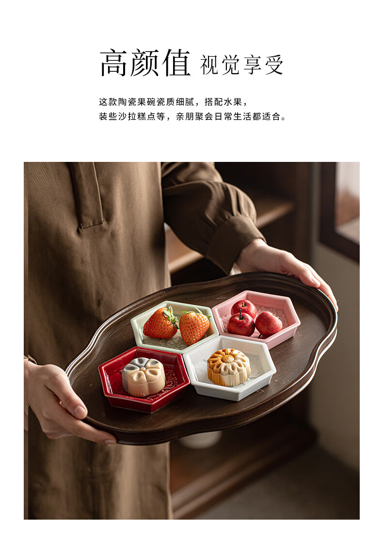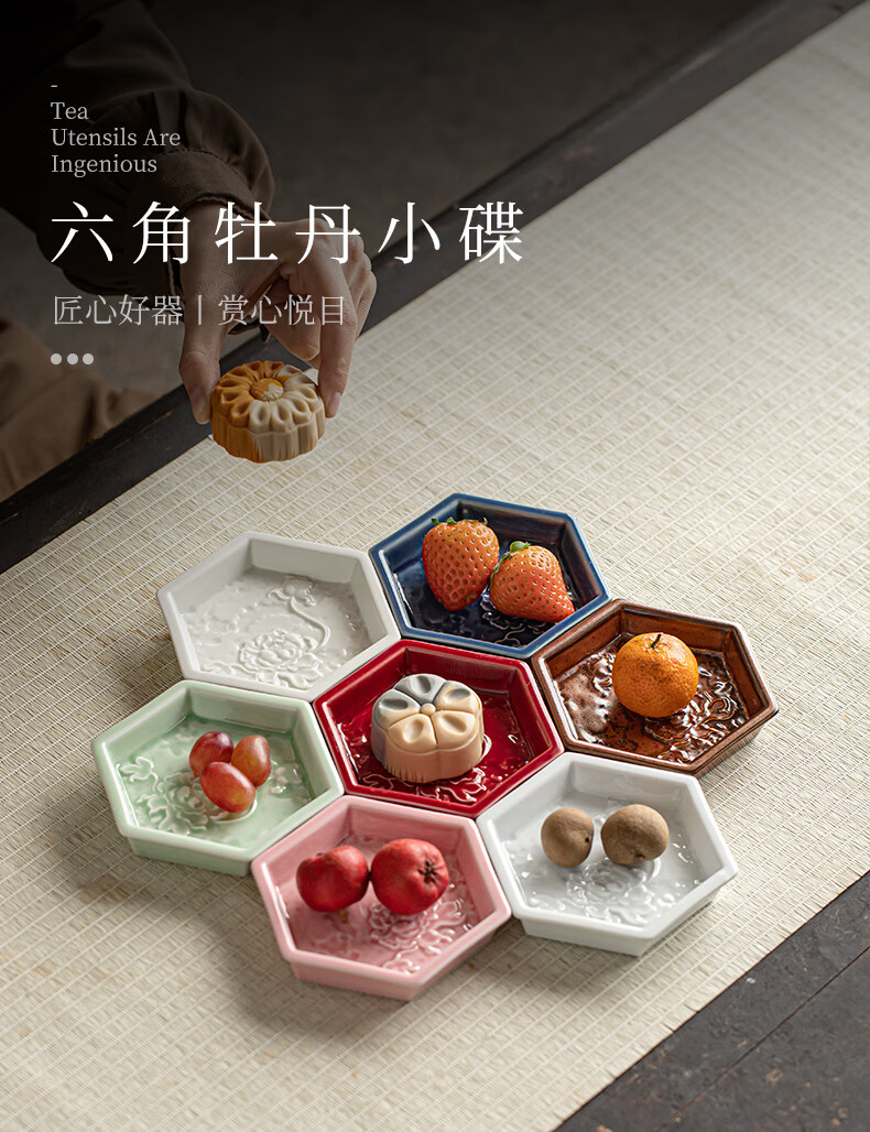 【六角牡丹小碟】中式陶瓷果盘茶点糕点盘家用点心盘喜饼盘喜糖盘订婚台摆盘干果碟