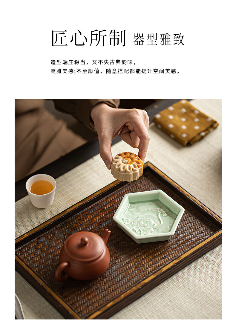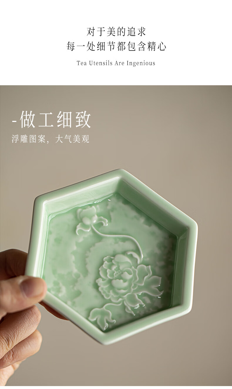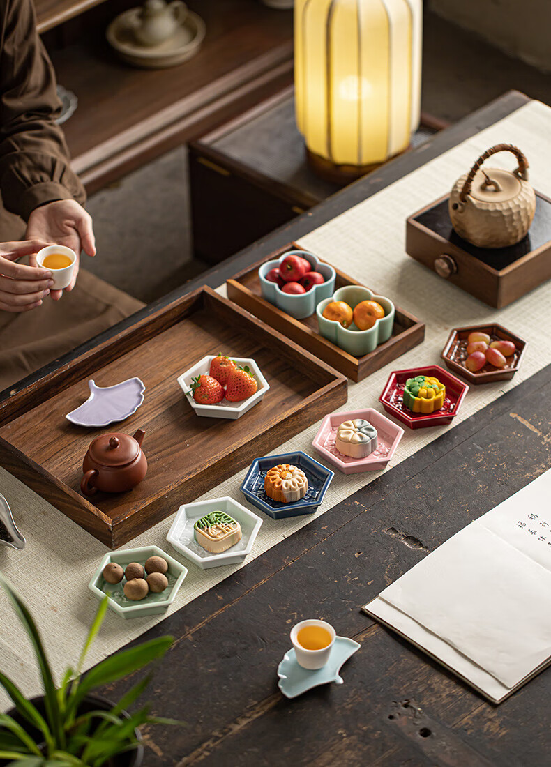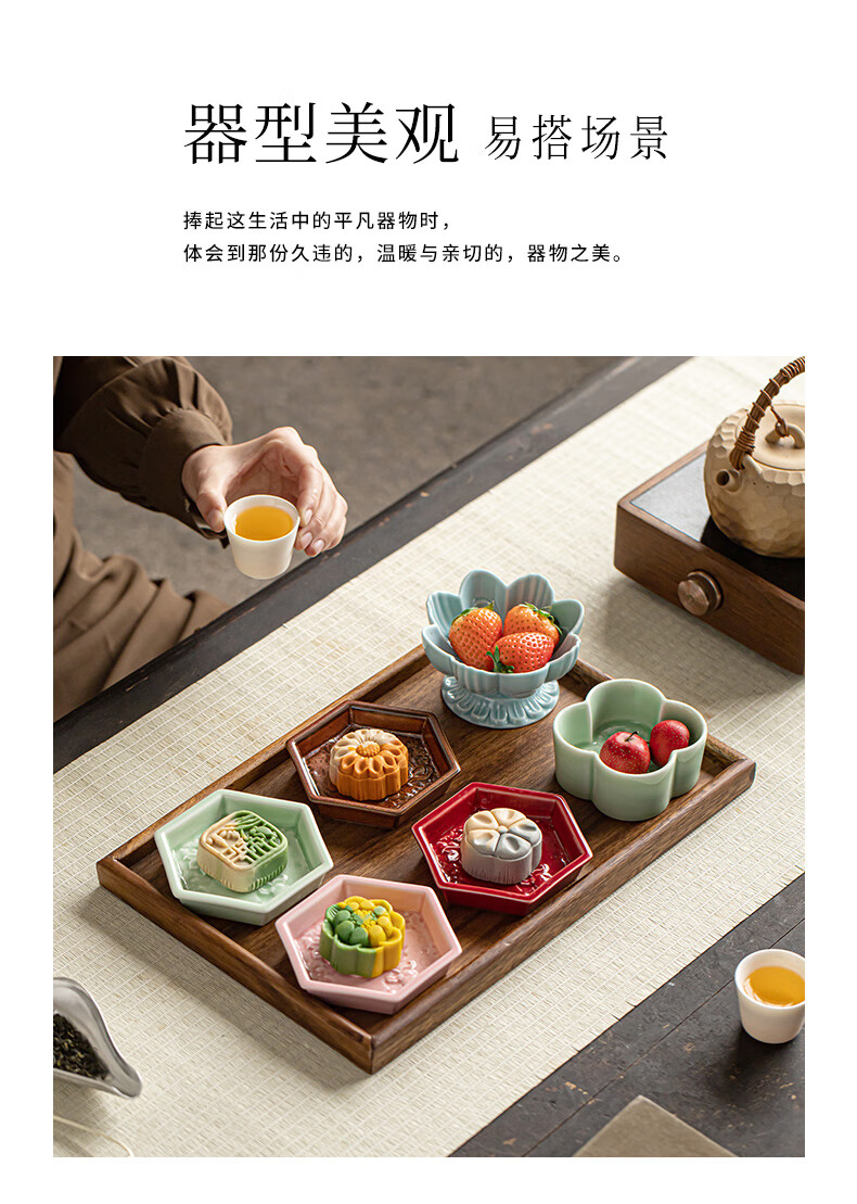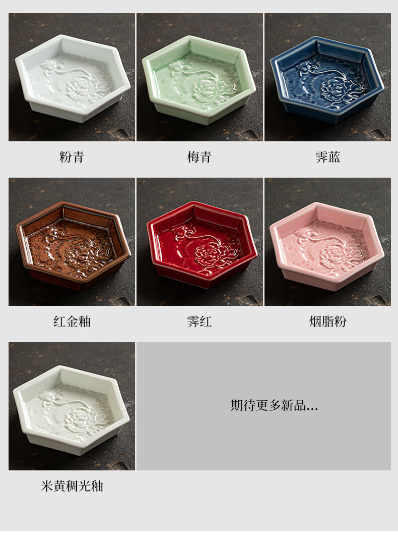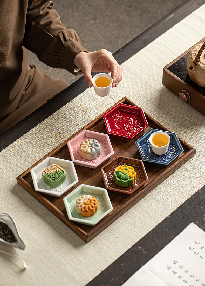 【六角牡丹小碟】中式陶瓷果盘茶点糕点盘家用点心盘喜饼盘喜糖盘订婚台摆盘干果碟