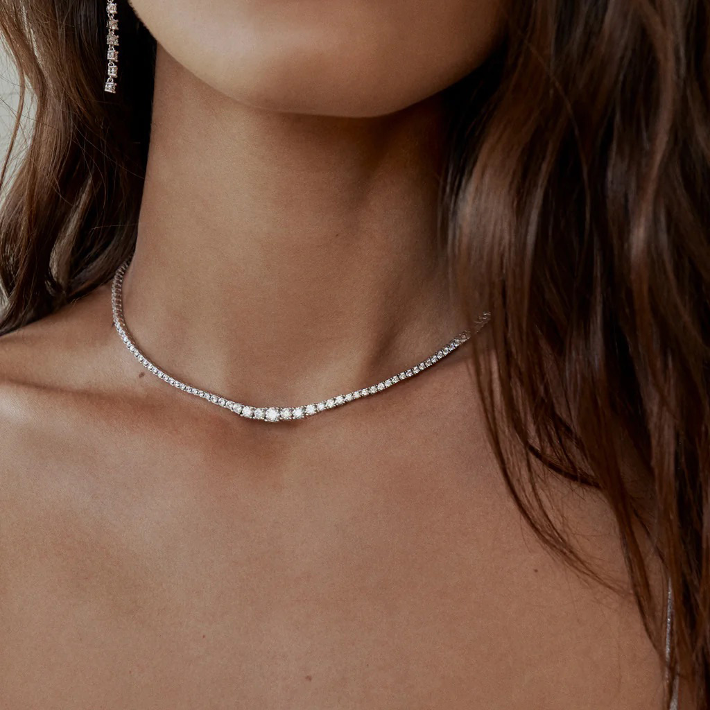 北京仓|Lili Claspe-Gradient Amina-渐变 银色 网球 项链[美国设计师]