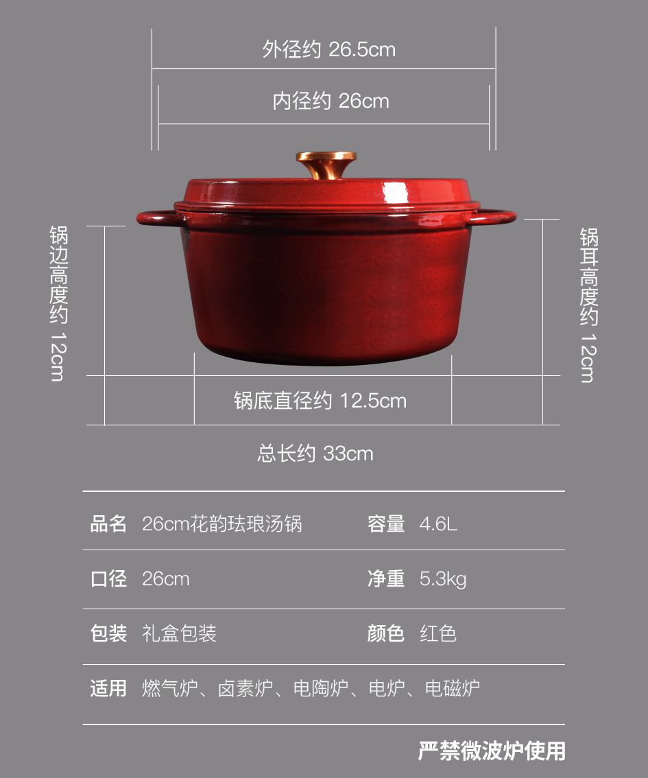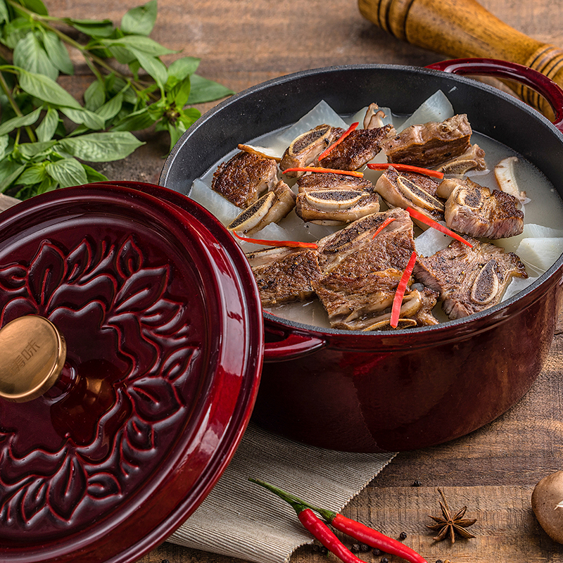 铸味春花恋 | 26cm花韵汤锅圆形炖锅煮锅家用电磁炉燃气炉通用多功能