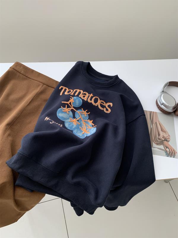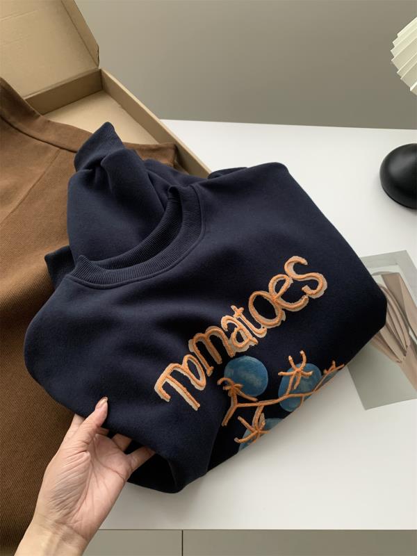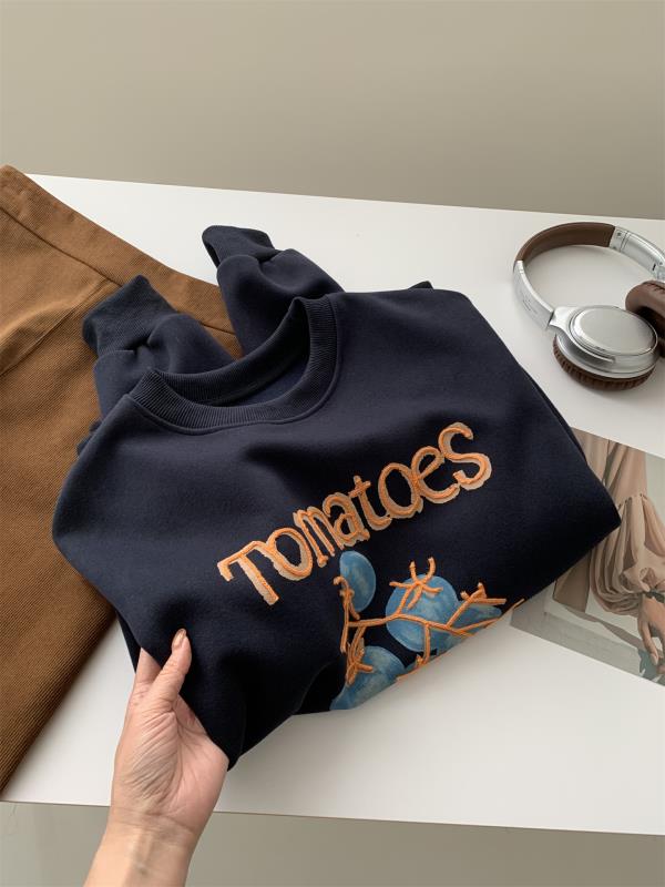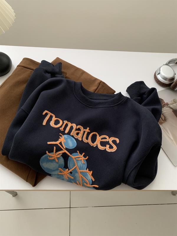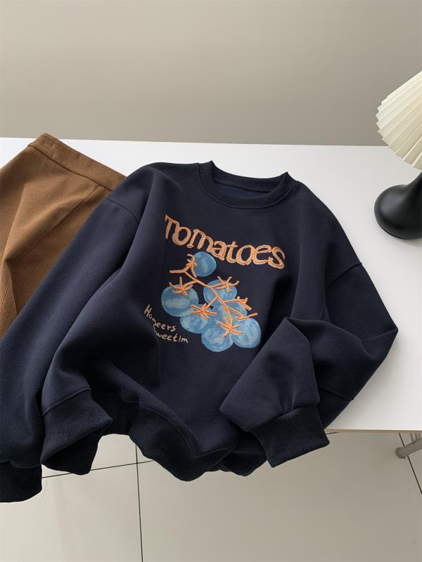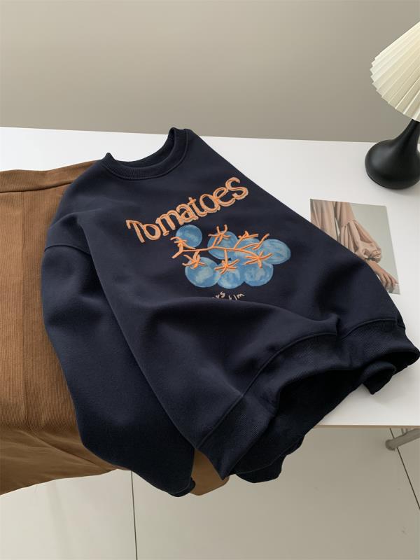 复古显白!西红柿刺绣圆领套头卫衣!女26春秋韩版ins风宽松学生外套!
