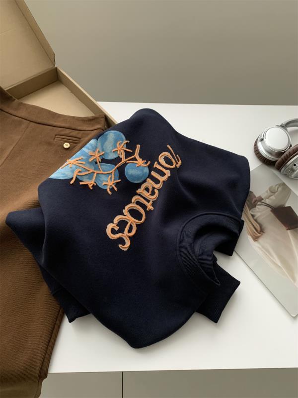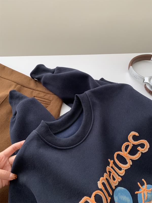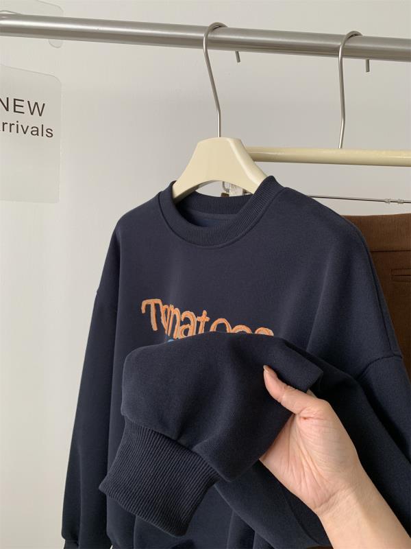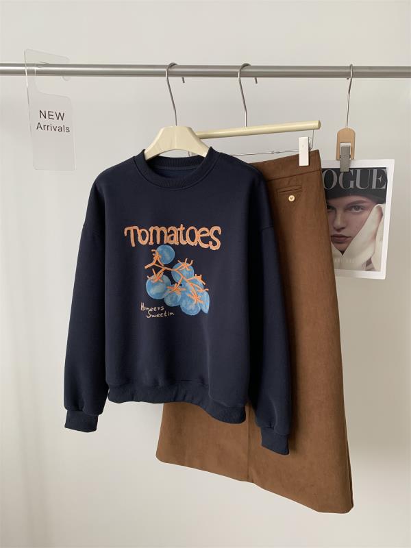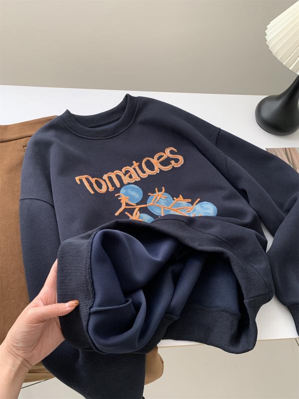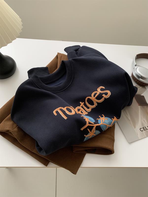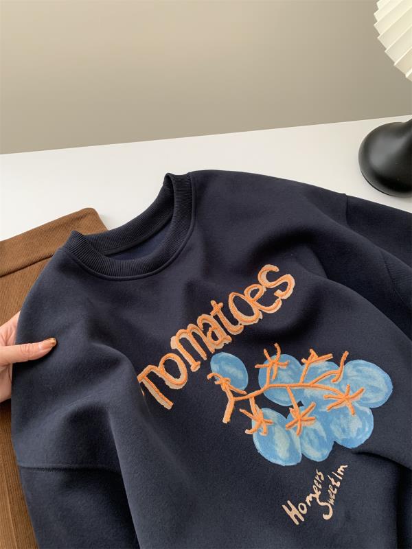 复古显白!西红柿刺绣圆领套头卫衣!女26春秋韩版ins风宽松学生外套!