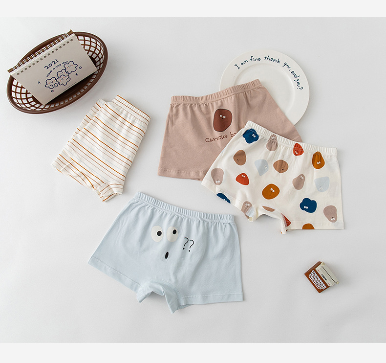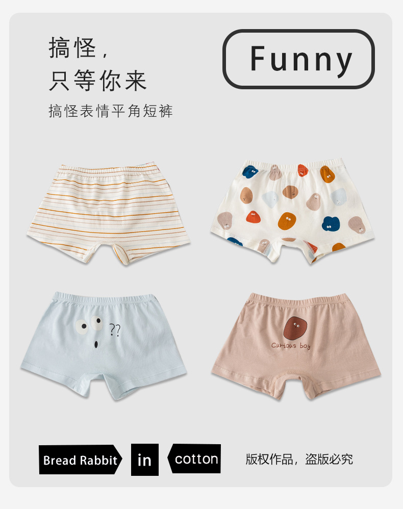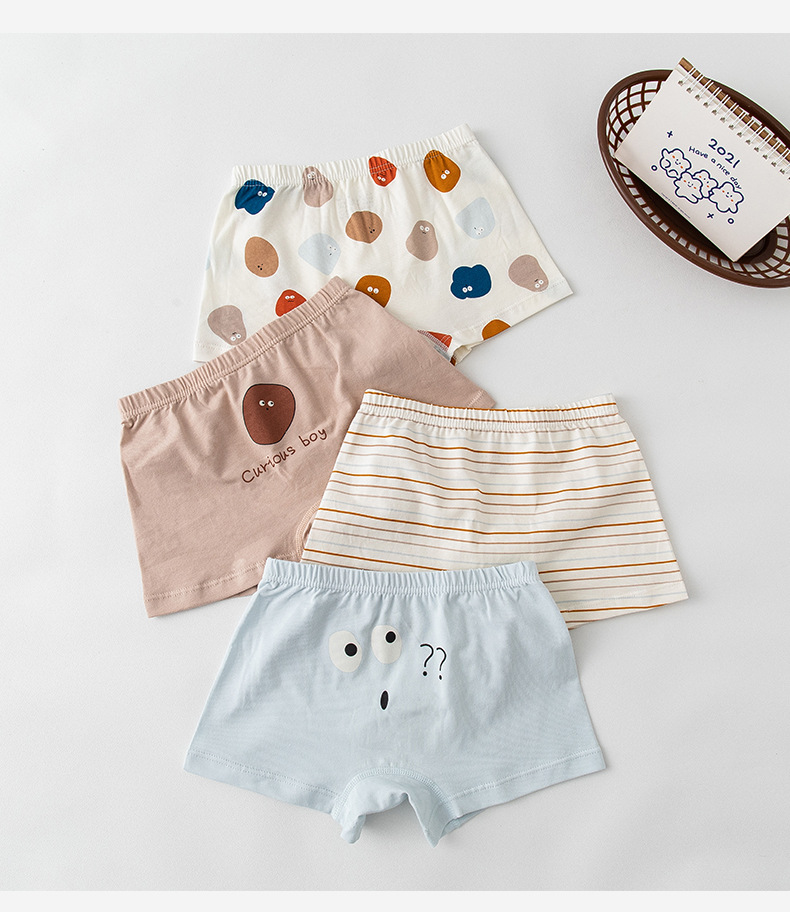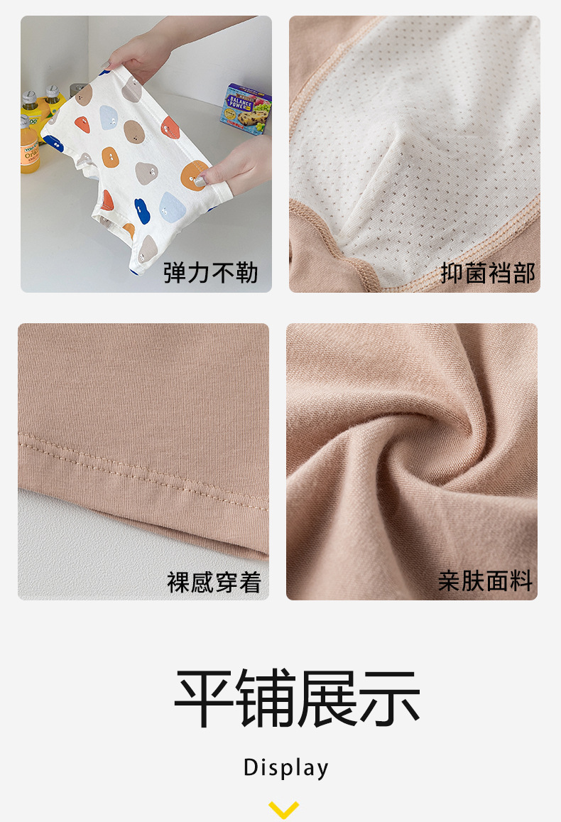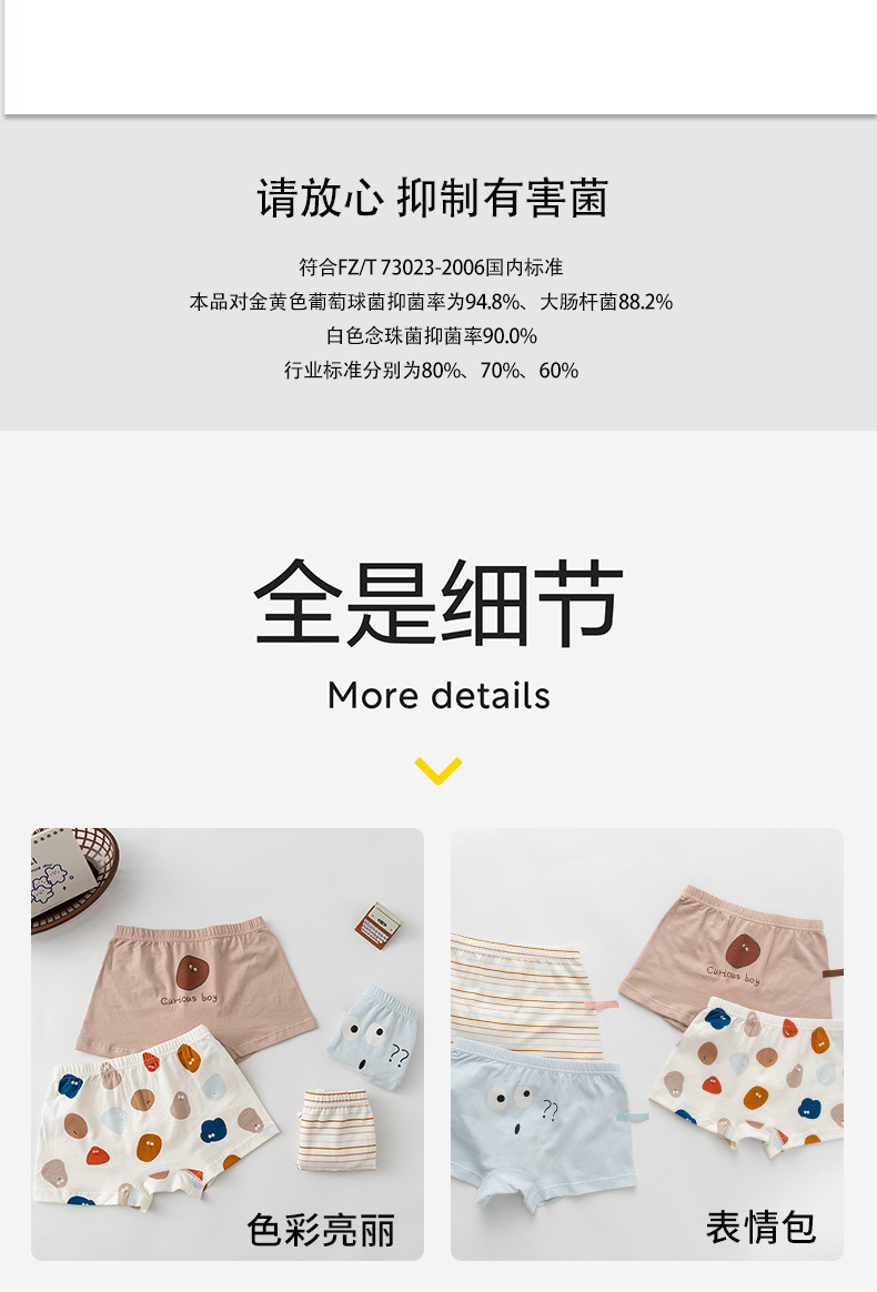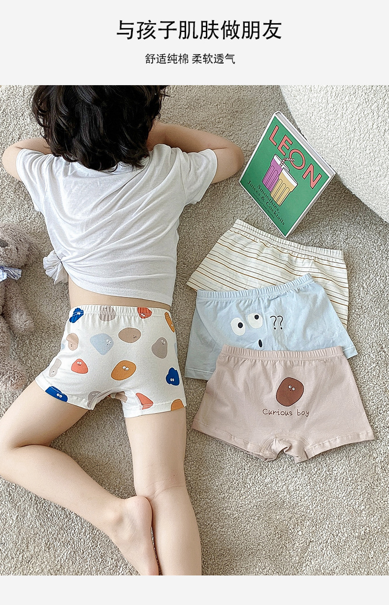 【4条装 艾草抑JUN 舒适透气 天然安全】卡通男童内裤秋冬新款儿童平角四角裤 中小童A类纯棉短裤