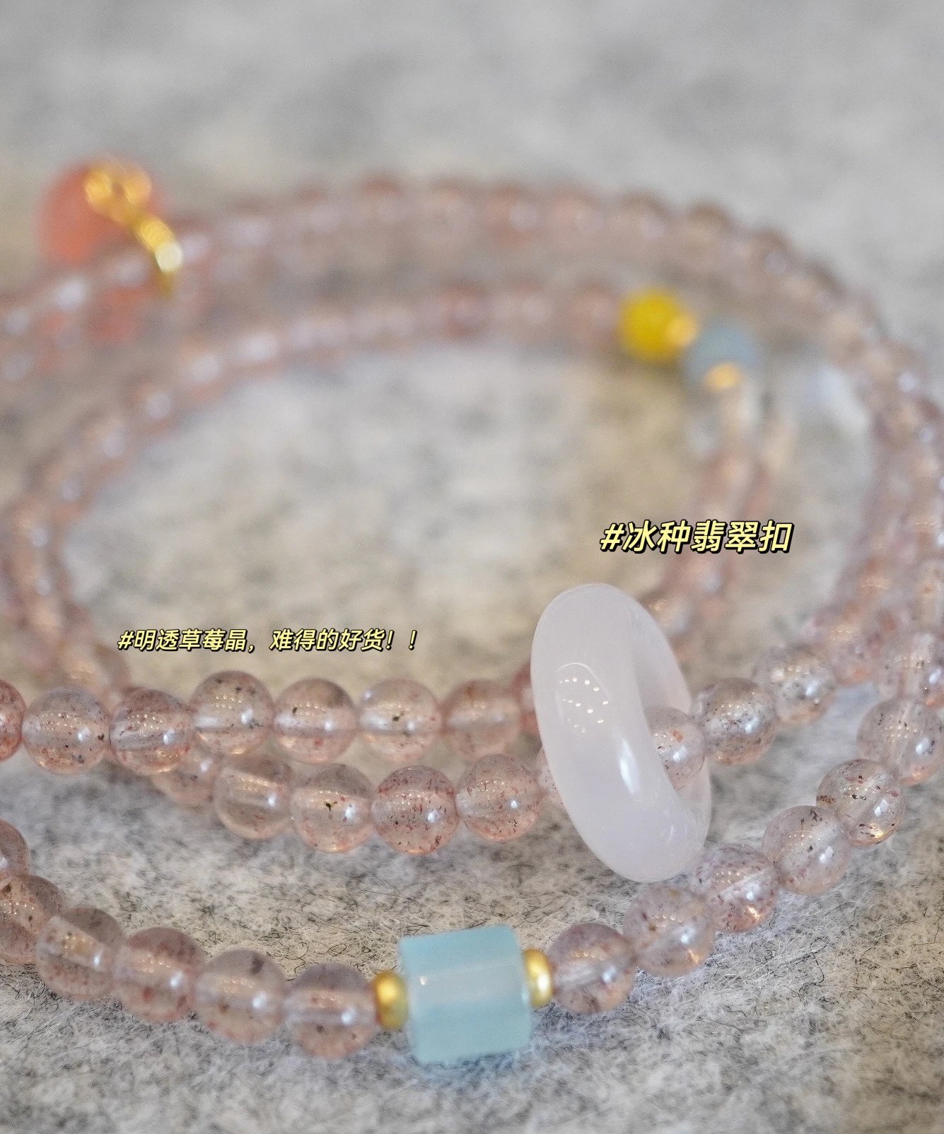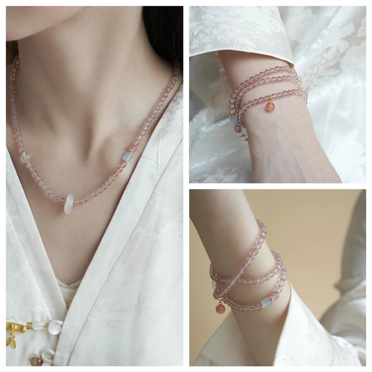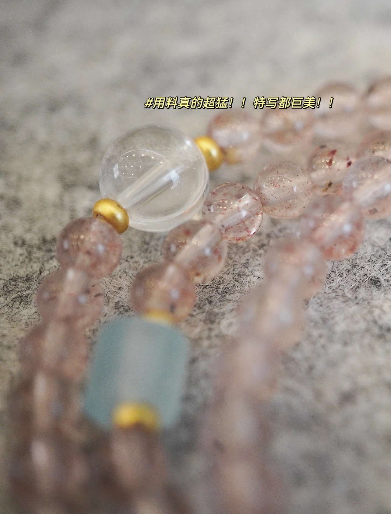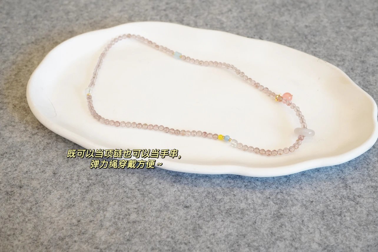 青岛饰品厂~【天然草莓晶多宝两戴项链手串】满满治愈感的温柔粉色~天然高透草莓晶+白水晶+海蓝宝+翡翠+蜜蜡+南红+18K古法金
