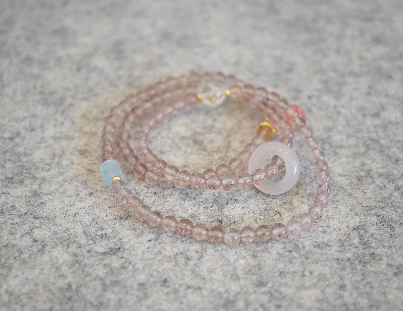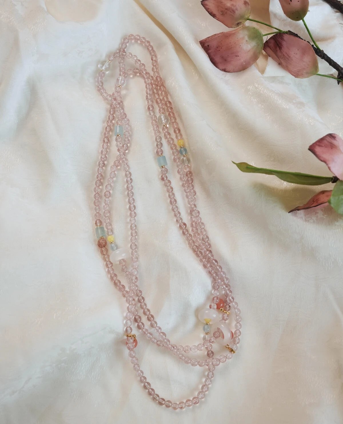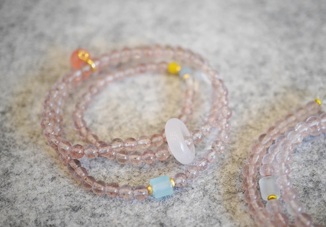 青岛饰品厂~【天然草莓晶多宝两戴项链手串】满满治愈感的温柔粉色~天然高透草莓晶+白水晶+海蓝宝+翡翠+蜜蜡+南红+18K古法金
