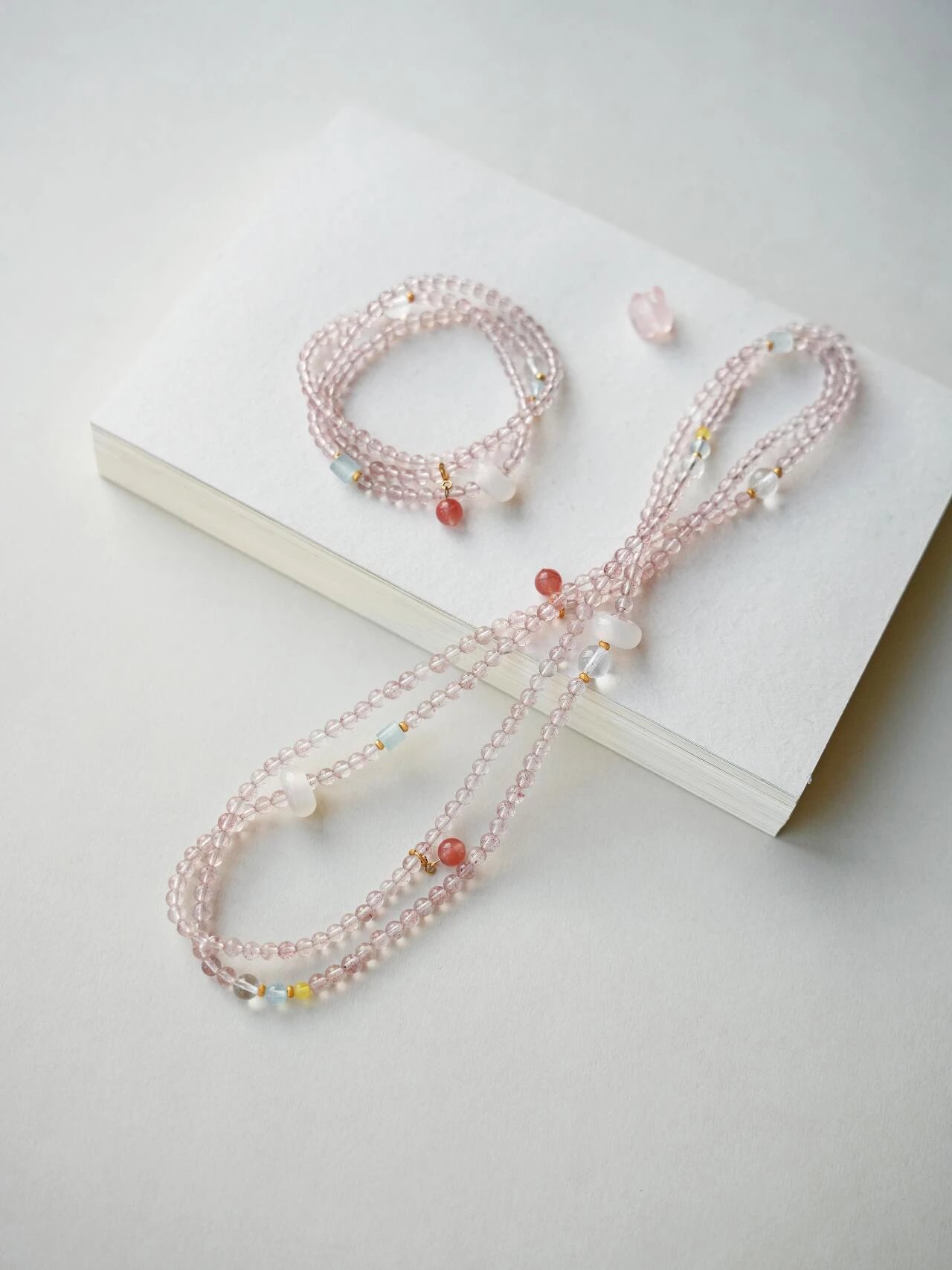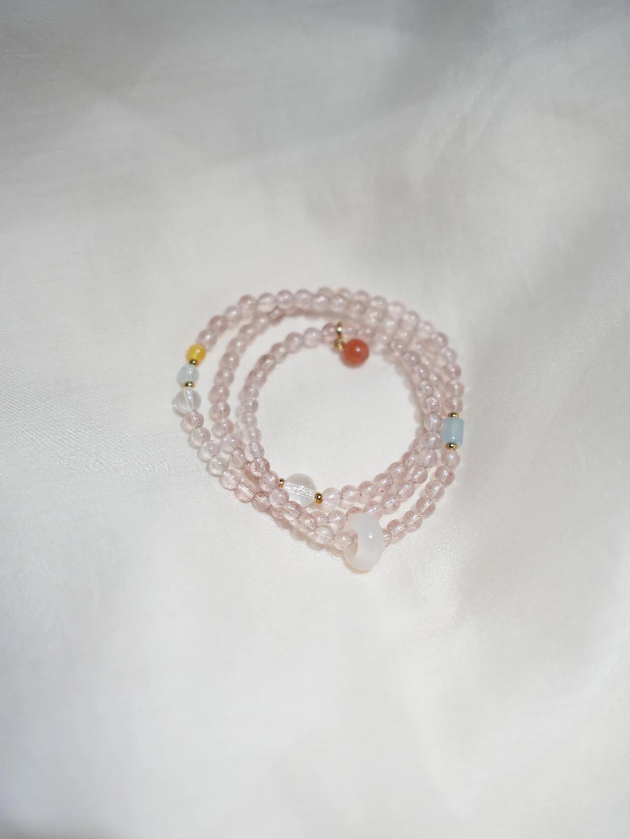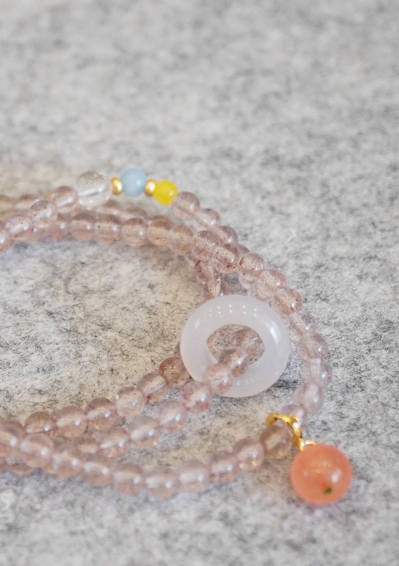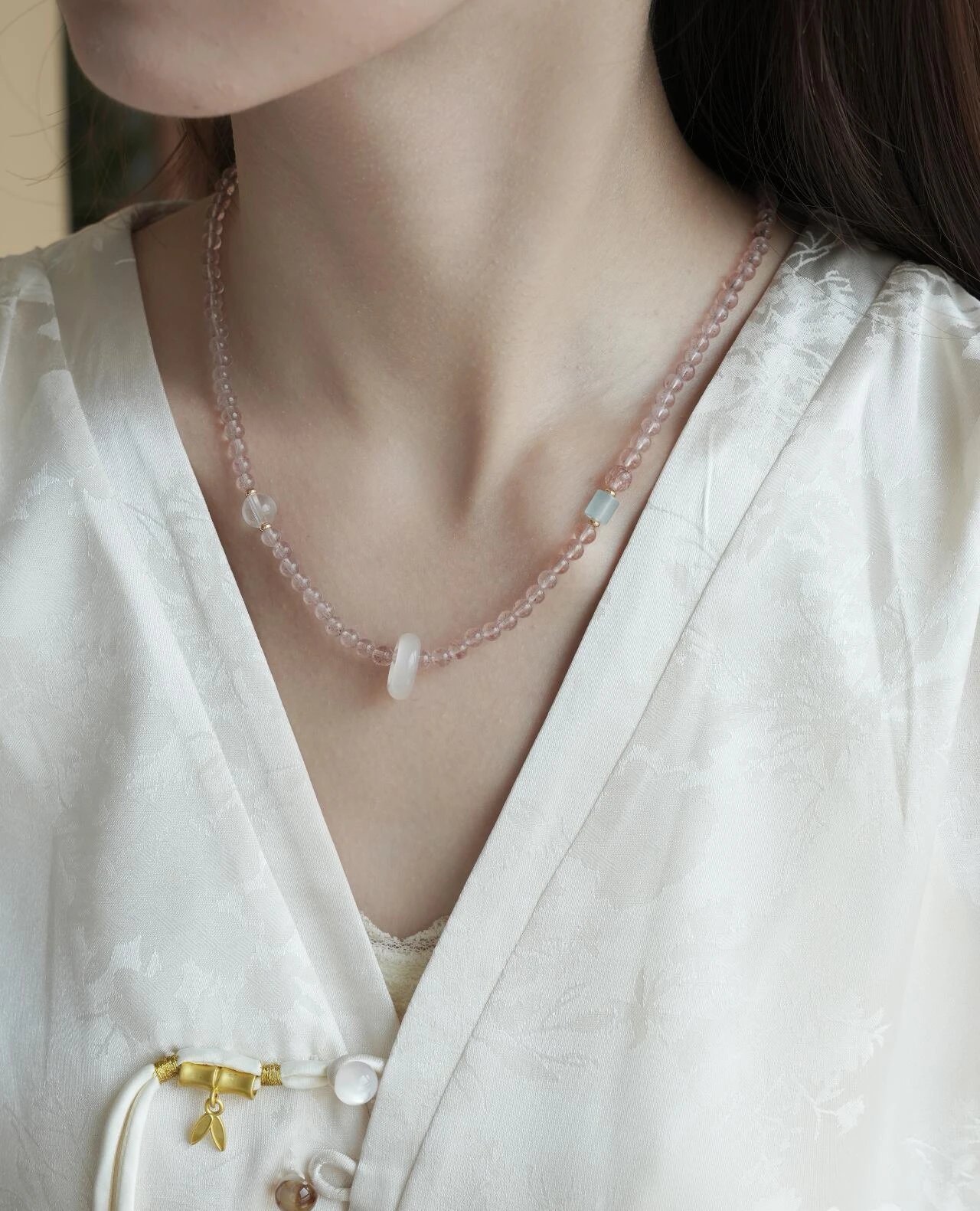青岛饰品厂~【天然草莓晶多宝两戴项链手串】满满治愈感的温柔粉色~天然高透草莓晶+白水晶+海蓝宝+翡翠+蜜蜡+南红+18K古法金