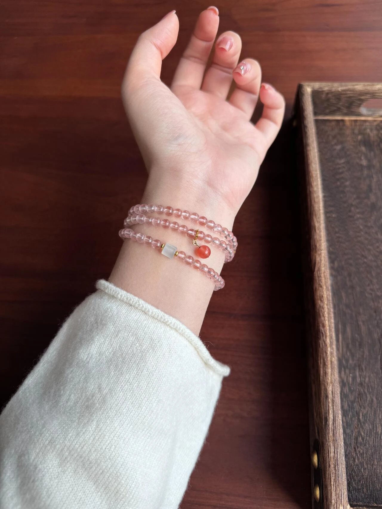 粉色是一种温柔的色彩,和草莓晶的寓意一样,