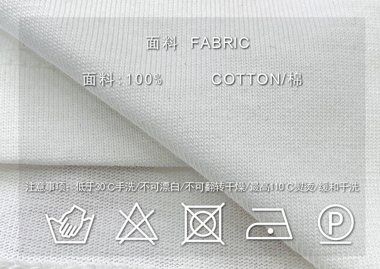 采用100%棉原料,细腻布纹肌理,手感沙爽,具有良好的弹性,柔吸汗透气不闷热,贴身凉爽,而且染色性好,尺寸稳定性佳,紧密细支的布面坚韧耐穿。