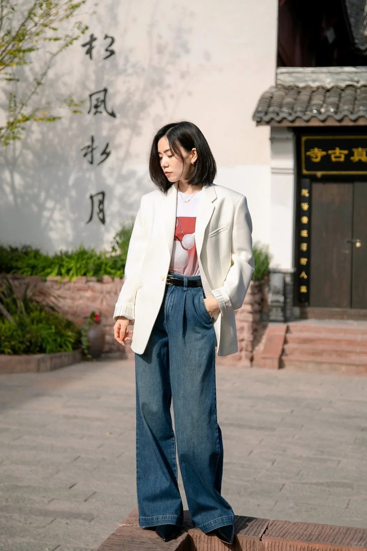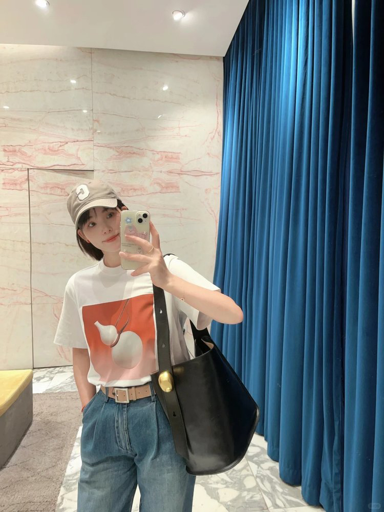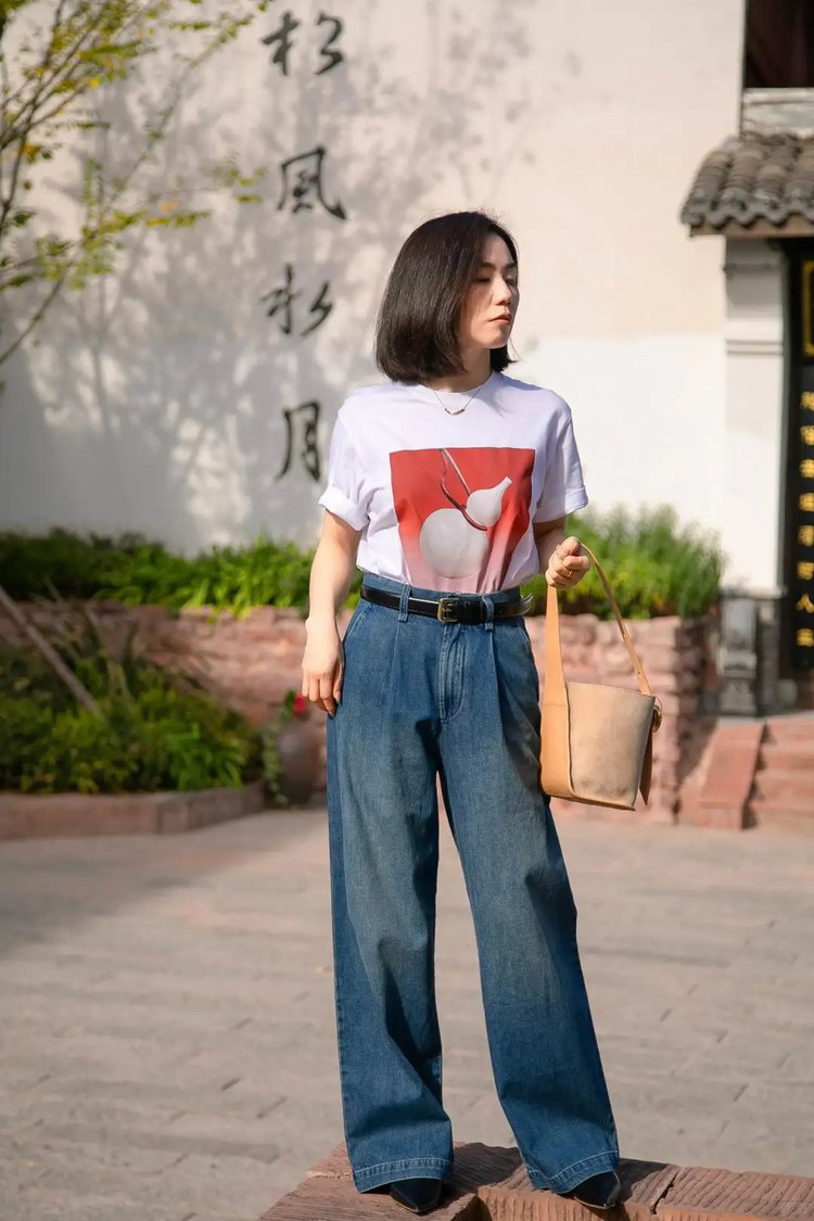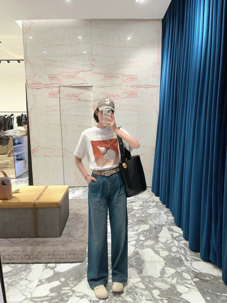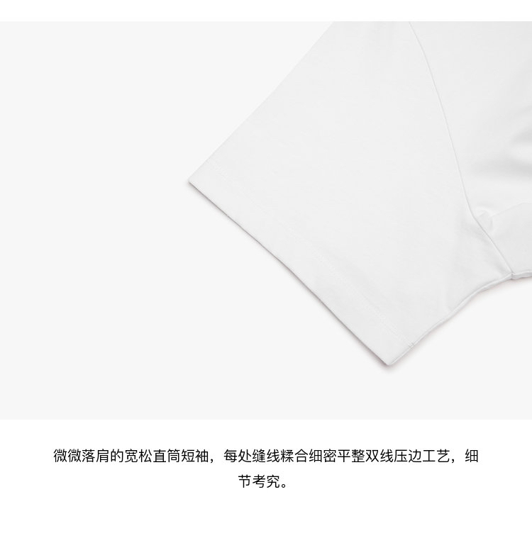 微微落肩的宽松直筒短袖,每处缝线糅合细密平整双线压边工艺,细节考究。