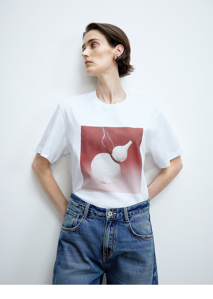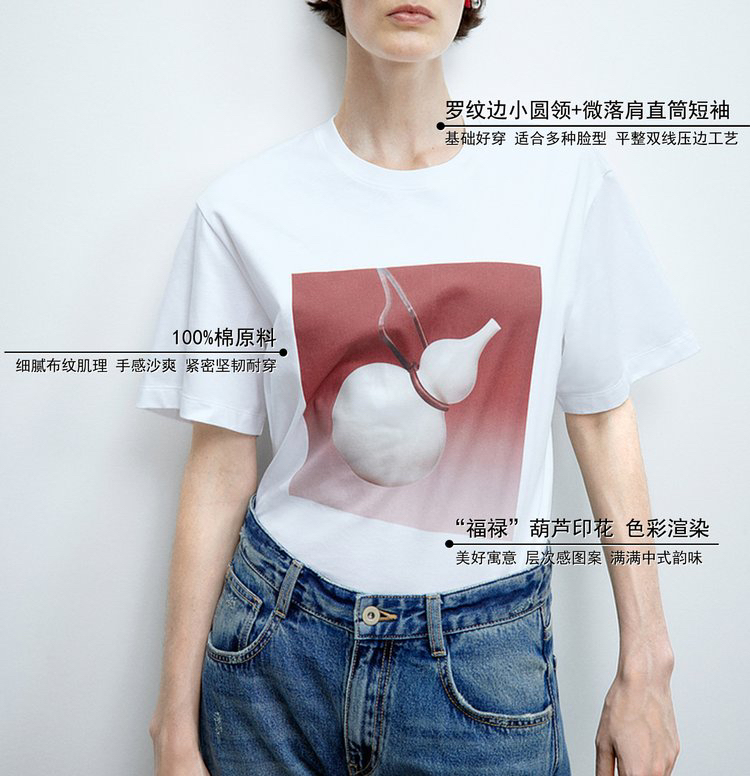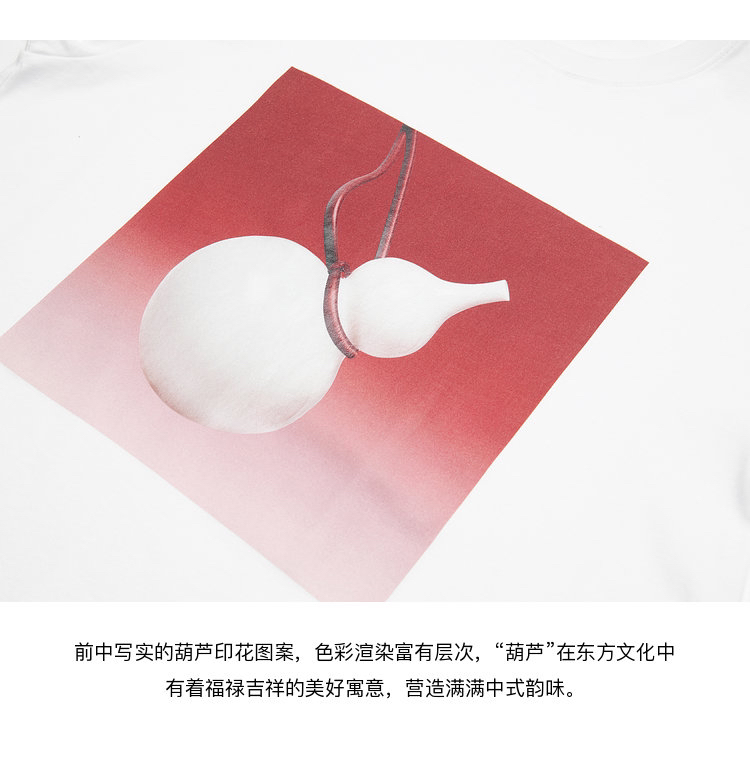 全棉福禄寓意进口日本印花T恤 葫芦“福禄” 胶印 100%棉 细腻布纹肌理 手感沙爽 简约舒适版型 微落肩设计
