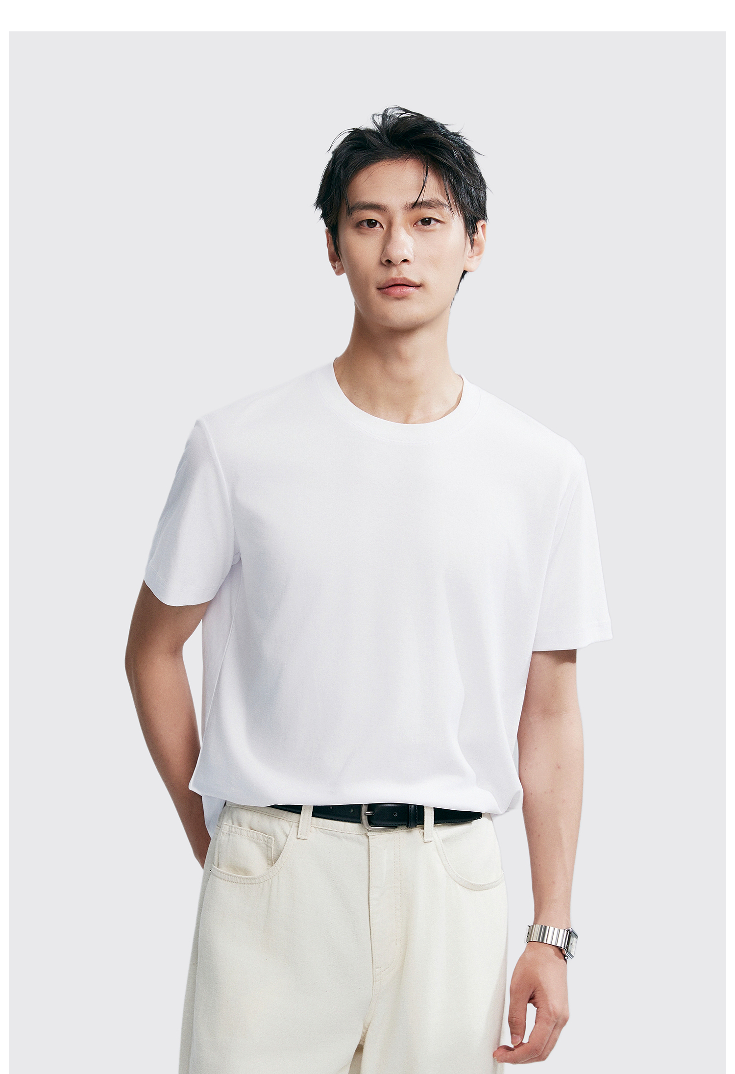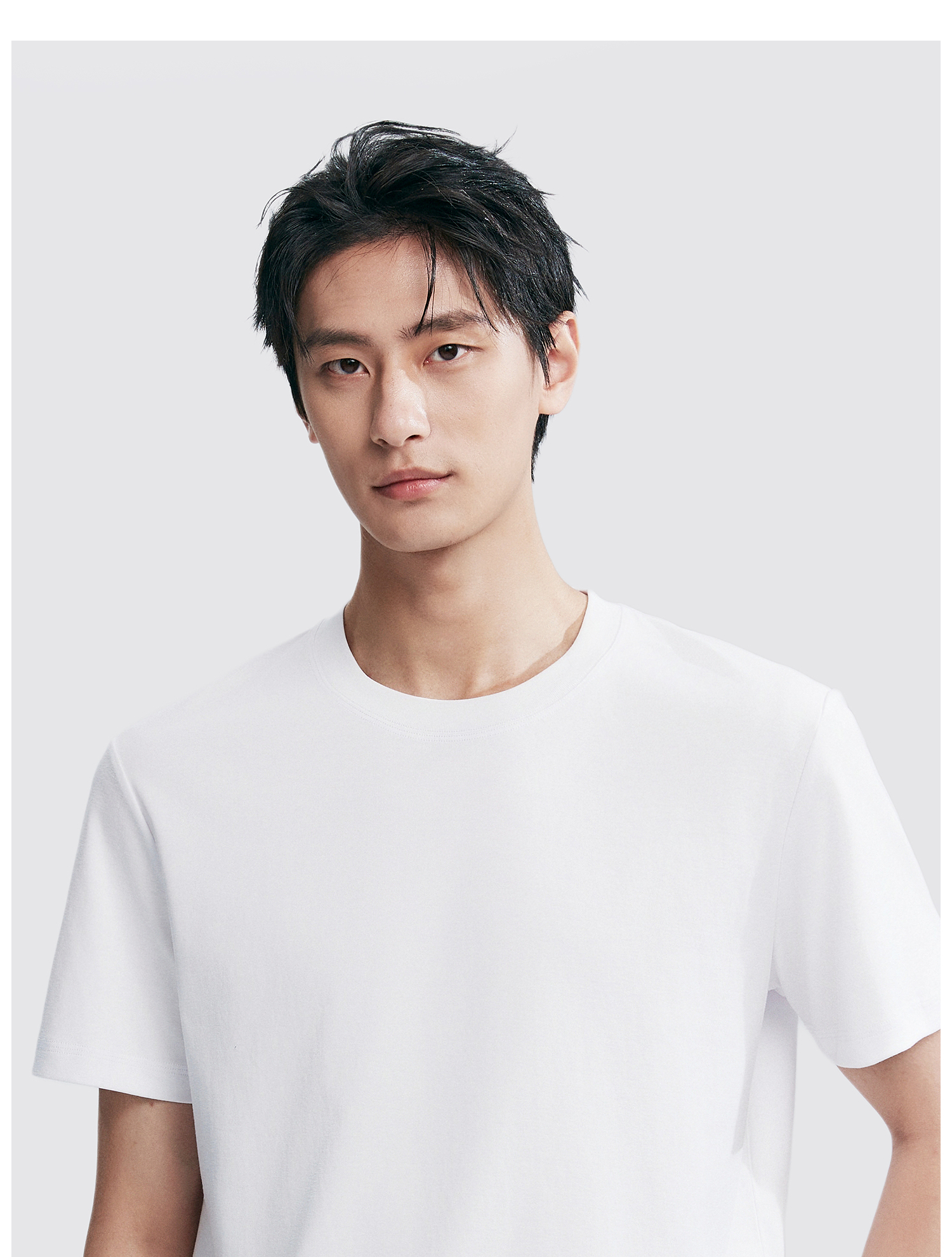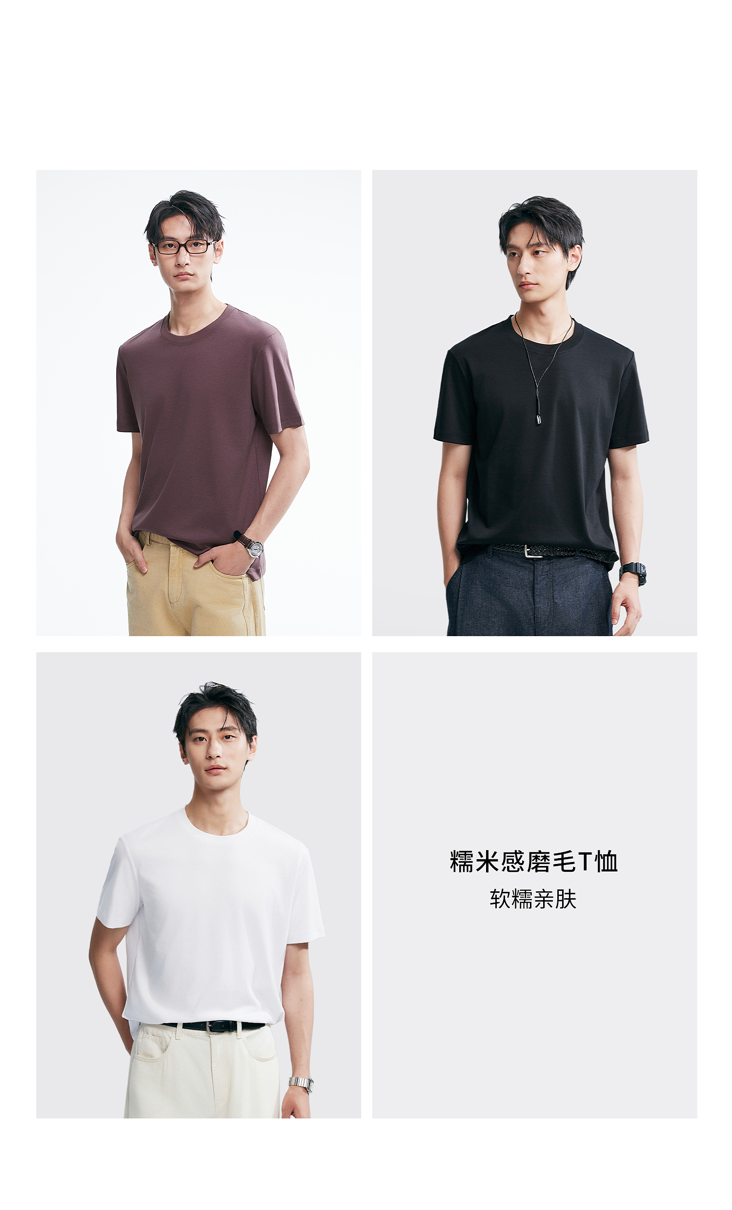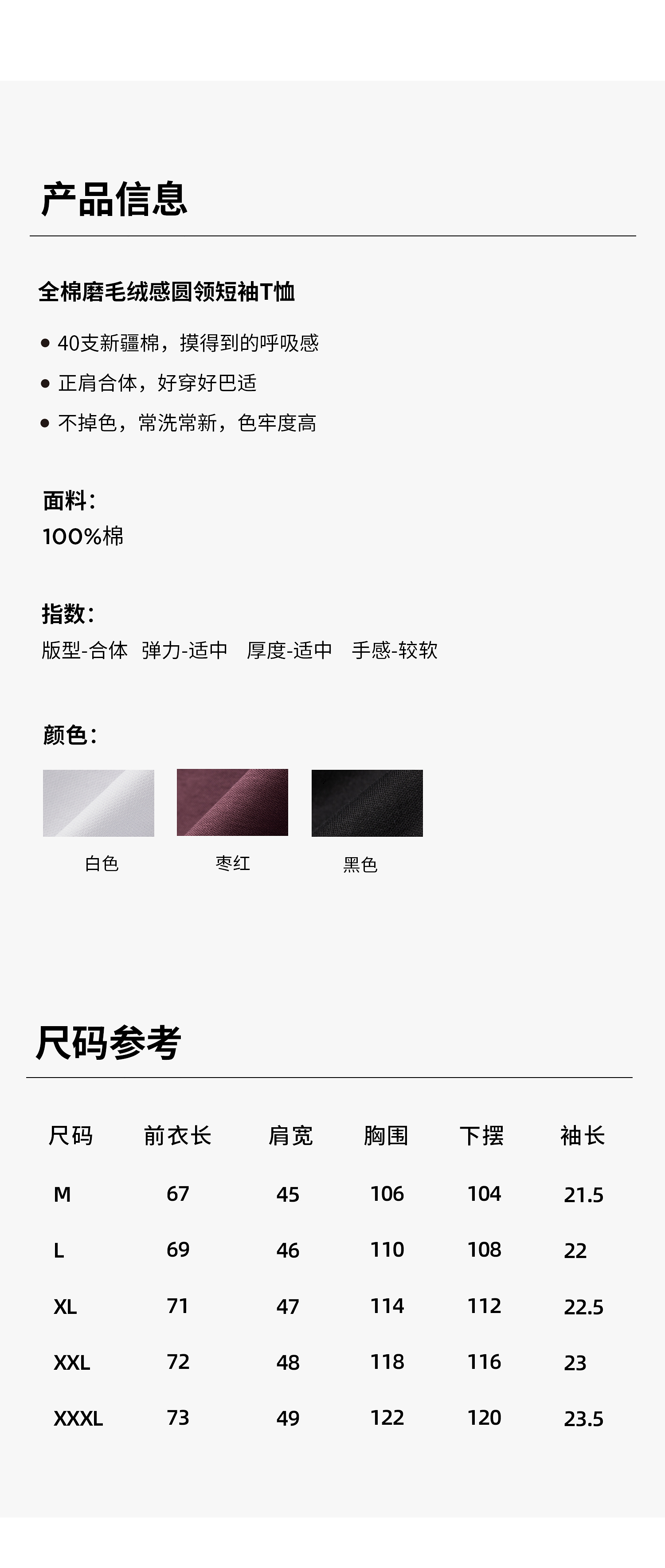棉仓366801013-全棉磨毛绒感圆领短袖T恤