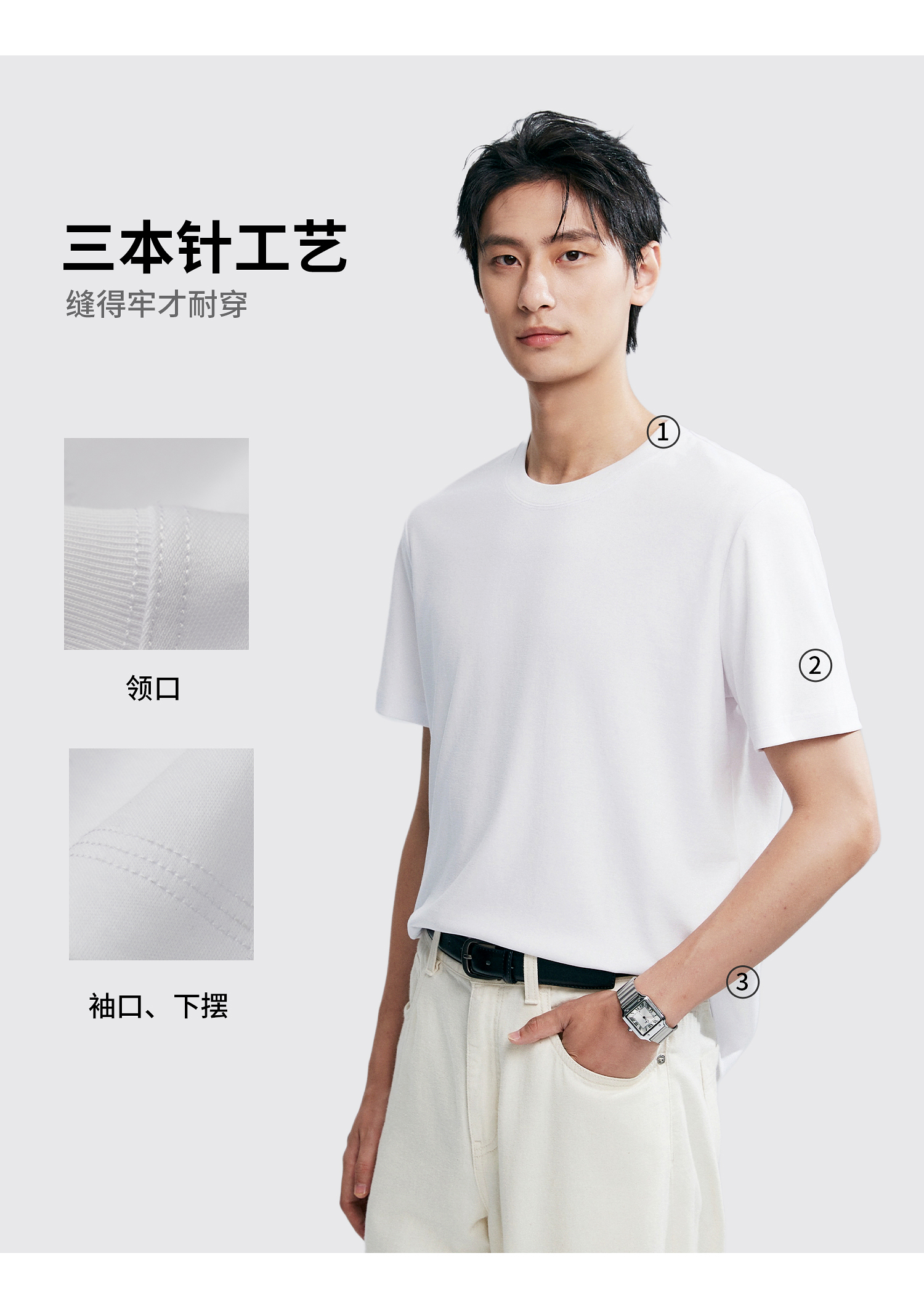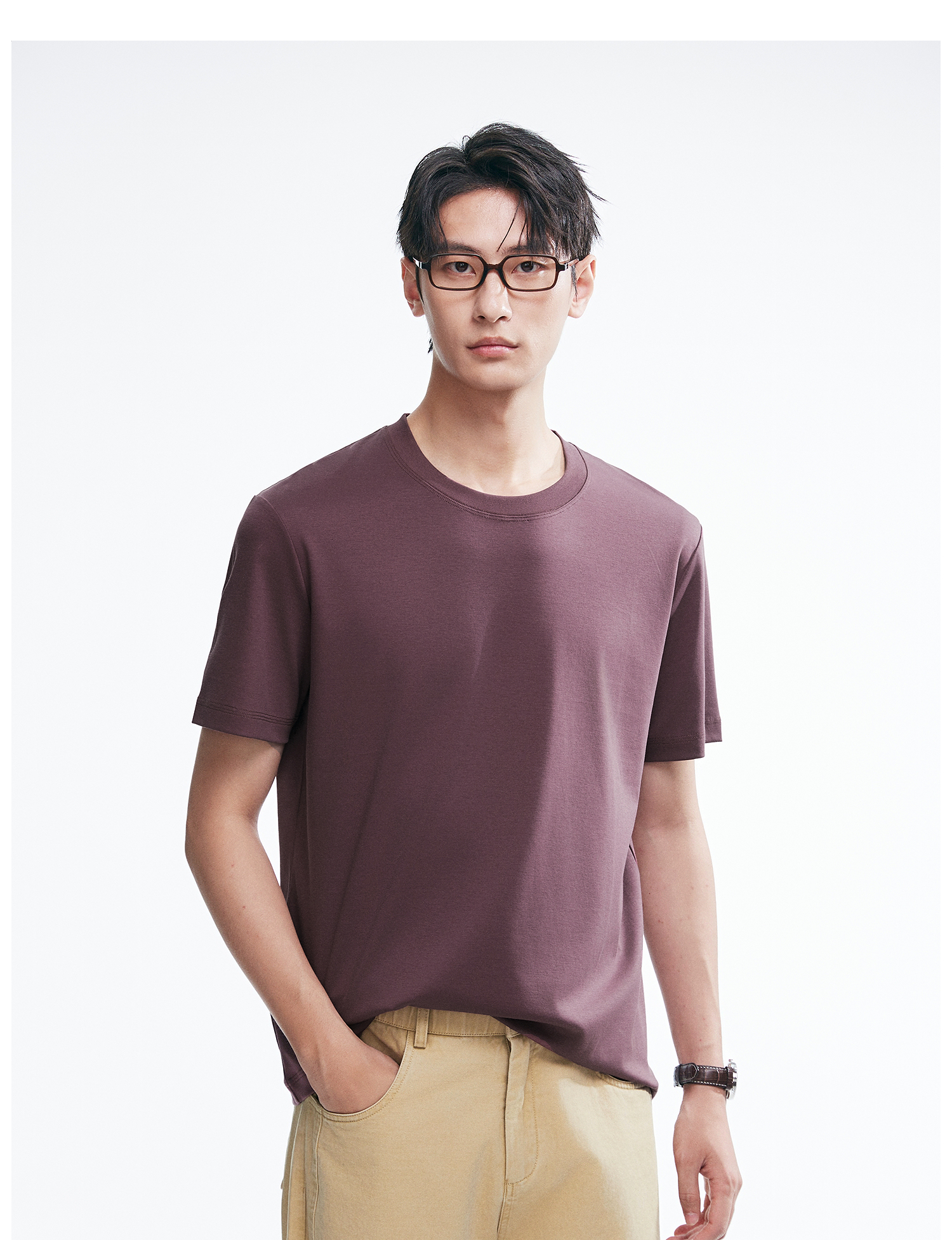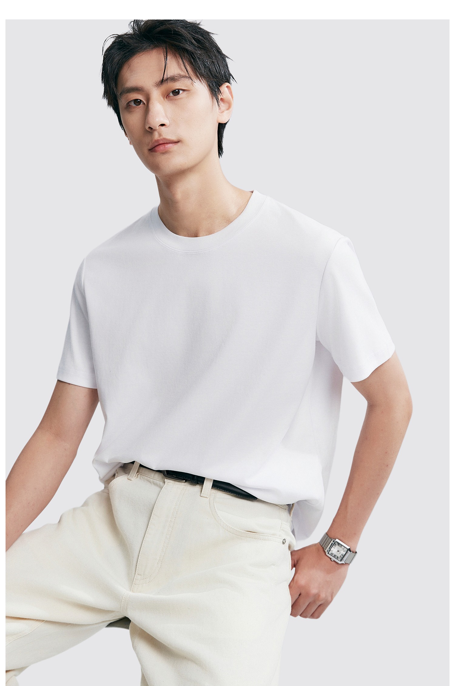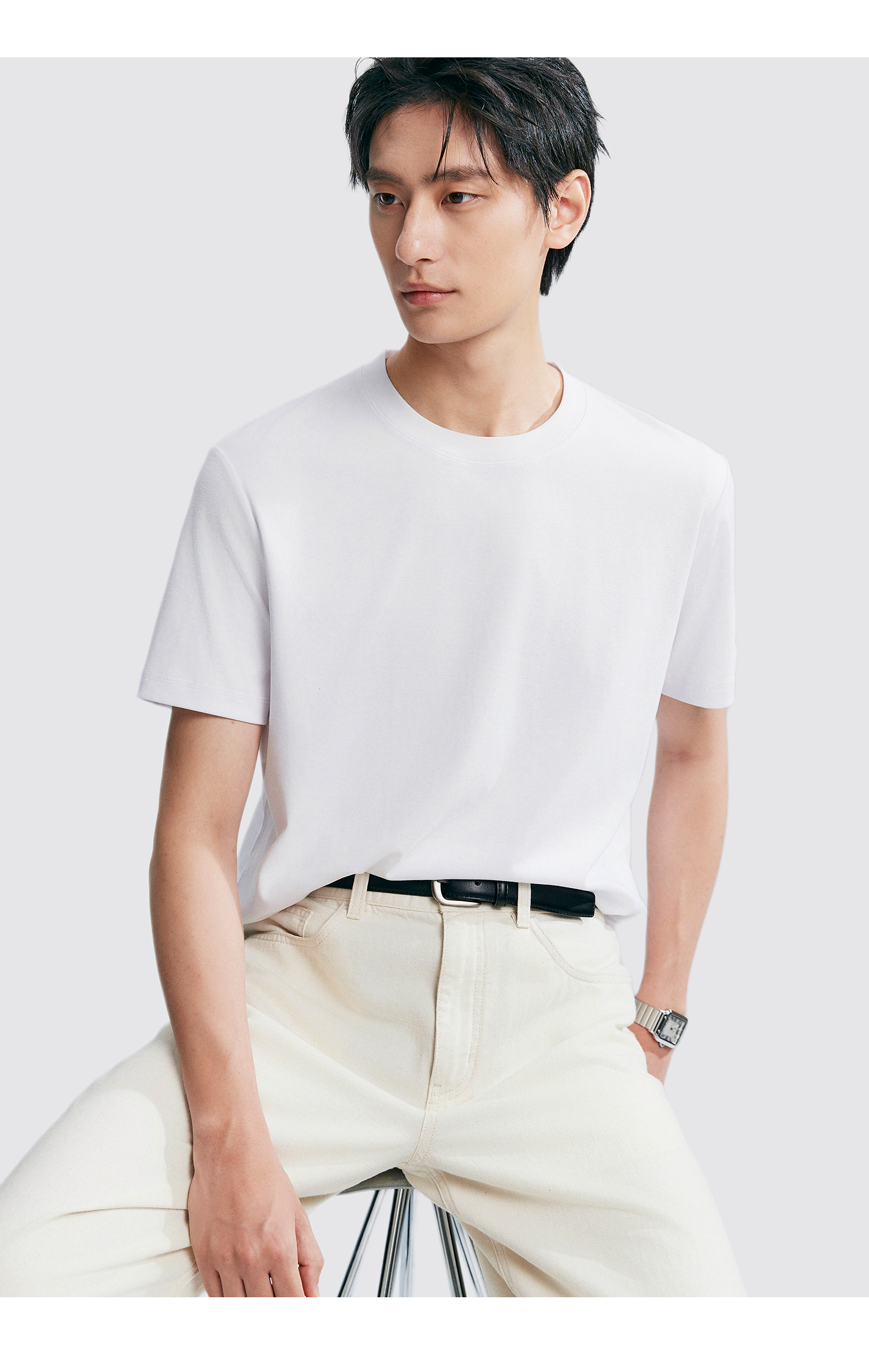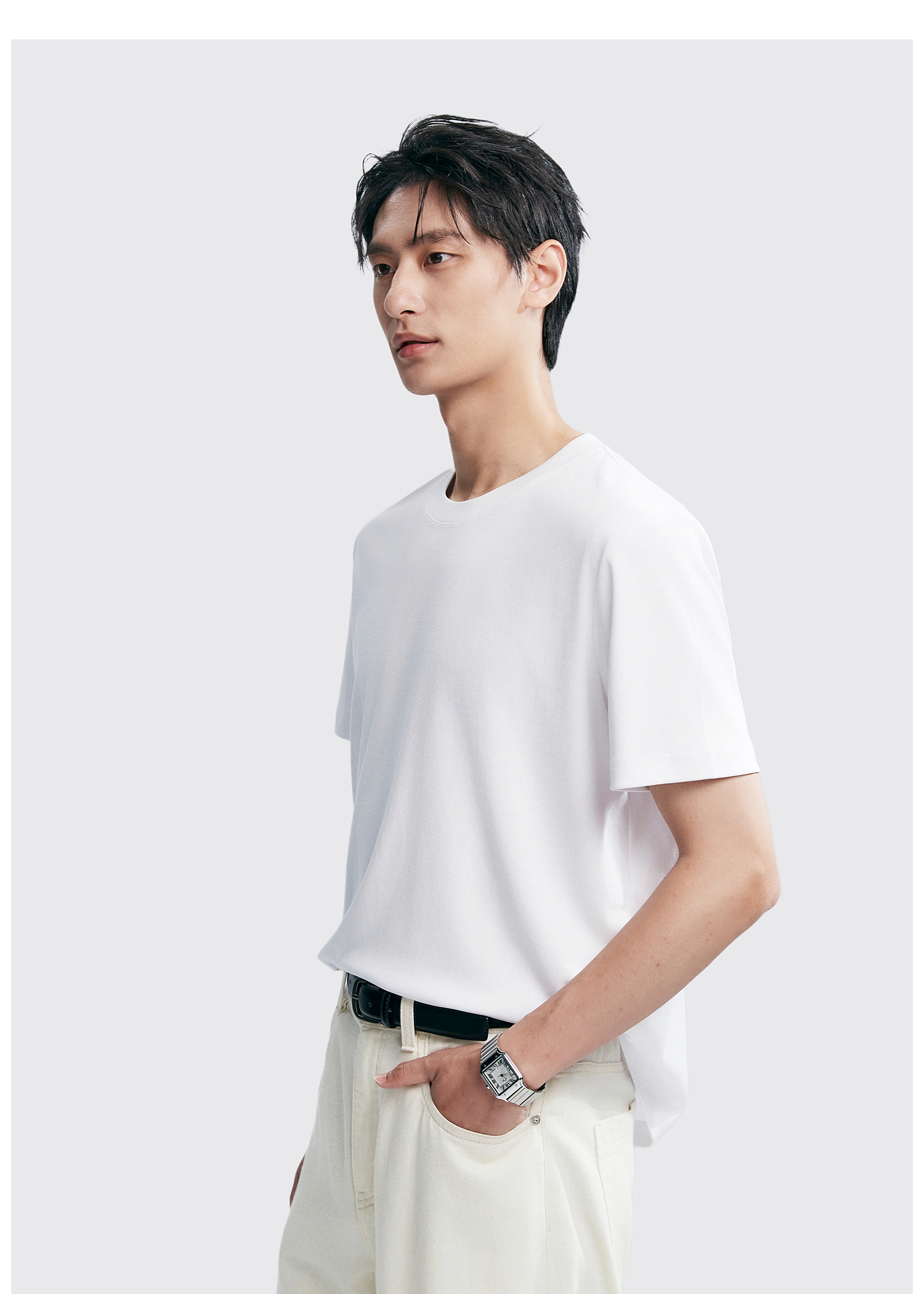 棉仓366801013-全棉磨毛绒感圆领短袖T恤