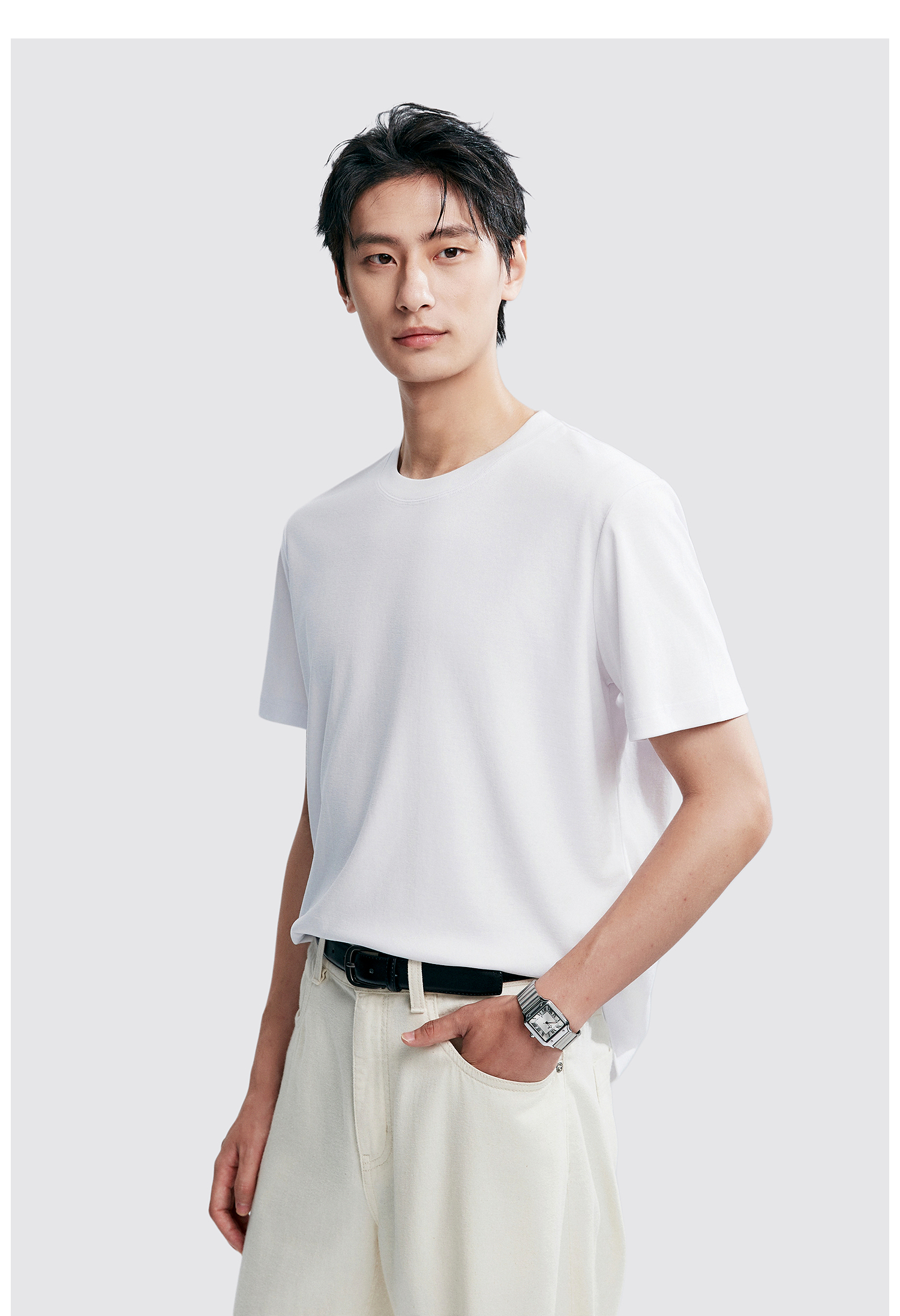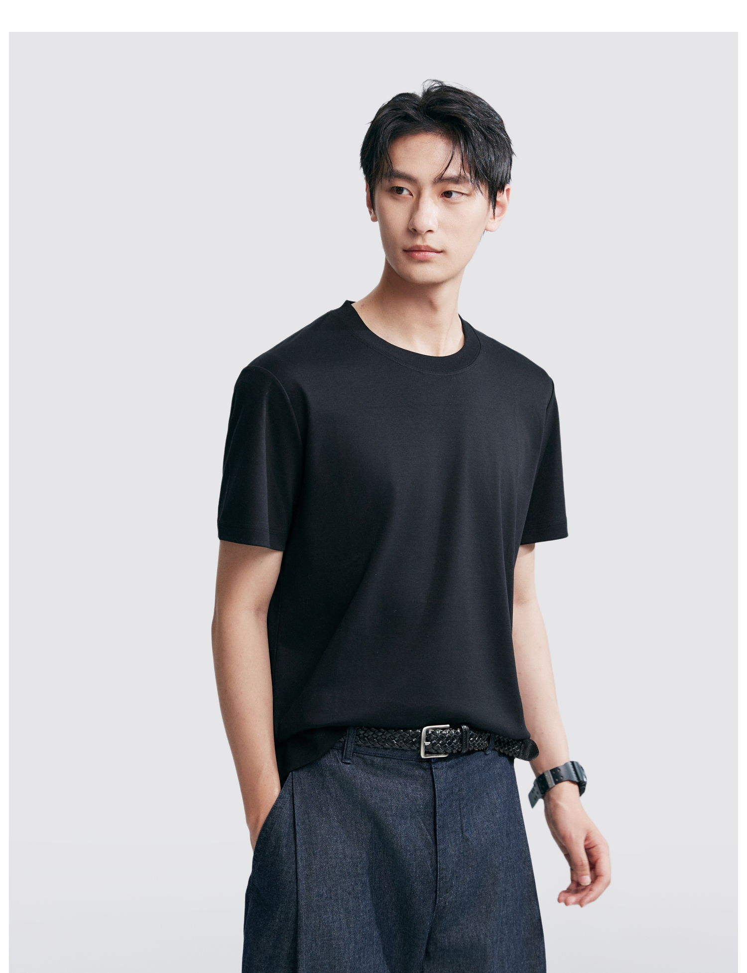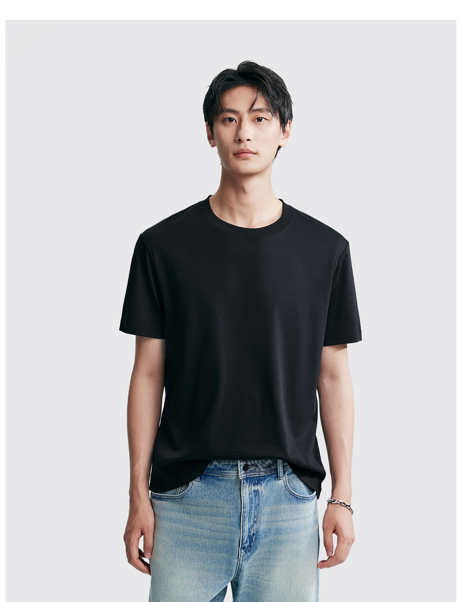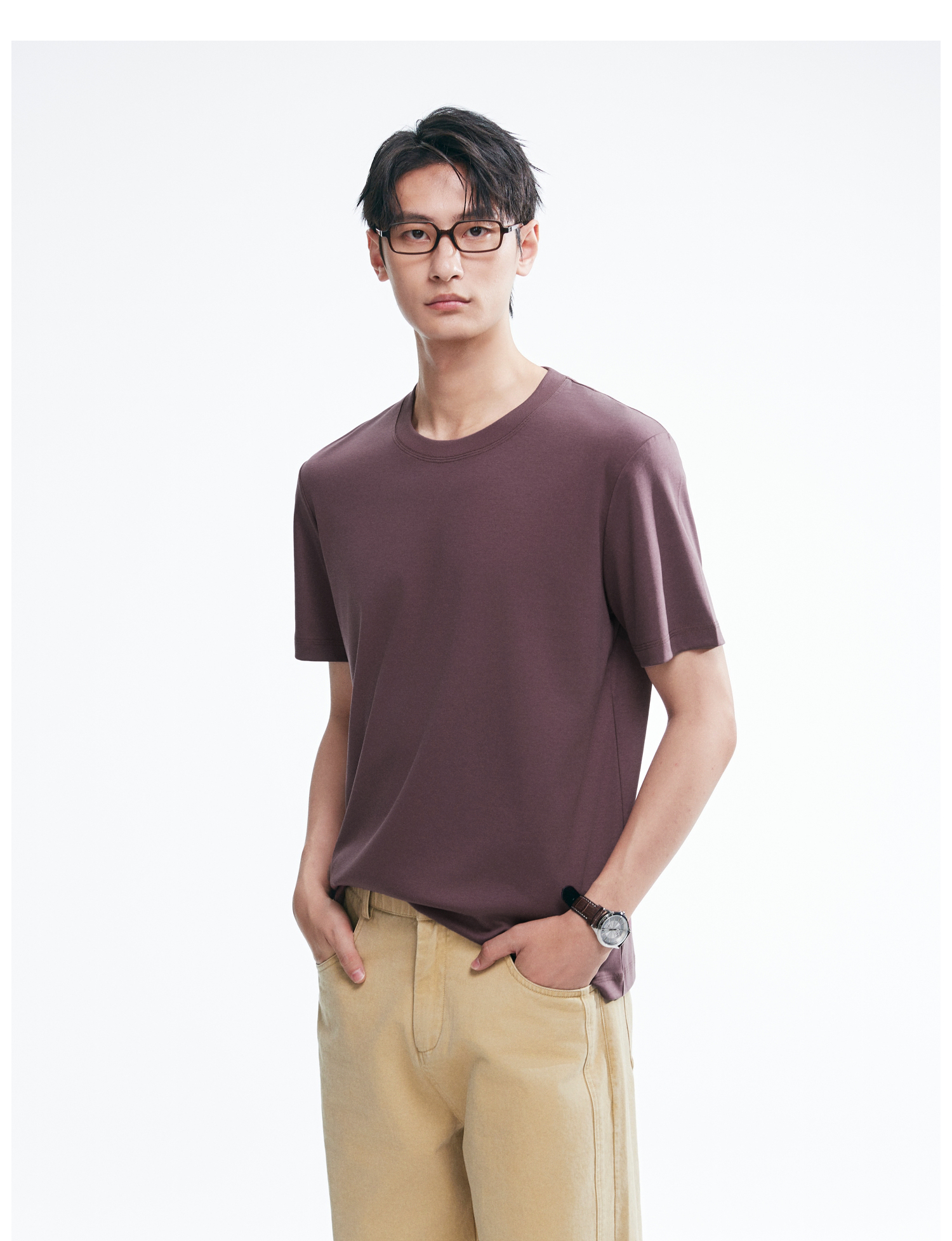 棉仓366801013-全棉磨毛绒感圆领短袖T恤