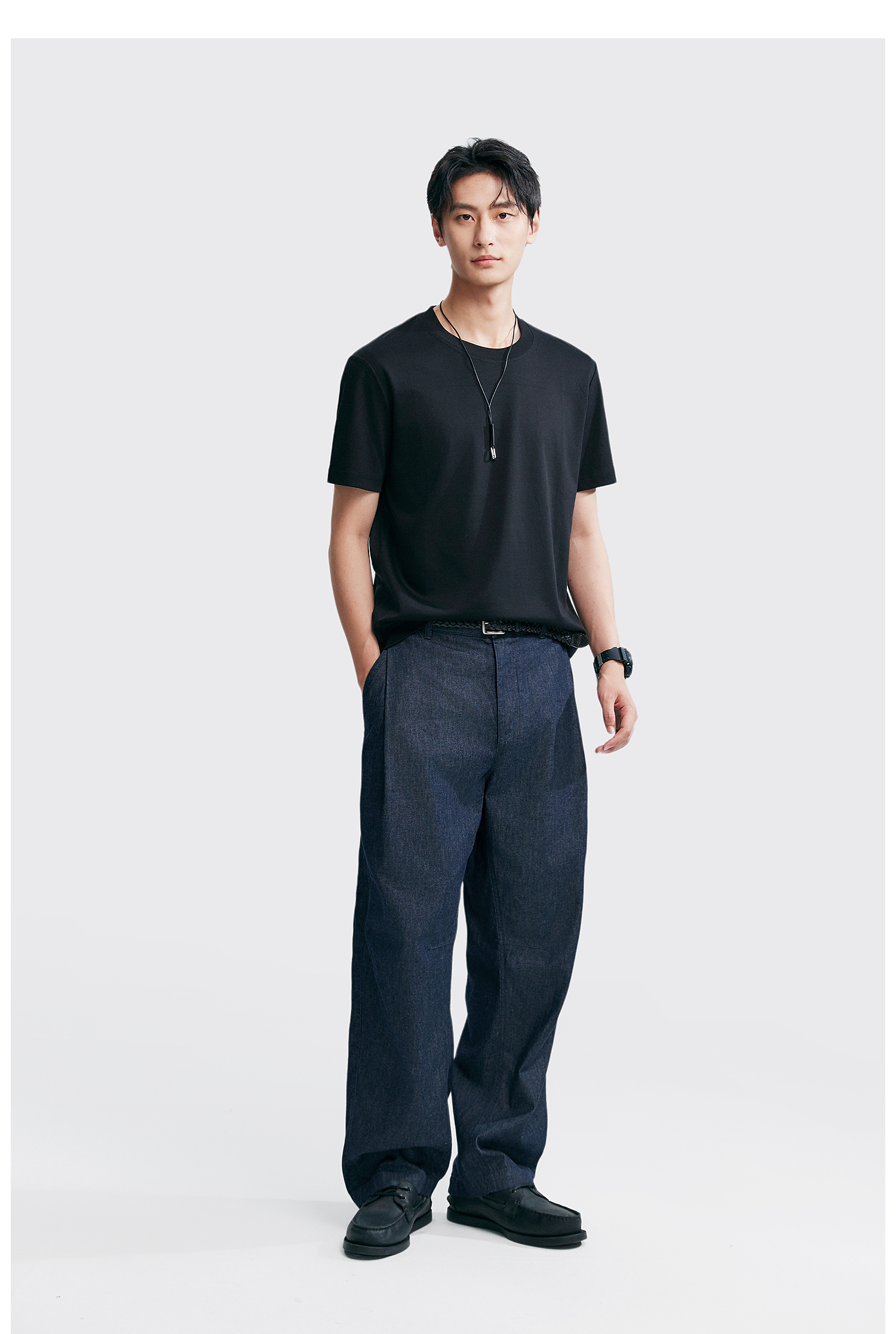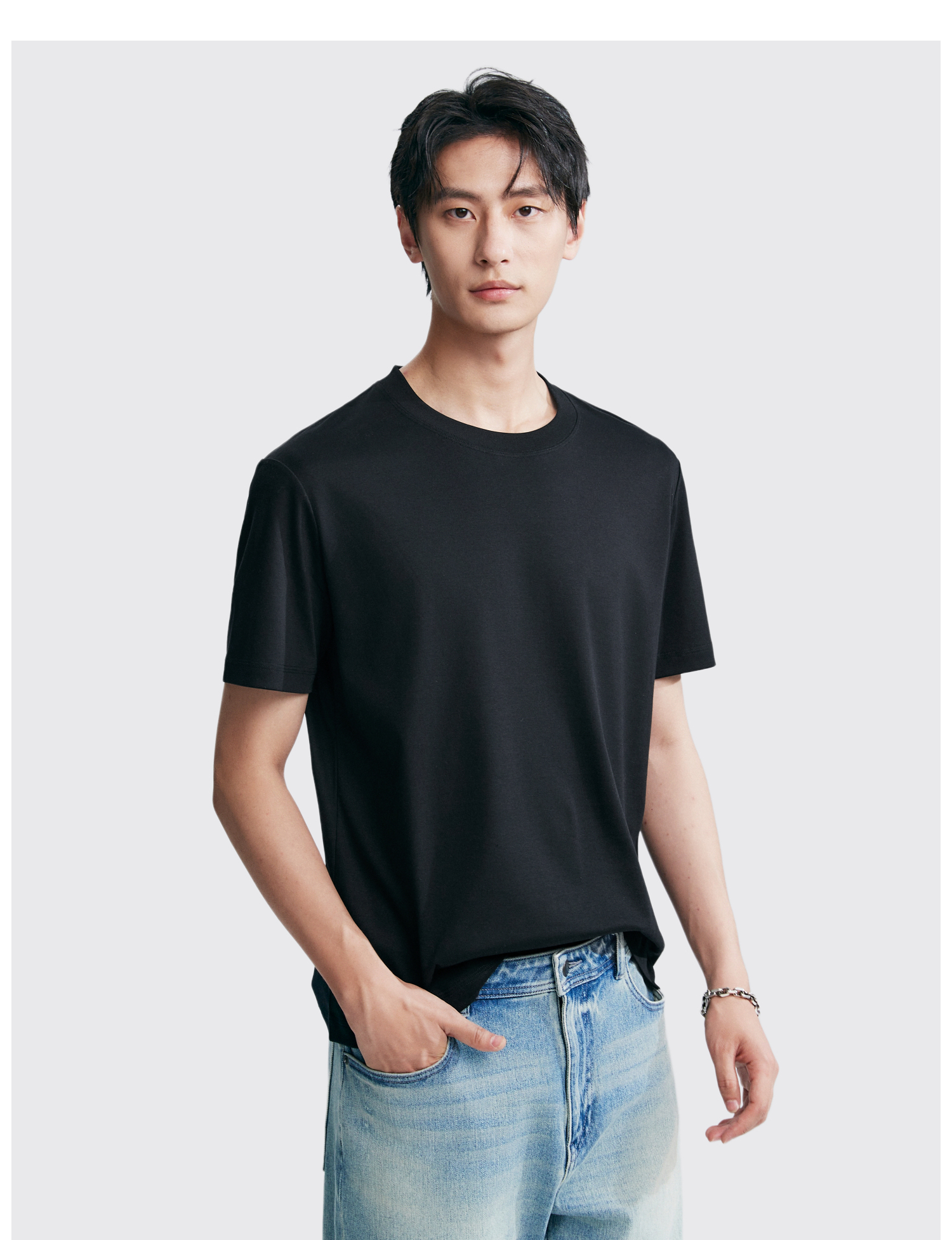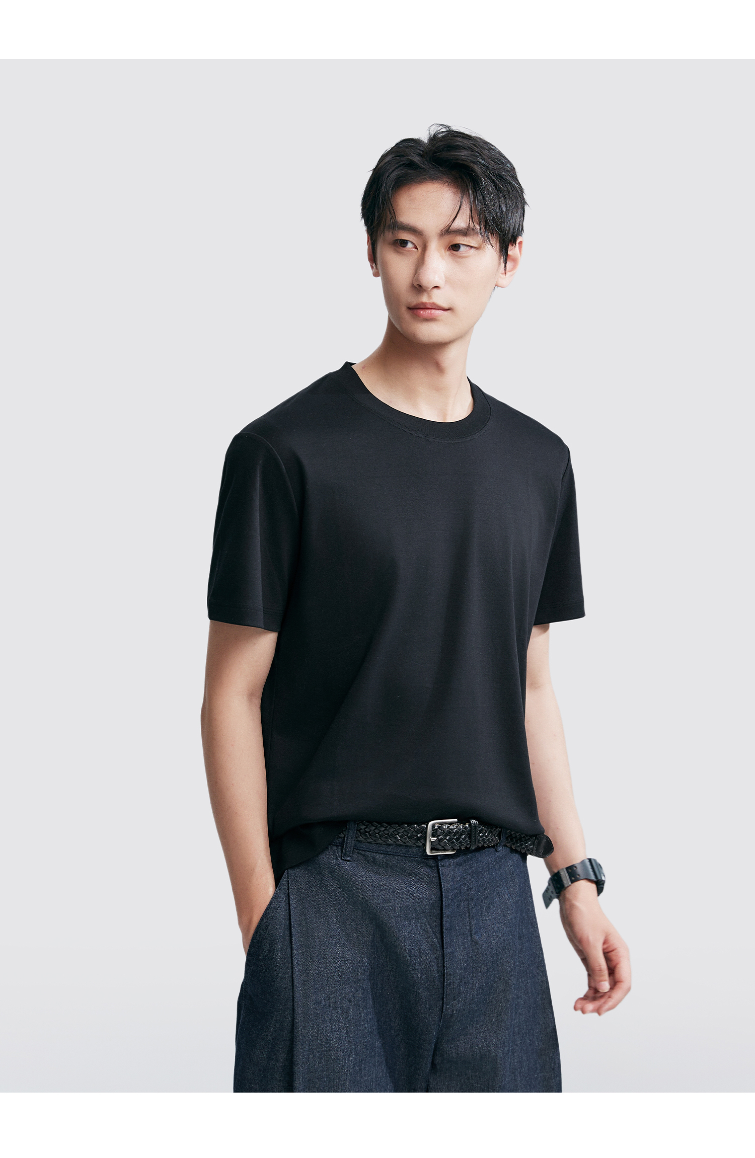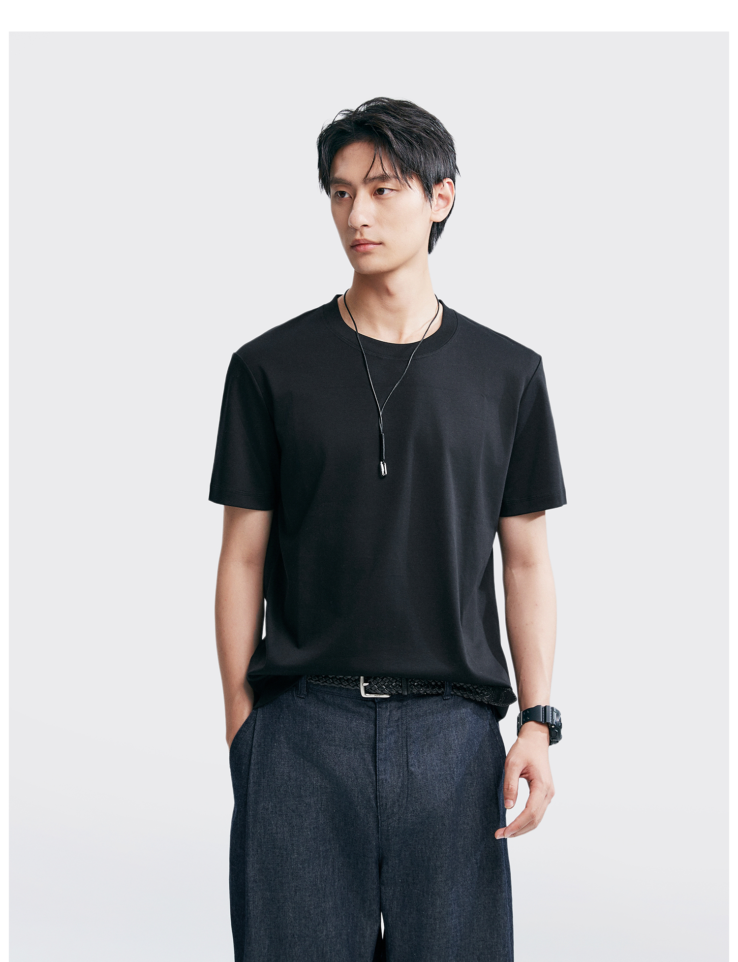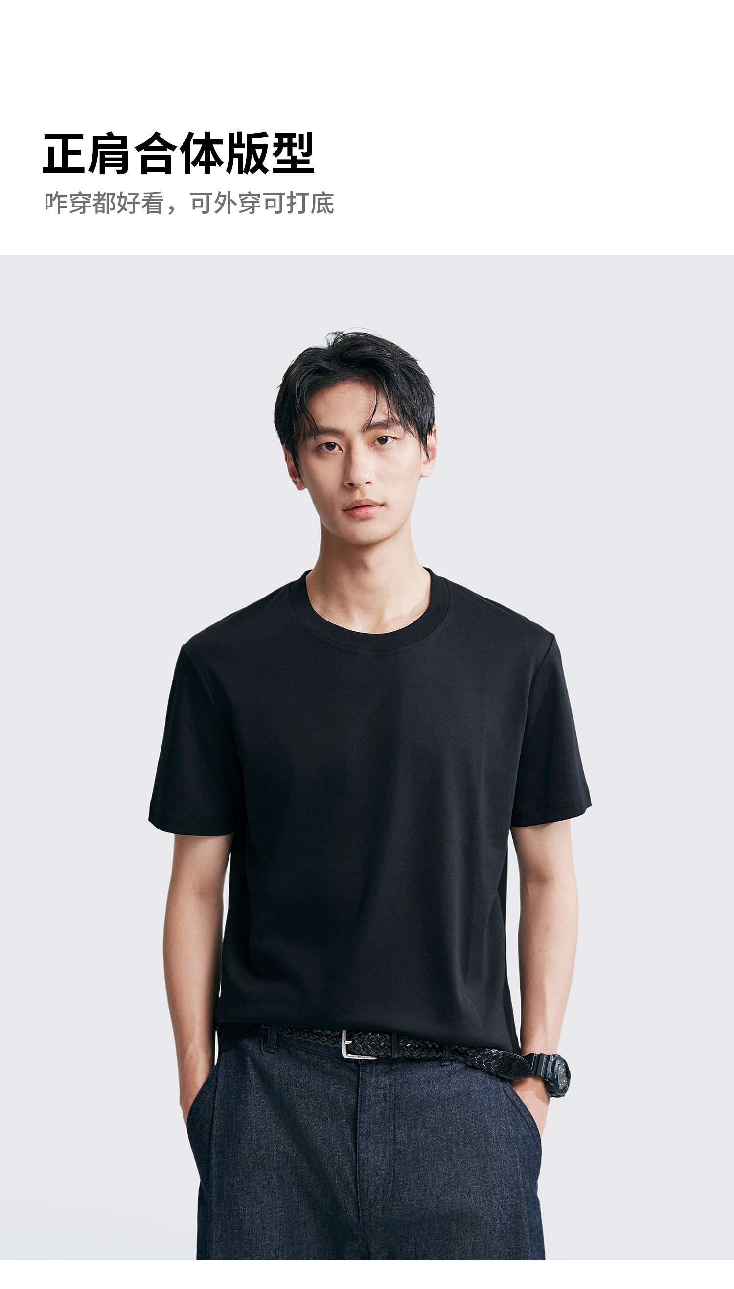 棉仓366801013-全棉磨毛绒感圆领短袖T恤