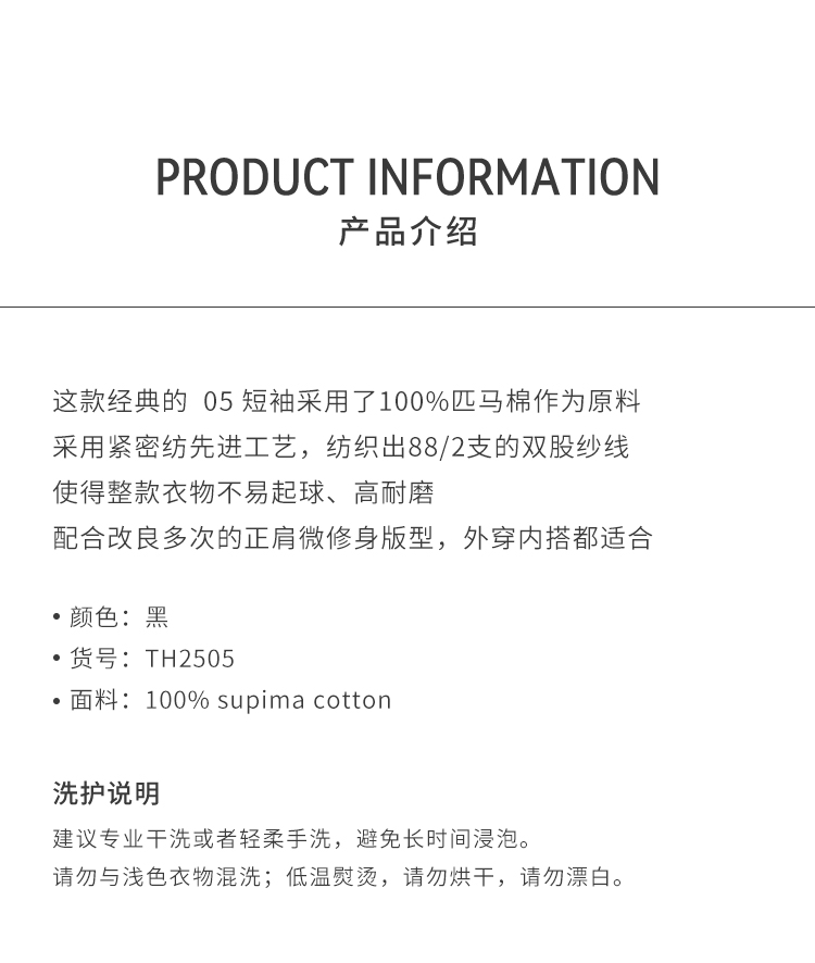 THEHOYAN|TH2505 05 SHAN T-shirt SHAN匹马棉正肩短袖 [ 黑 ]