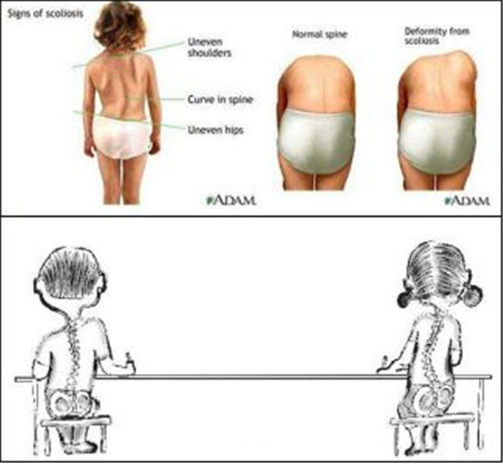 出现了含胸驼背、脊柱侧弯、