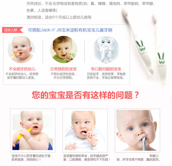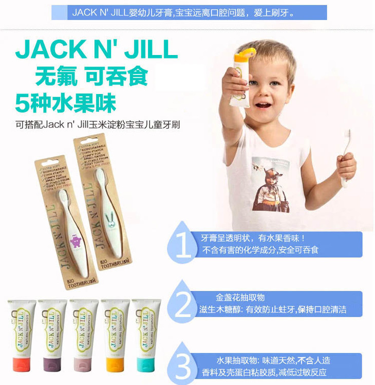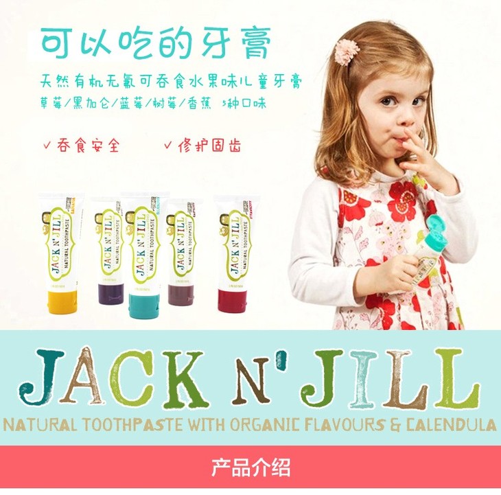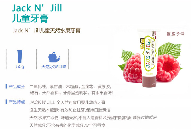 (永久下架)澳洲Jack n' Jill 可吞食无氟纯天然有机儿童牙膏 树莓味50g