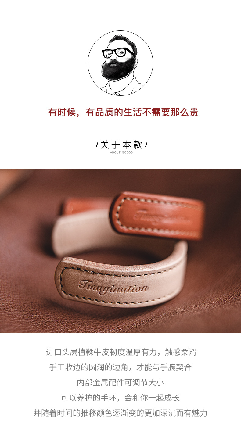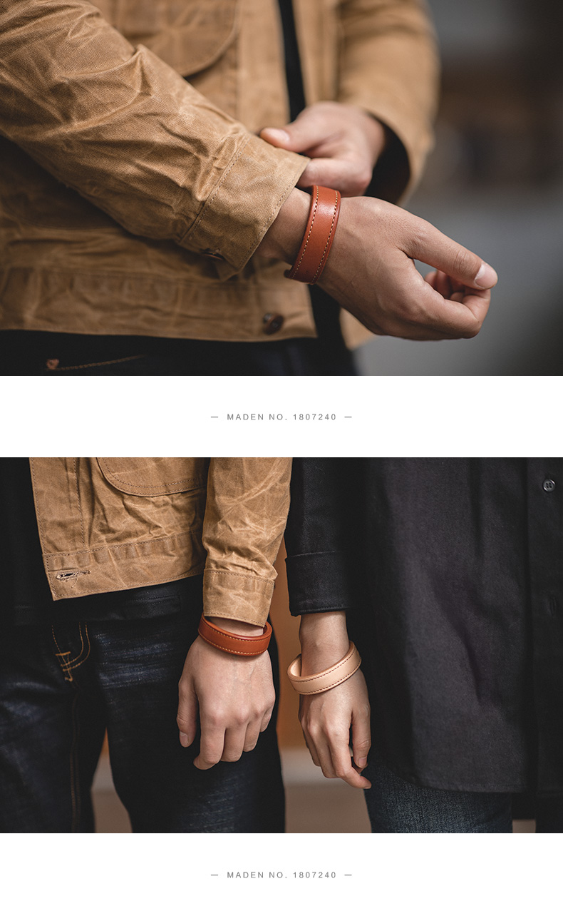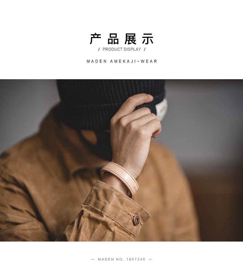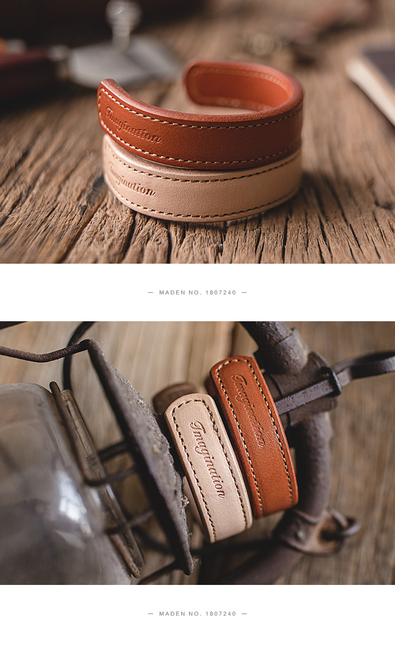 工装优选 日系复古进口植鞣真皮手镯小众开口宽手环男女礼物配饰
