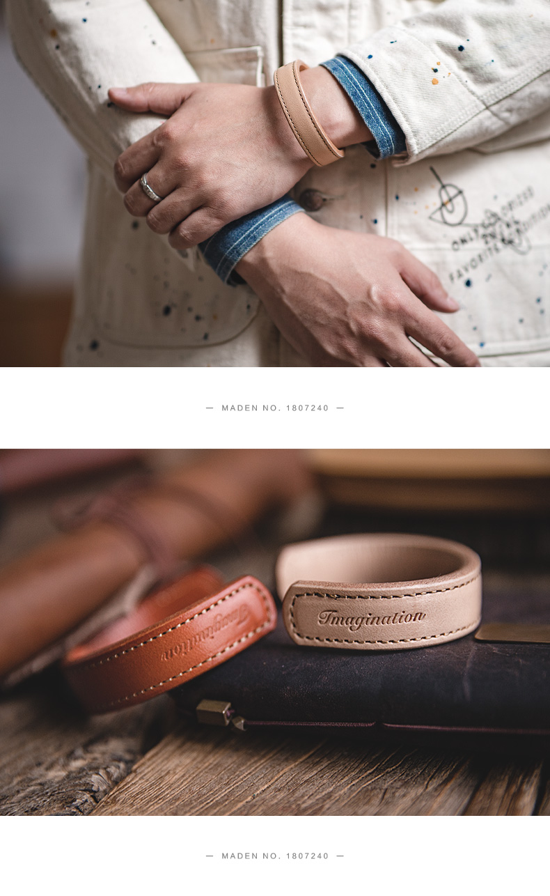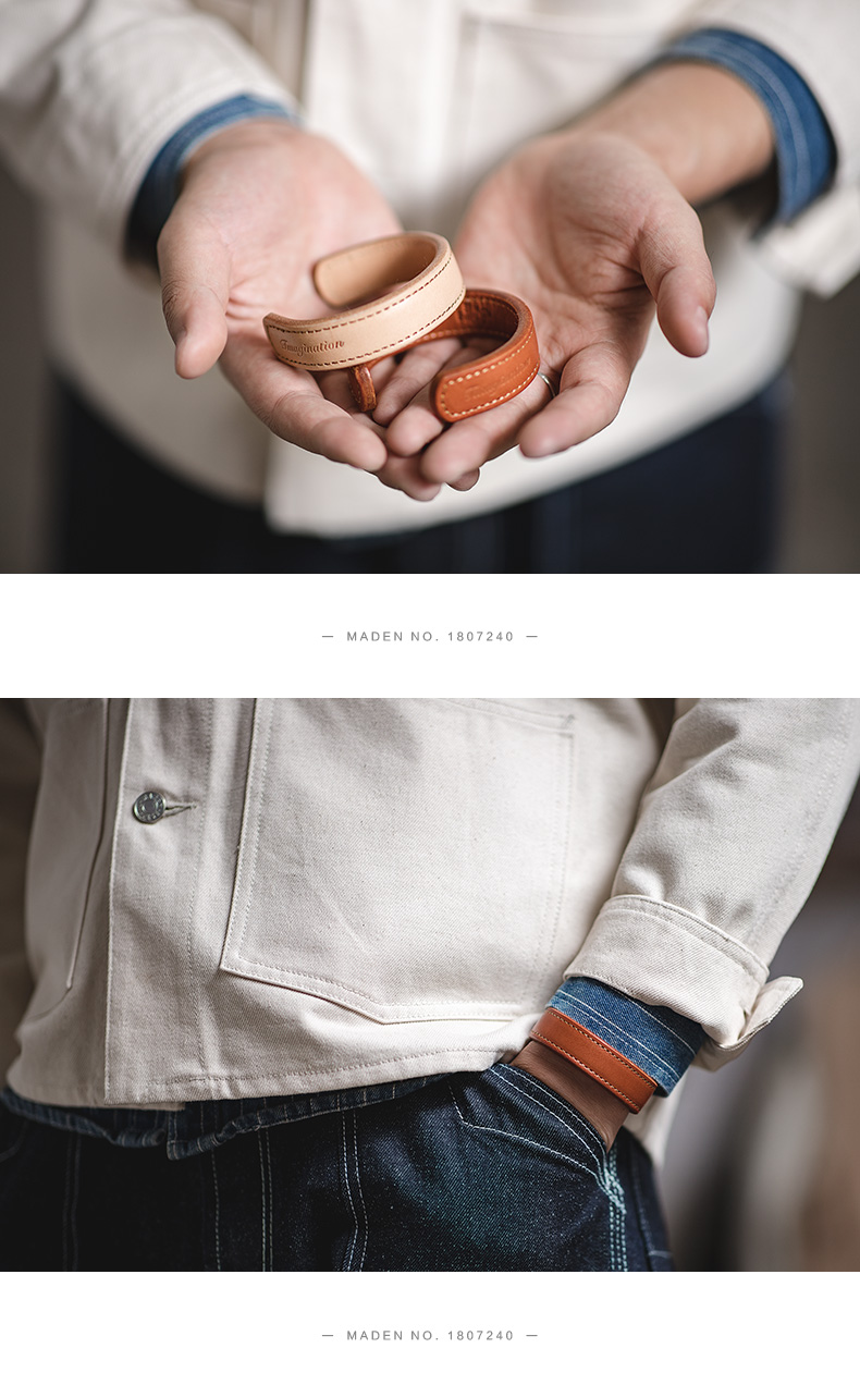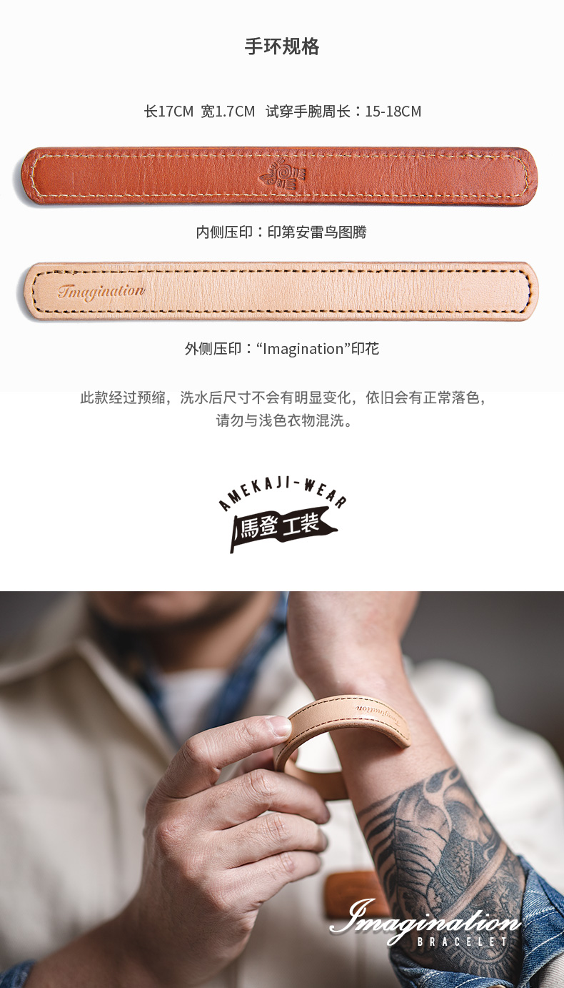 工装优选 日系复古进口植鞣真皮手镯小众开口宽手环男女礼物配饰