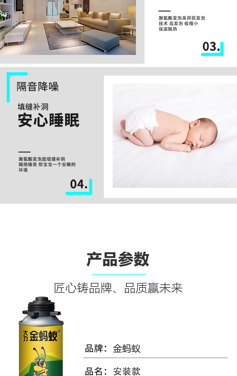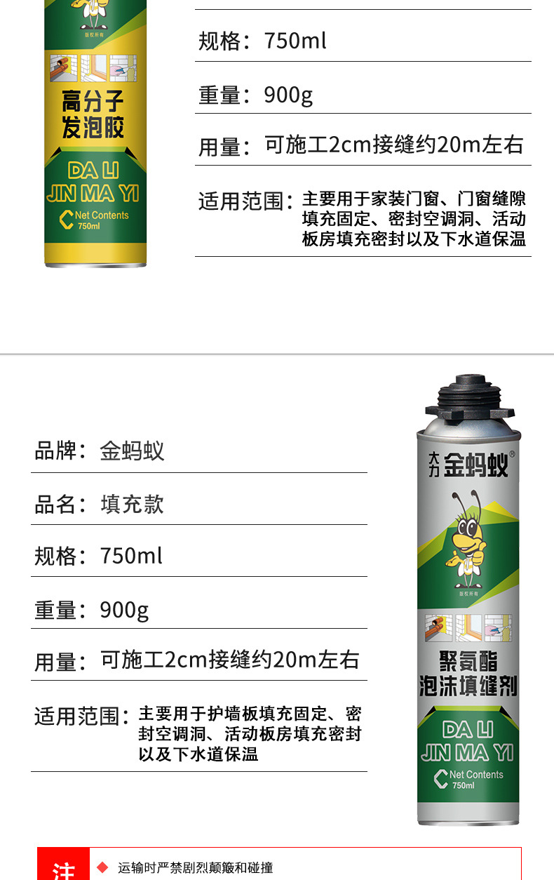 金蚂蚁聚氨酯发泡胶泡沫填缝剂家装密封发泡剂门窗工程填缝 750ml