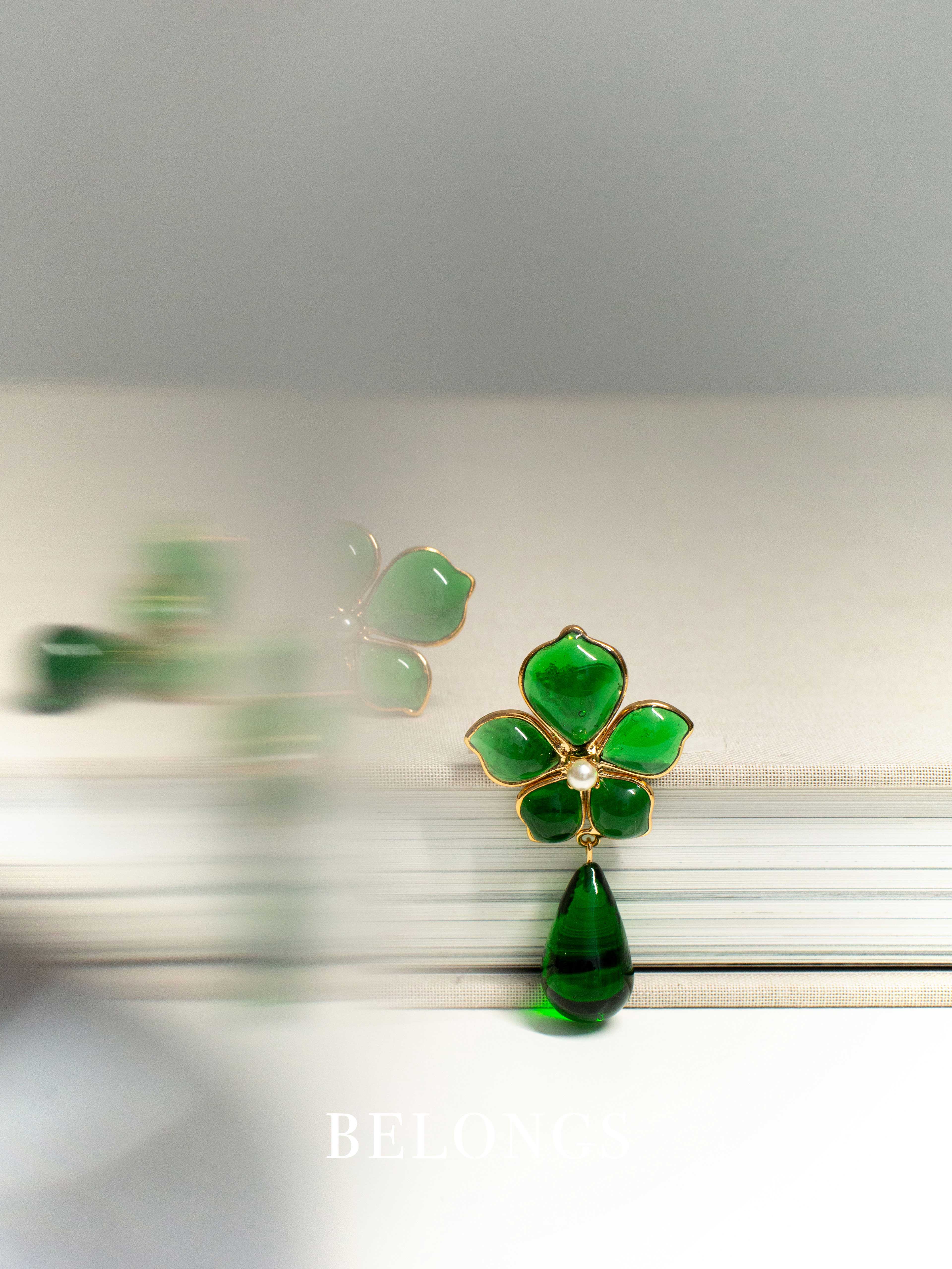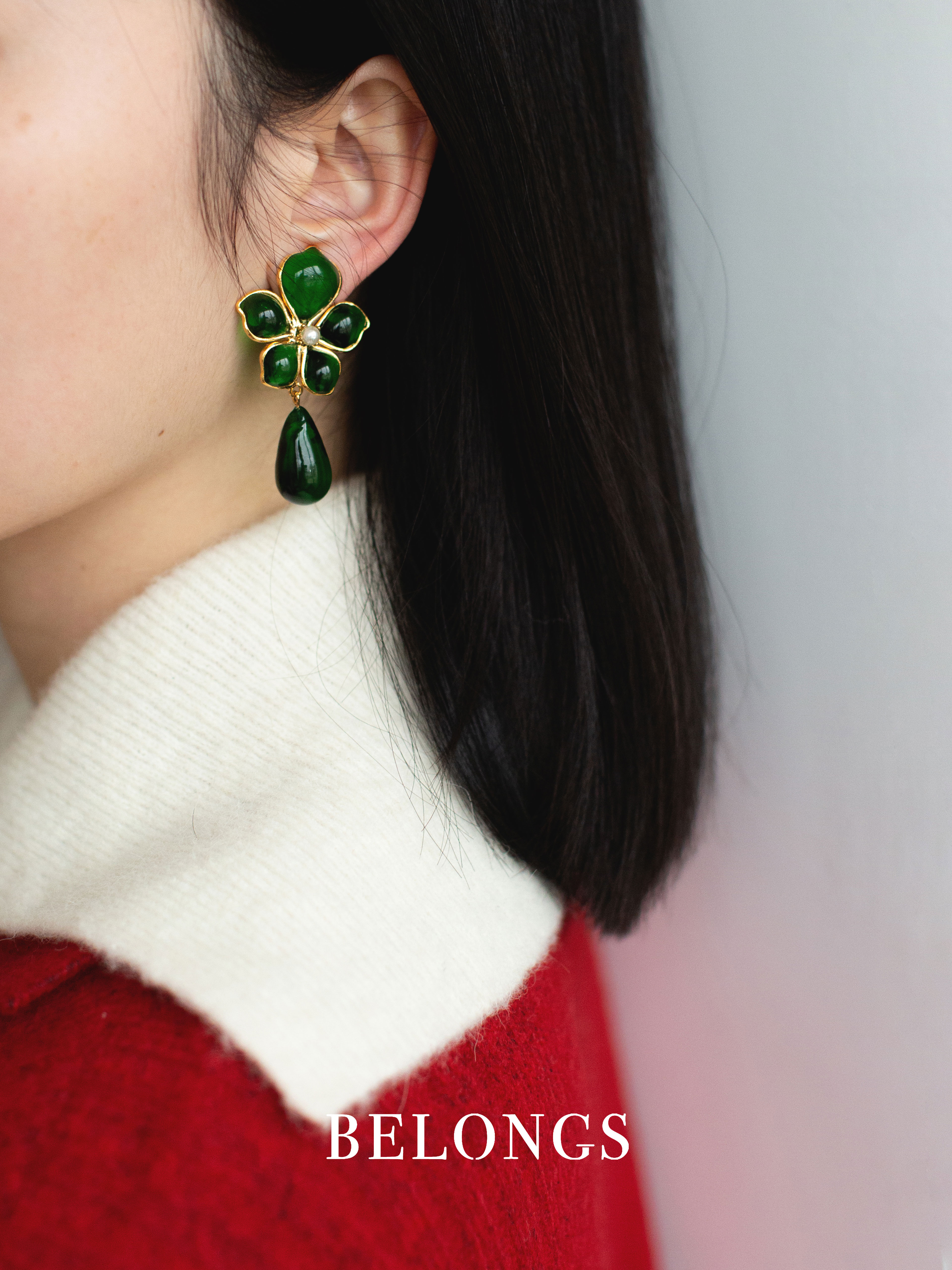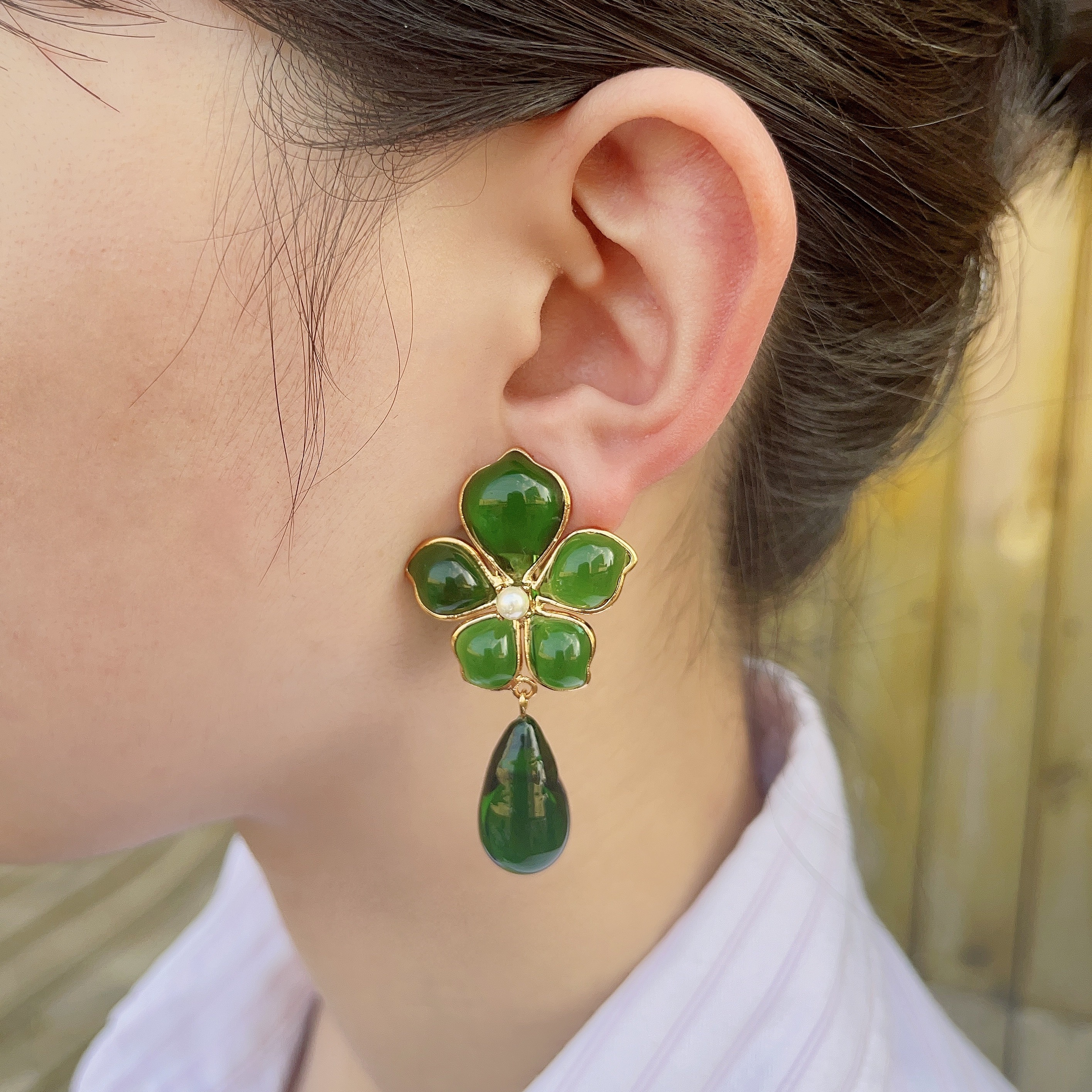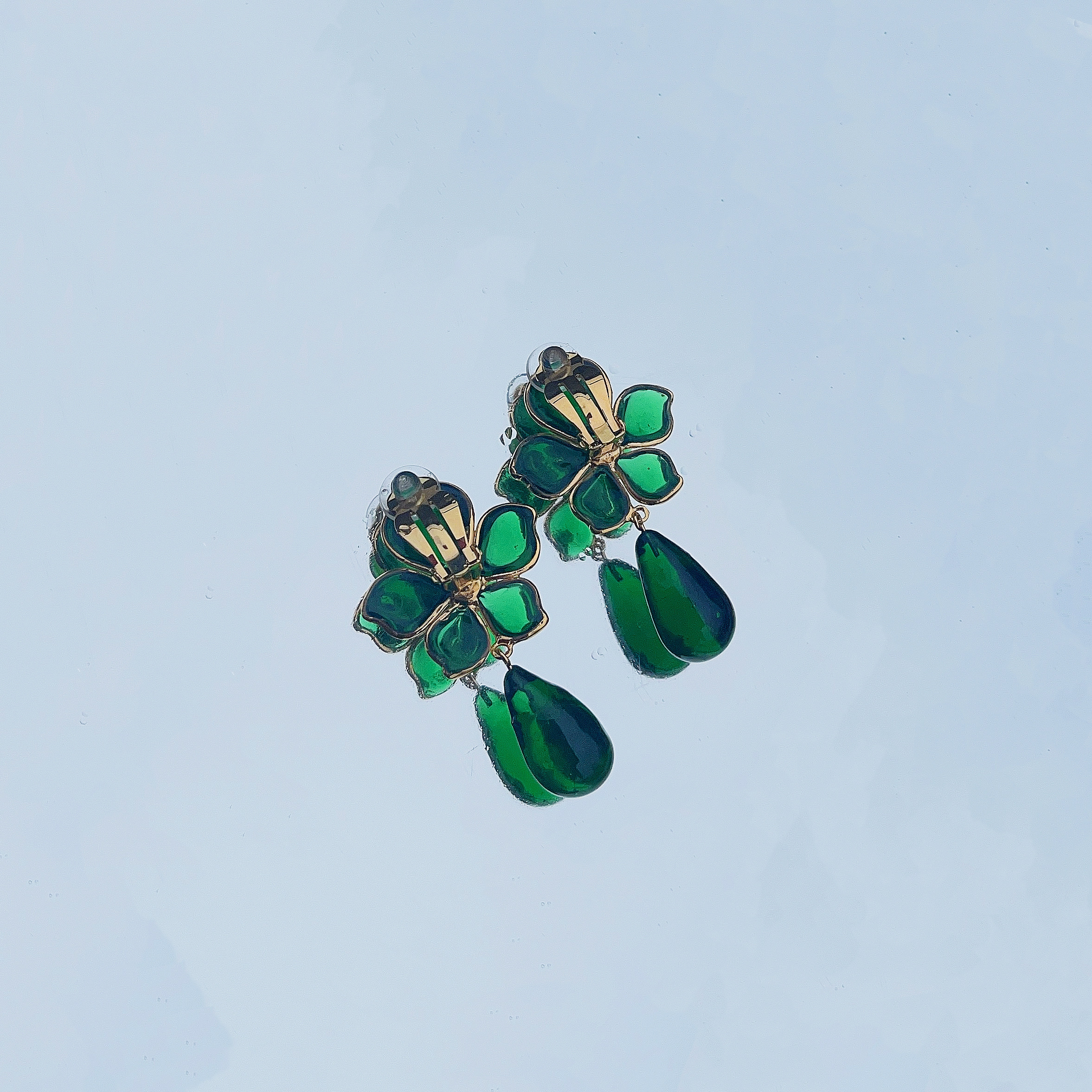 北京仓|Gripoix Paris-Tropical Flower-帝王绿 花朵 耳环[法国设计师]