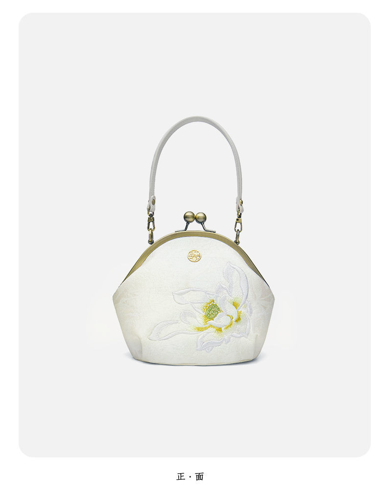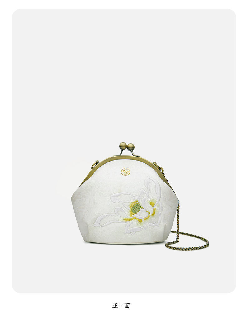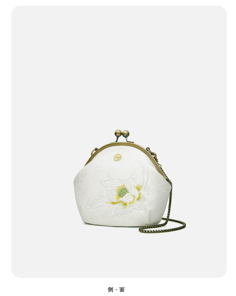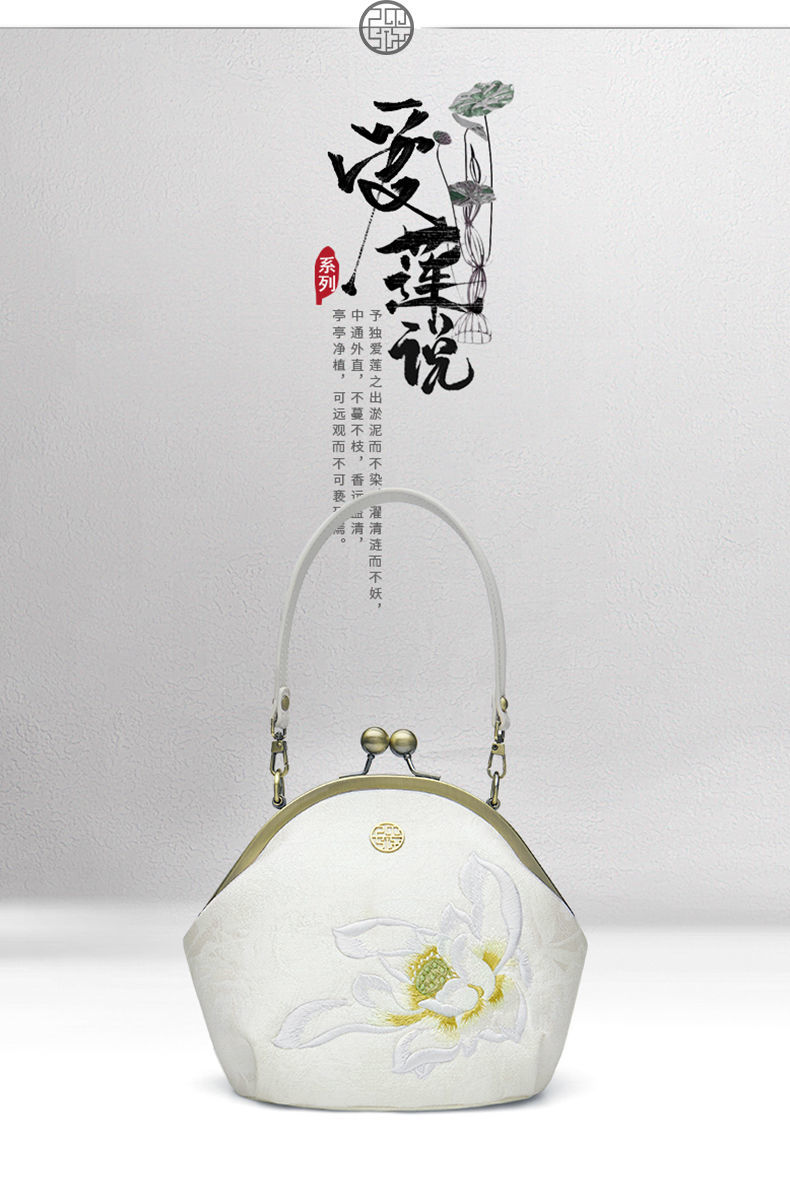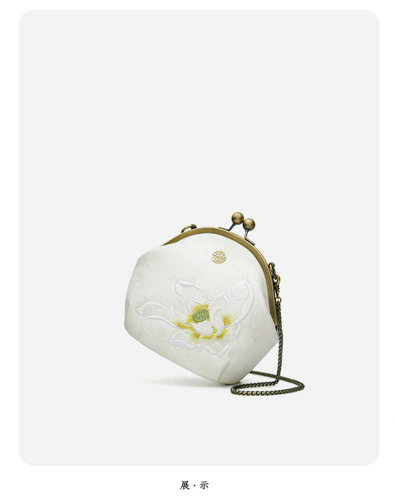 配旗袍女包白色荷花刺绣气质女士手提包晚宴包