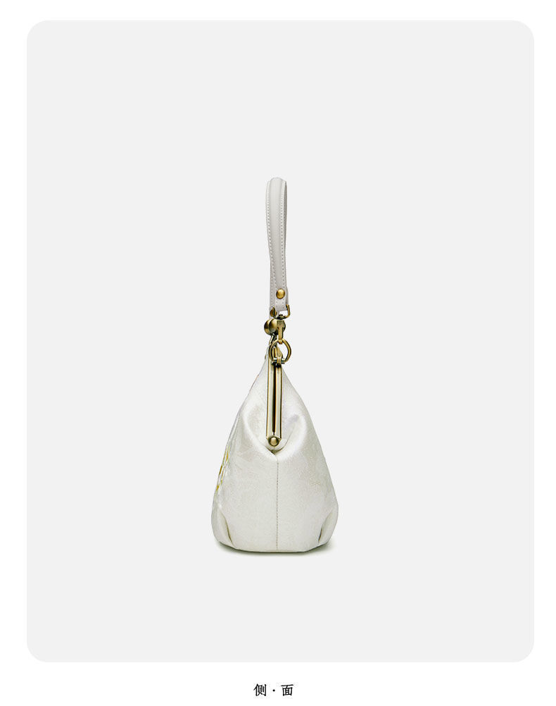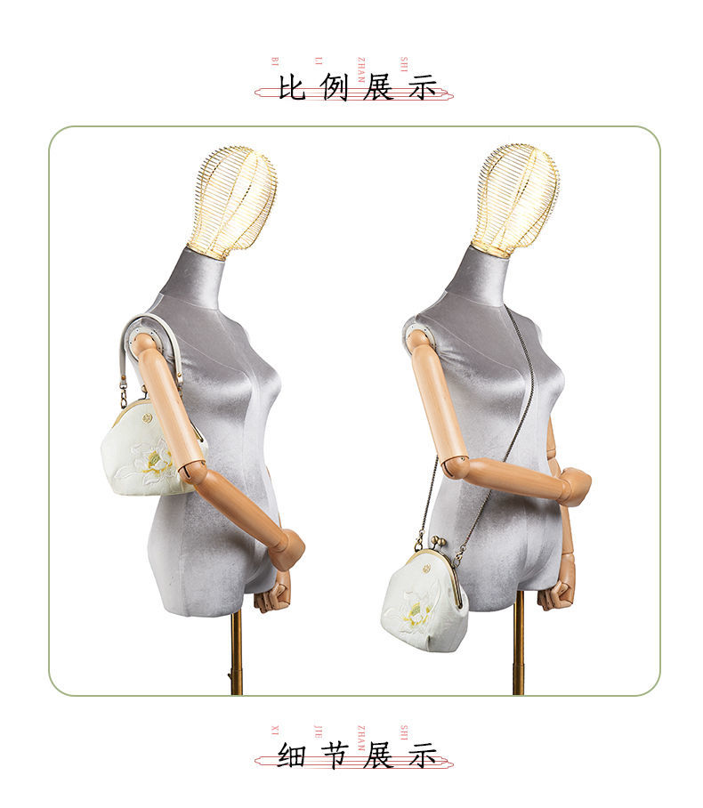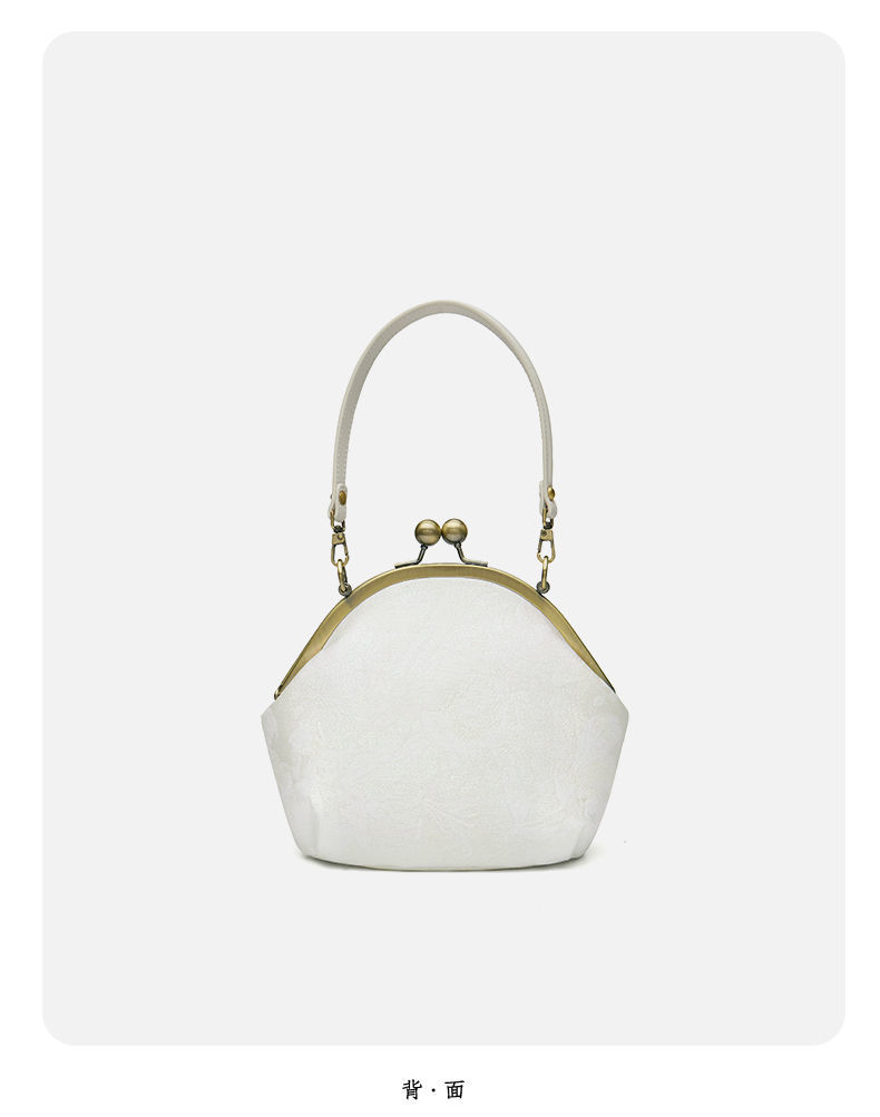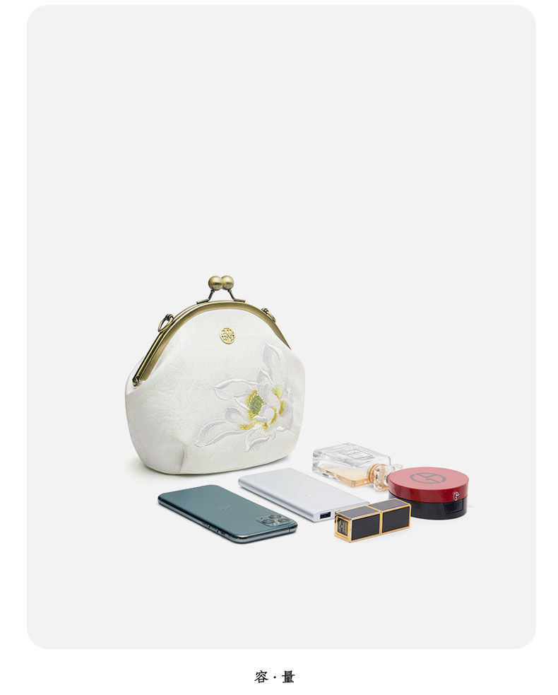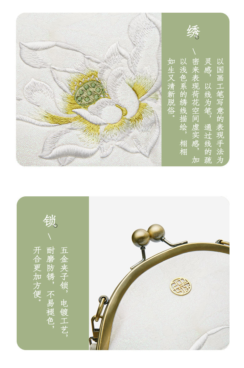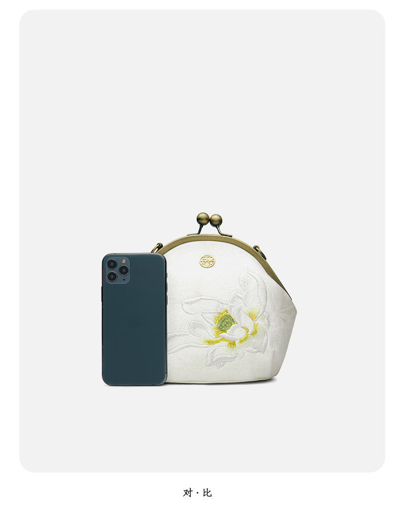 配旗袍女包白色荷花刺绣气质女士手提包晚宴包