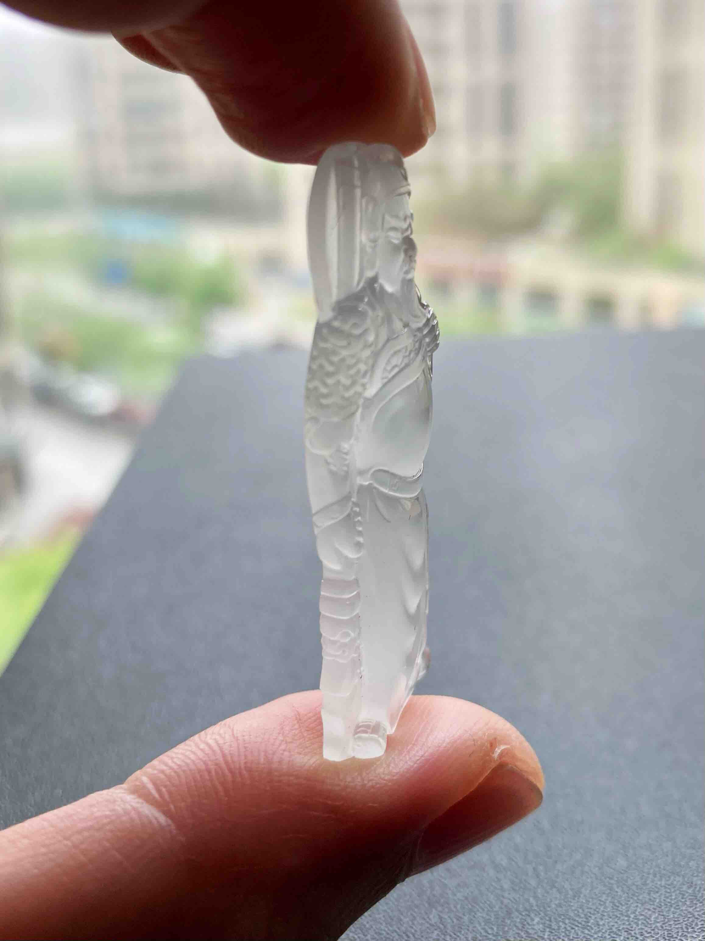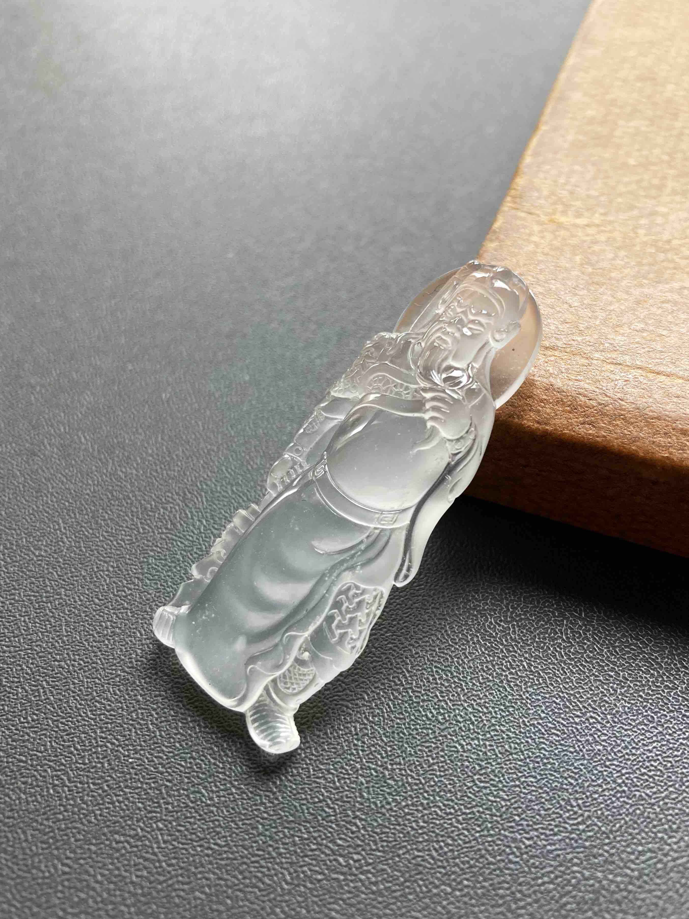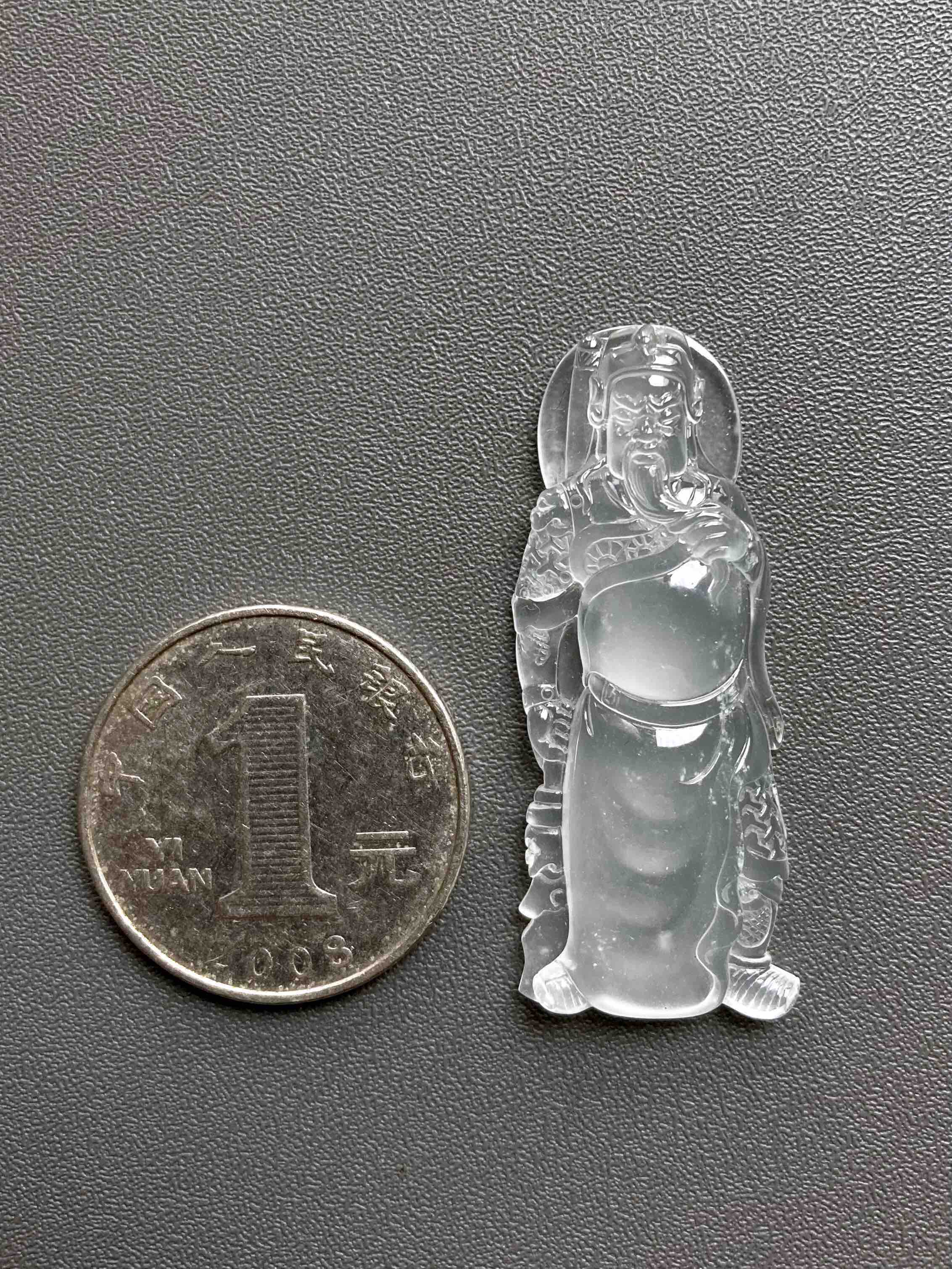 稀罕物,收藏级,少见的好东西,玻璃种翡翠关公,缅甸料,42.4×17.2×5.5mm,武财神,招财进宝,看种水有多漂亮,荧光四射,尺寸大气,名师雕刻,每个细节都令人赞叹。男士佩戴少见的佳品