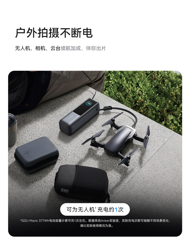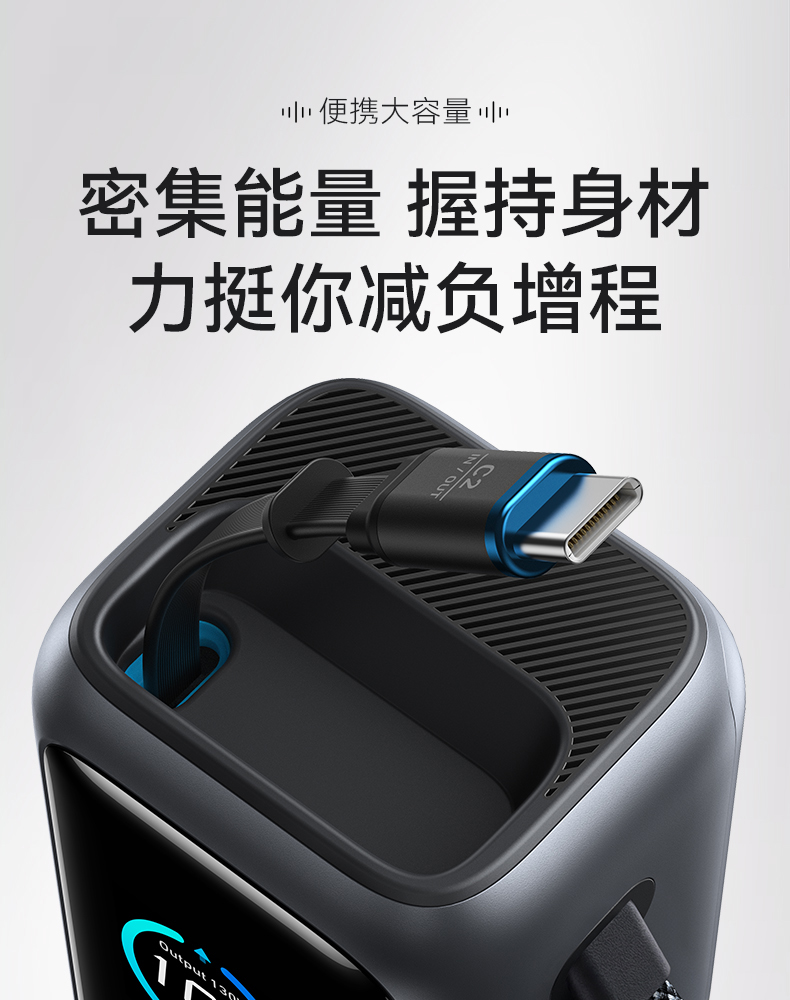 Anker安克 自带线伸缩25000mAh大容量移动电源165W大功率适配苹果17安卓笔记本可上飞机 A1695