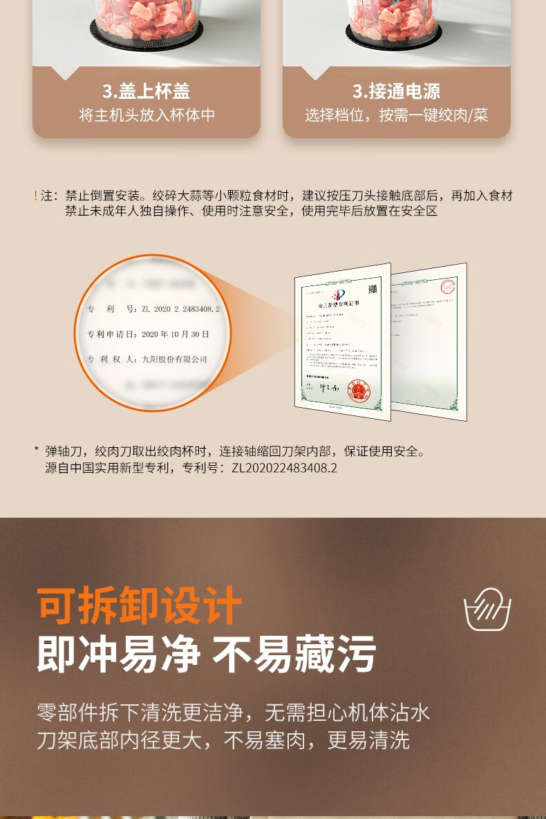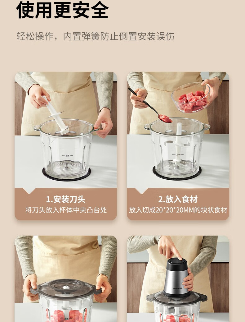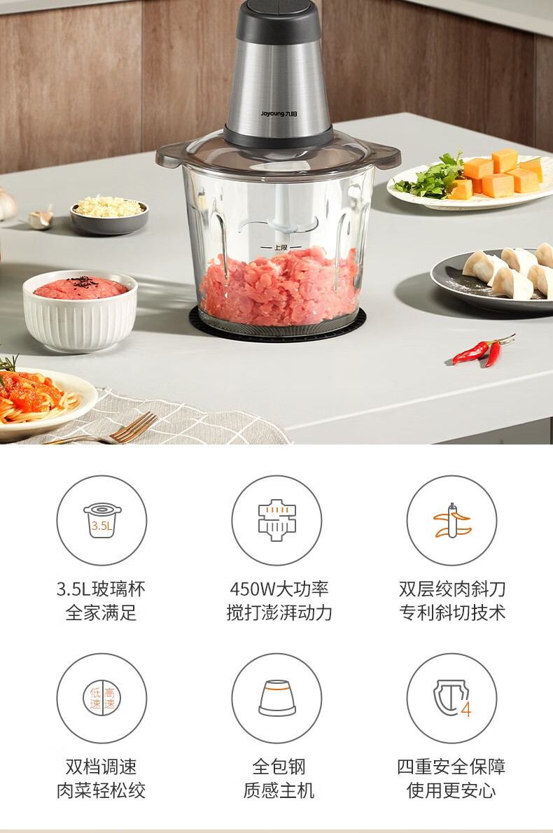 九阳不锈钢绞肉机家用绞馅碎肉机电动料理搅拌打肉饺子肉馅蒜蓉机