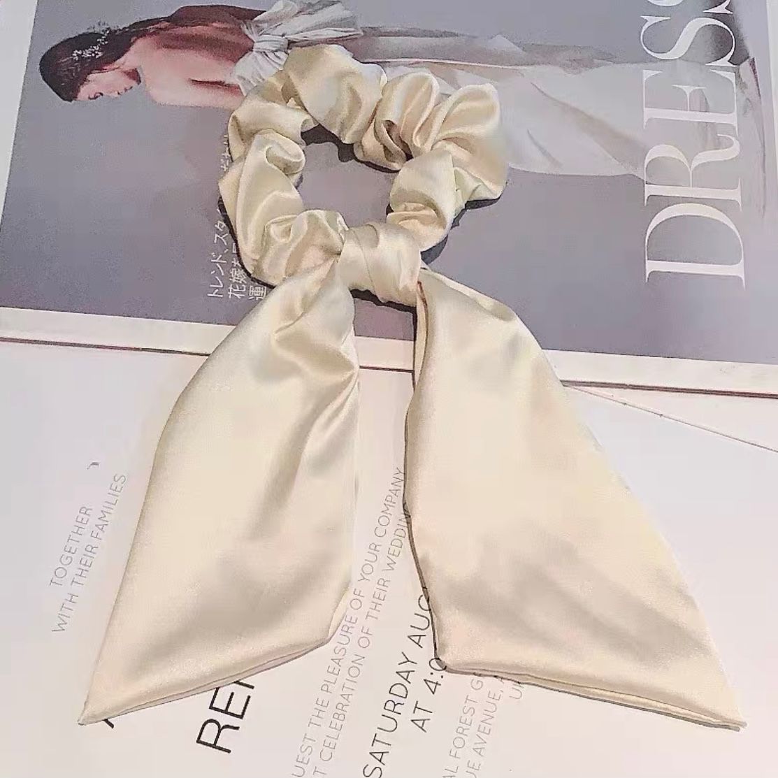 森系超仙蝴蝶结飘带头绳大肠发圈简约气质发绳网红ins 绑发头饰,