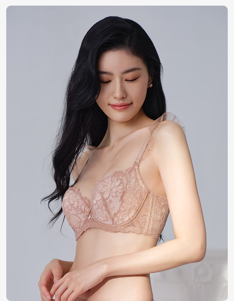 【3F】安莉芳刺绣花卉蕾丝文胸女大胸显小薄款夹碗内衣EB00977