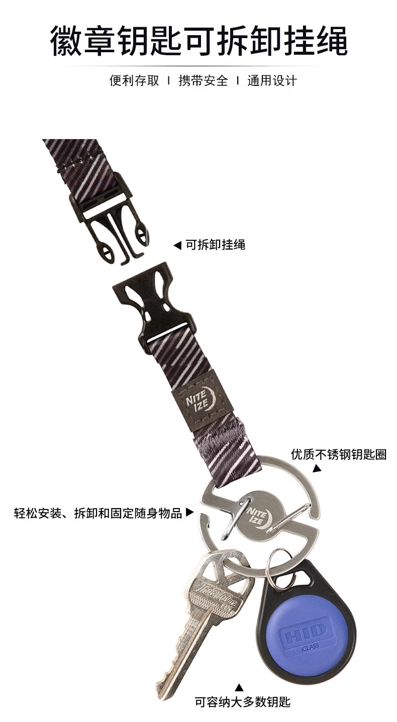 niteize奈爱徽章钥匙扣不锈钢多功能快拆创意快挂调节安全防丢绳
