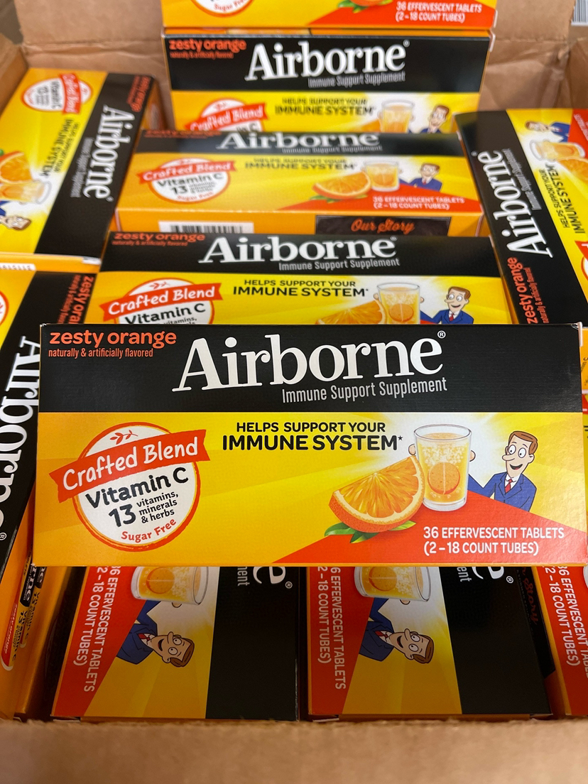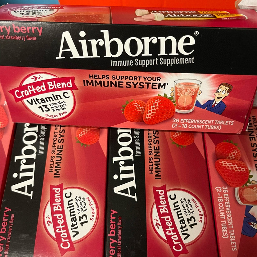 橙子味,折扣特价199元📣备VC了📣橙子🍊这款泡腾片也是美国药剂师推荐用来提高免疫力的,甜甜的味道,还添加了锌和VE 😷不舒服,🇺🇸当地人都喜欢喝这个哦[愉快]医生都是推荐这个哦[愉快],美国Airborne富含13种微量元素维C泡腾片,有草莓味🍓、橘子味🍊,每次出入细菌多的场合或者感冒😷初期用水泡一片喝下,就会恢复哦,提高抵抗能力,味道很好,居家必备、办公室必备 一盒36片,让小朋友喝vc吧,换掉碳酸饮料。我也是一感冒就喝这个,所以几乎没有重感冒!因为一喝就好咯