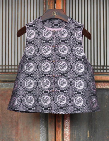 盛唐牡丹盛奢系列 | 舞凤纹胡光俊蜀锦真丝马甲-黑紫