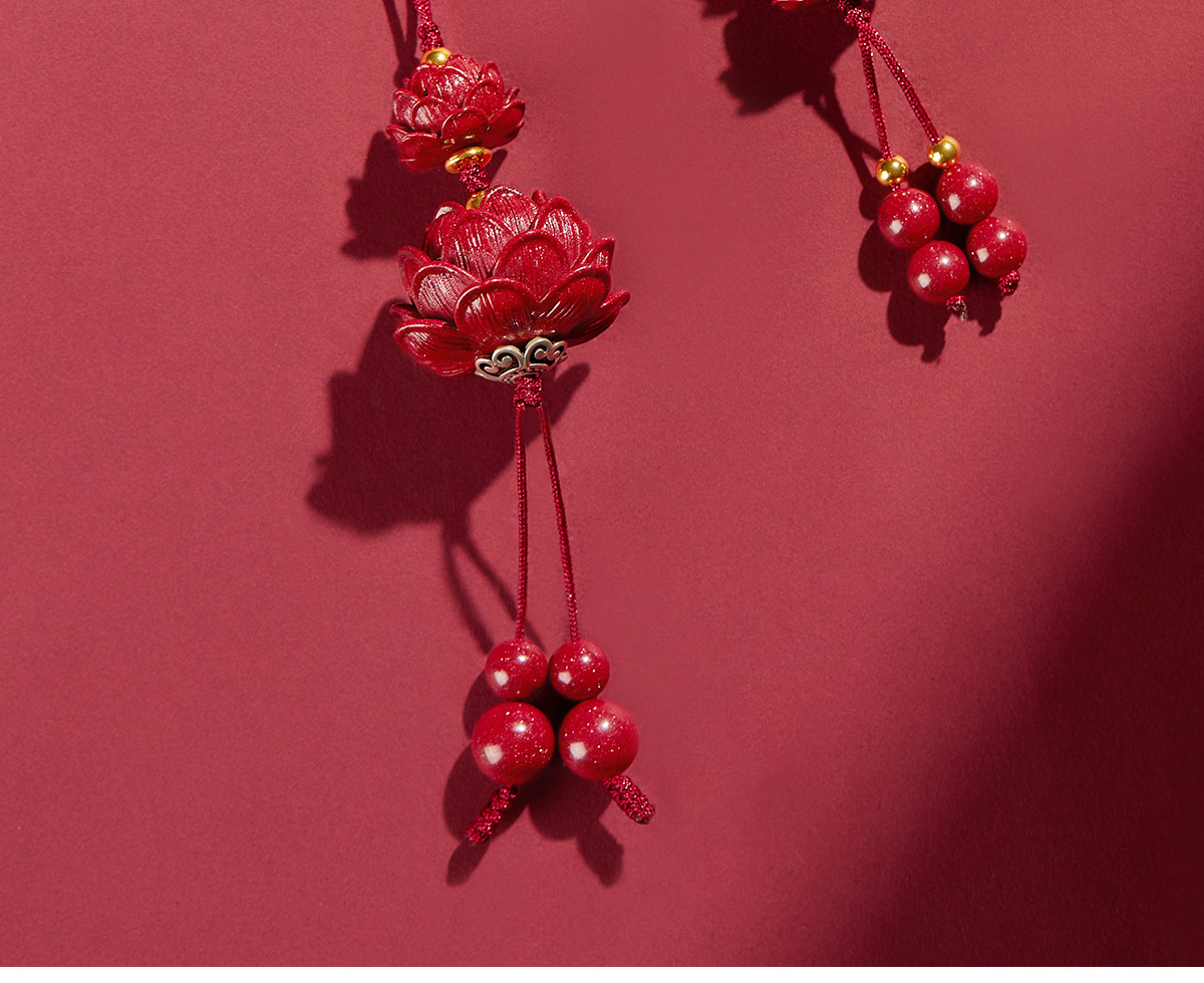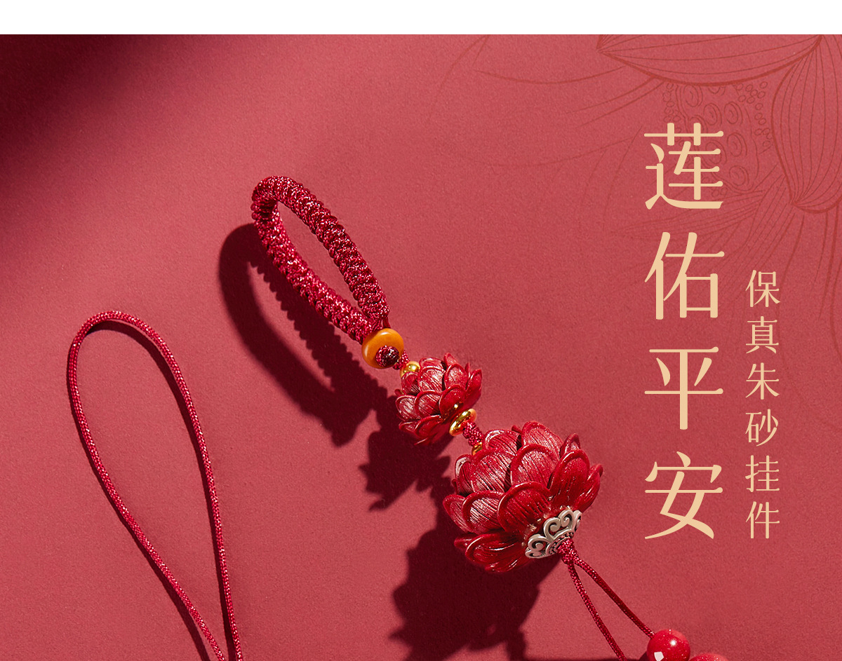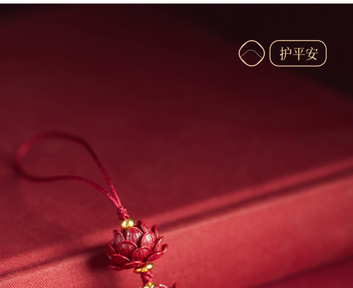 【好运来❗️朱砂手机挂饰】守护每一天,手机链+钥匙扣+吊坠三合一,颗颗莲花闪耀朱砂红,手机挂饰件绳平安莲花手机链汽车钥匙扣吊坠男女情侣礼物配饰QQ