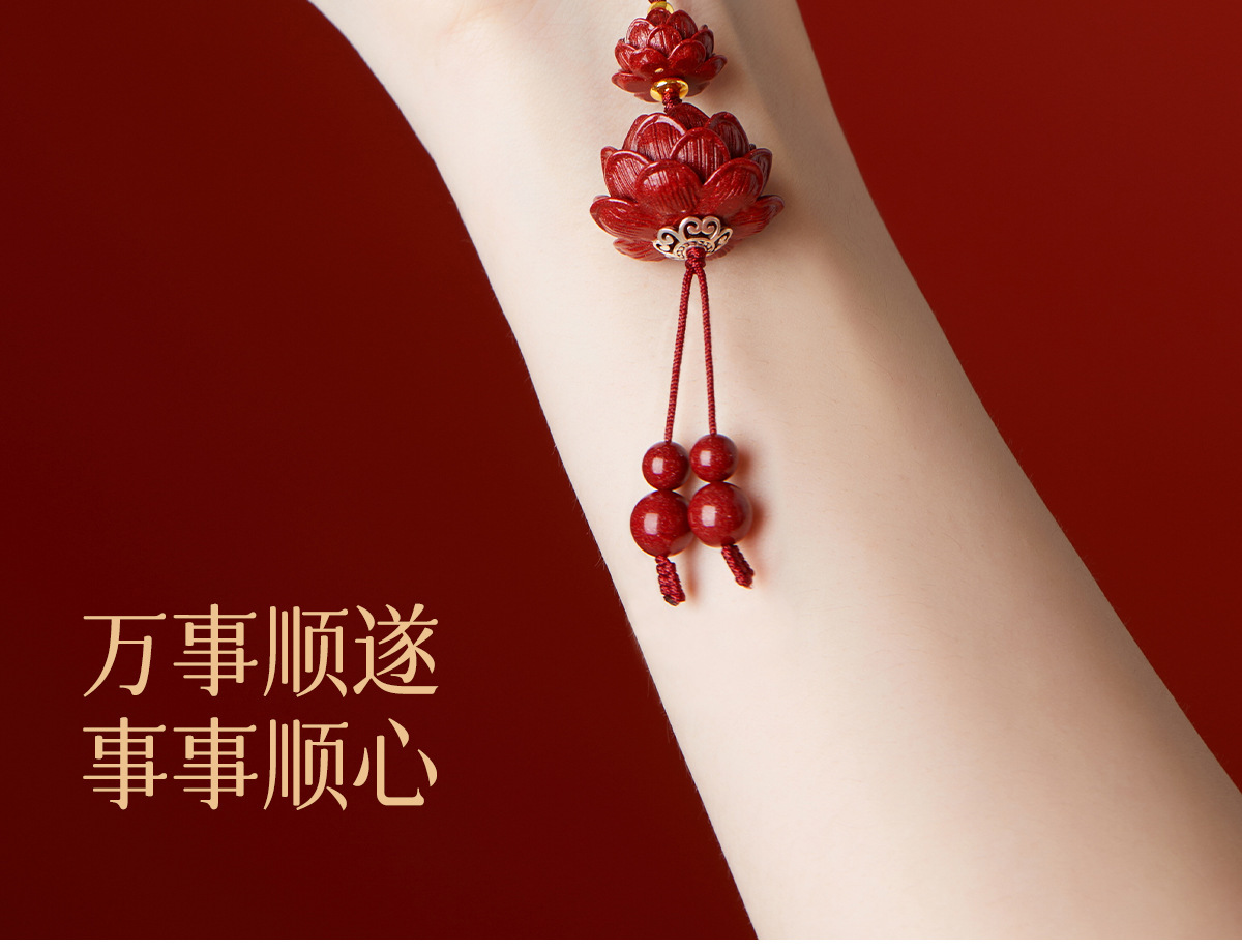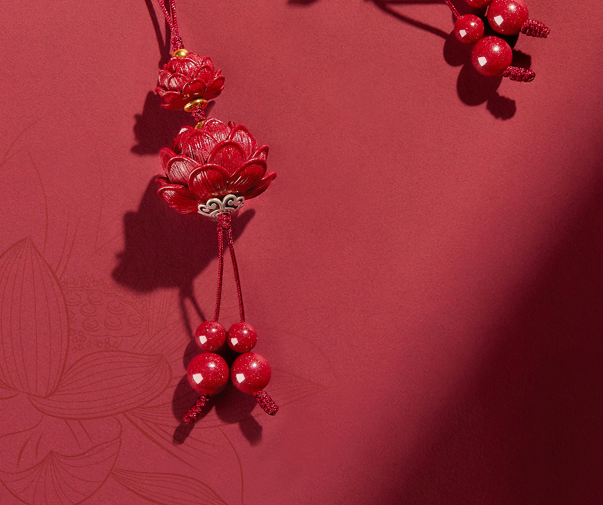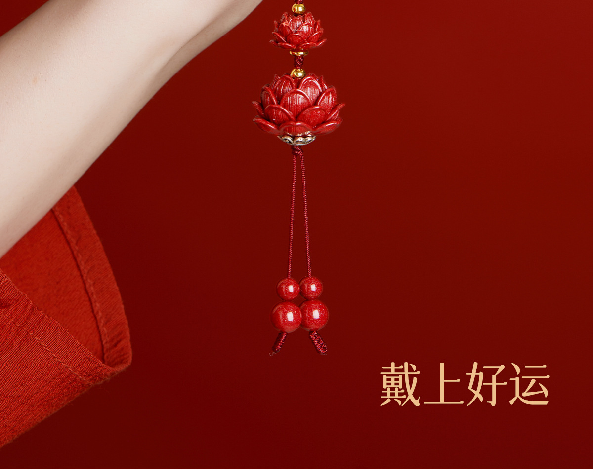 【好运来❗️朱砂手机挂饰】守护每一天,手机链+钥匙扣+吊坠三合一,颗颗莲花闪耀朱砂红,手机挂饰件绳平安莲花手机链汽车钥匙扣吊坠男女情侣礼物配饰QQ