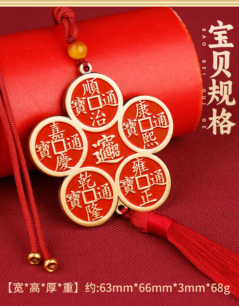 【桃木葫芦五帝钱挂饰】