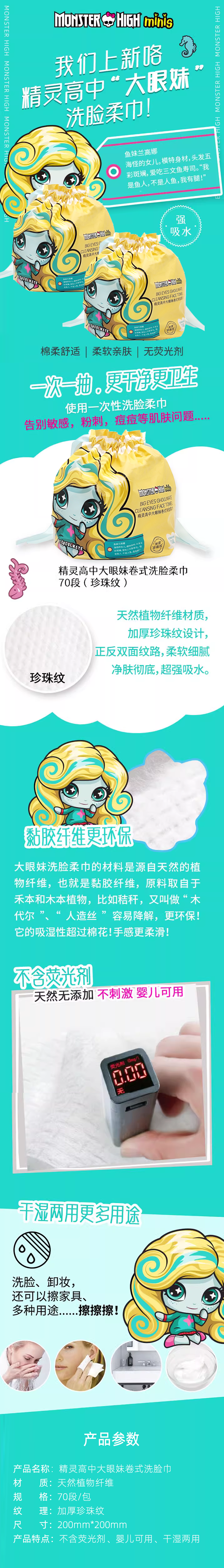 精灵高中大眼妹卷式洗脸巾(加厚珍珠纹)(70段)【30173248】