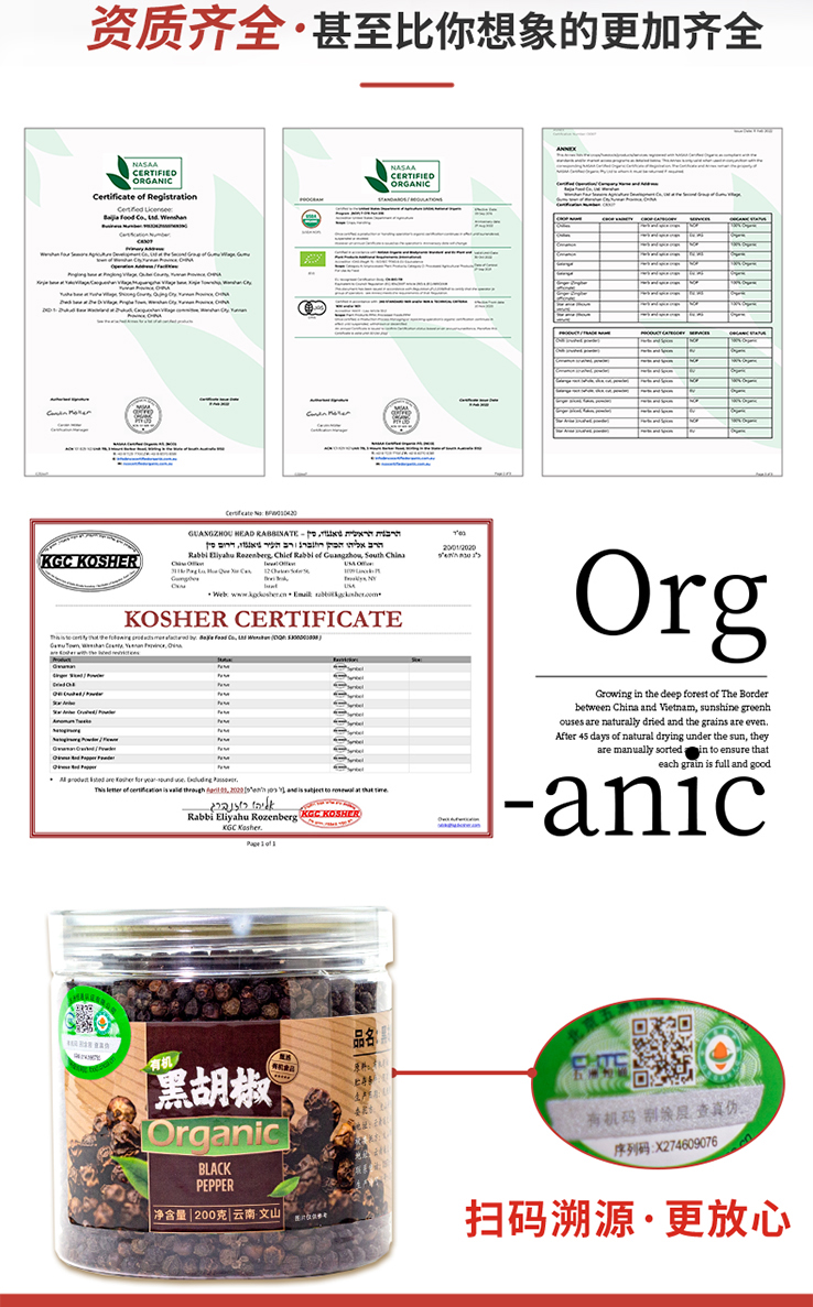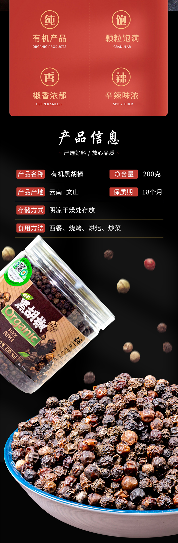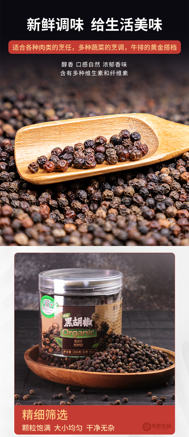 【云惜严选】有机黑胡椒粒200g 厨房卤料调味香辛