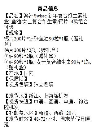 澳洲Swisse 新年复合维生素礼盒 鱼油/女士复合维生素/钙片 4款组合可选