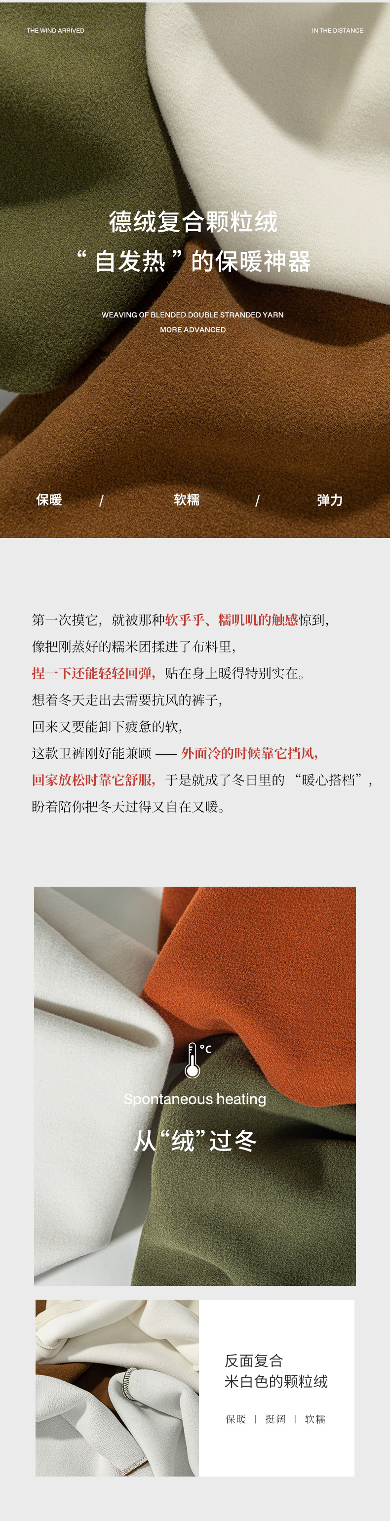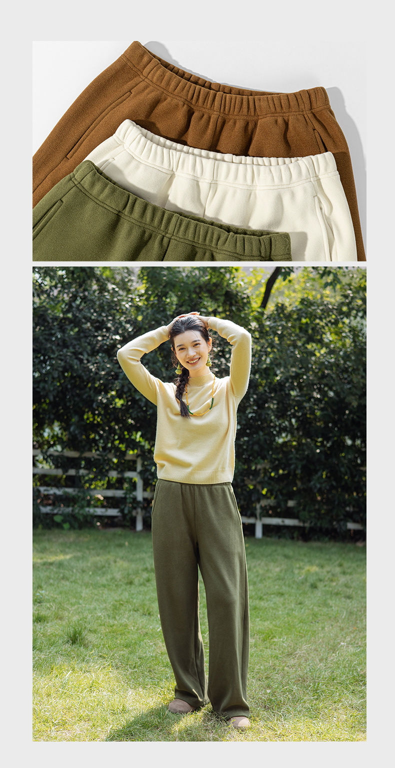 绽放108朵/糯米卫裤秋冬德绒复合颗粒绒加厚松紧腰舒适弯刀裤子