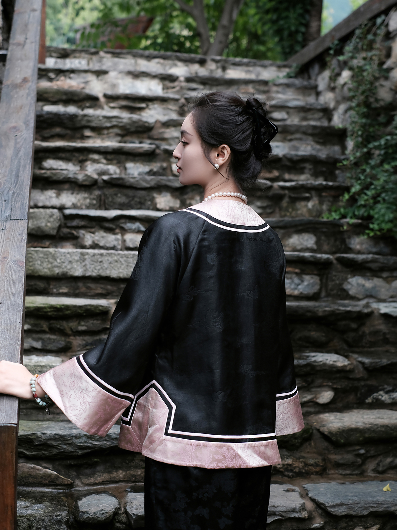 盛唐牡丹 | 双面穿花蕾缎立领马甲(实物红色面领口处无玉扣;绿色面实物有玉扣如照片所示)