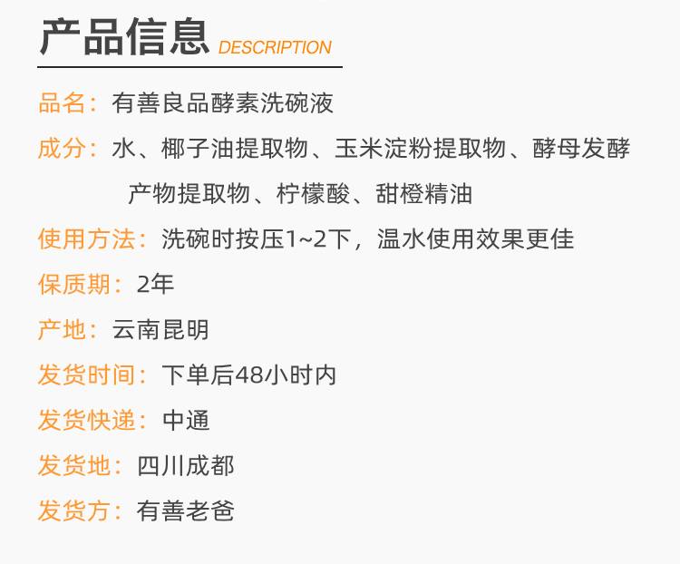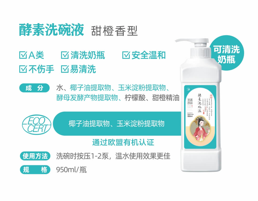 酵素洗碗液 环保洗洁精果蔬清洁剂 甜橙香型 500ml/950ml